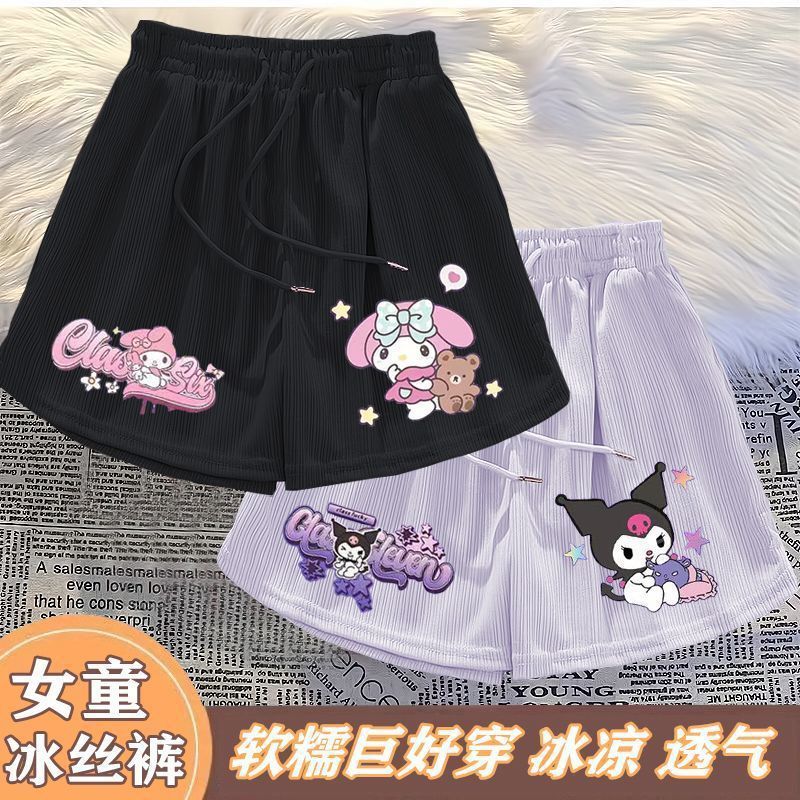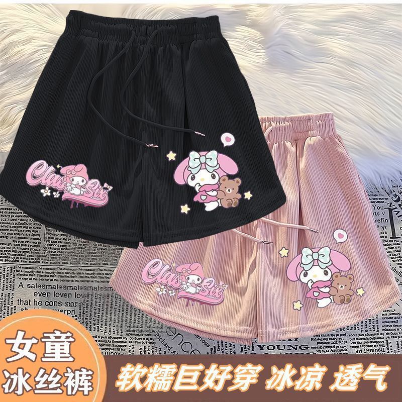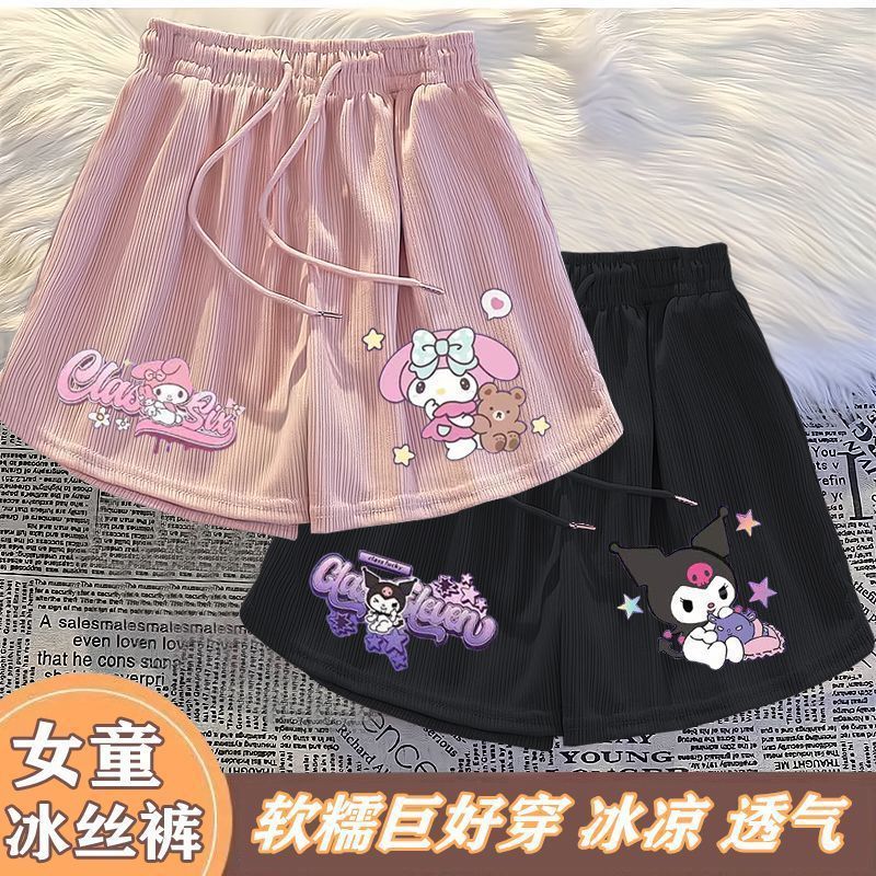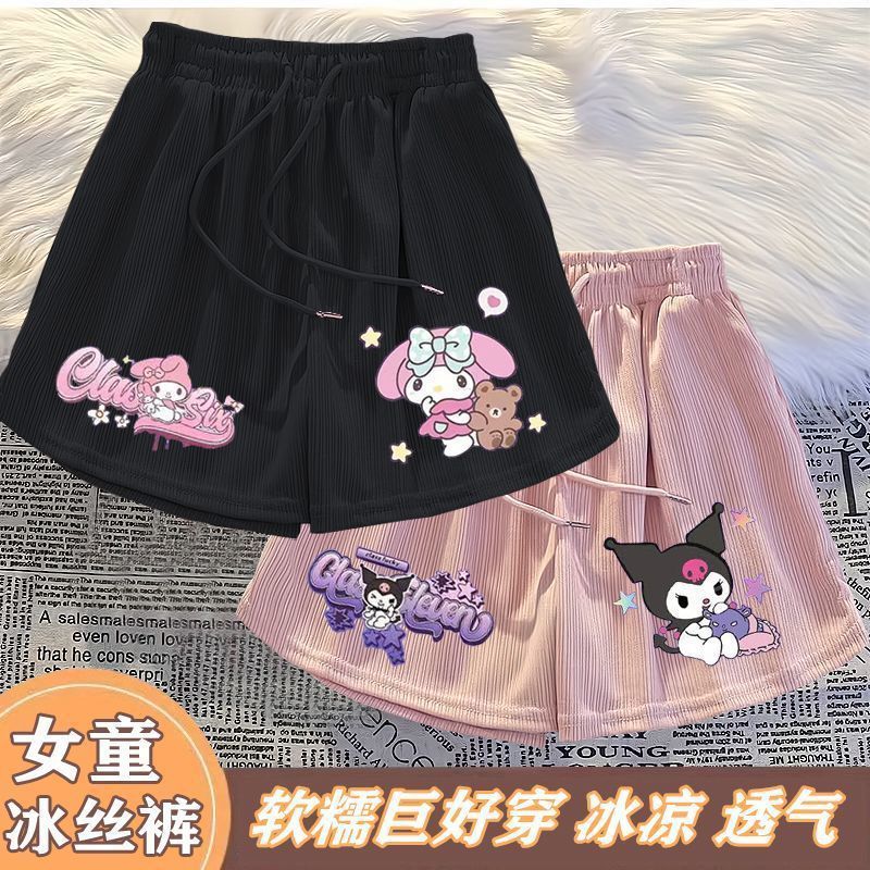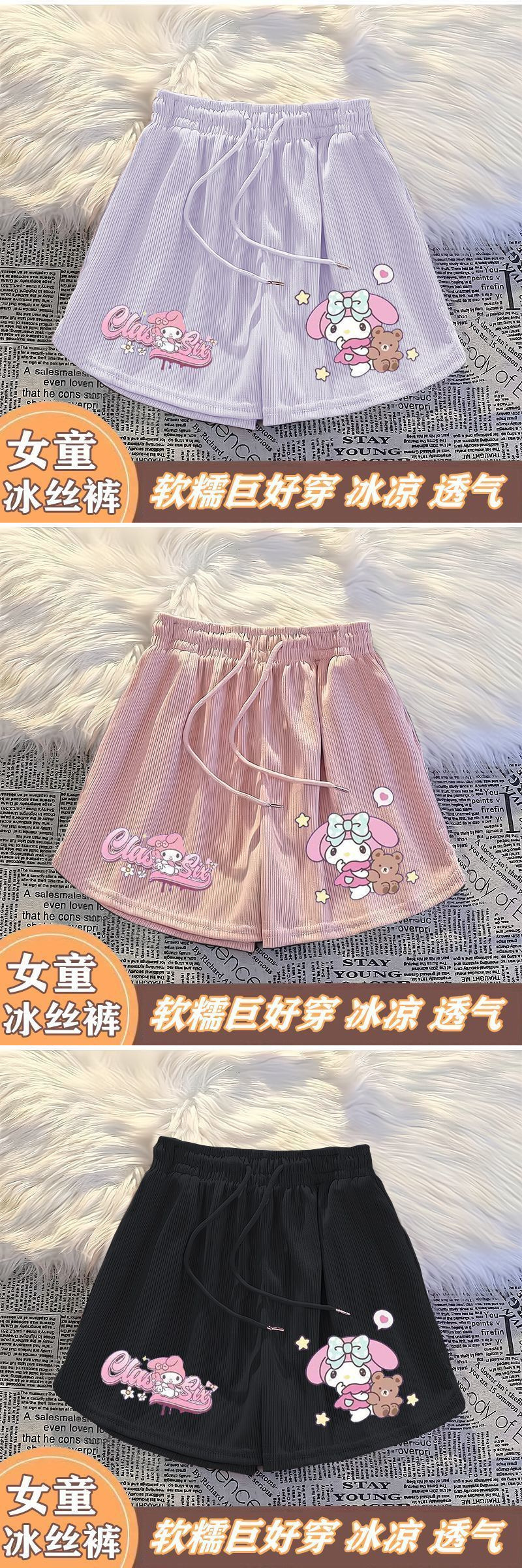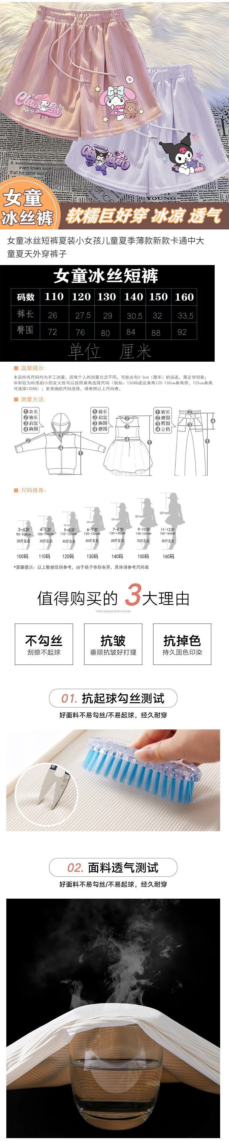 Шорты из ледяного шелка для девочек, летний наряд для маленьких девочек, новые детские тонкие летние штаны с героями мультфильмов для малышей и маленьких детей.