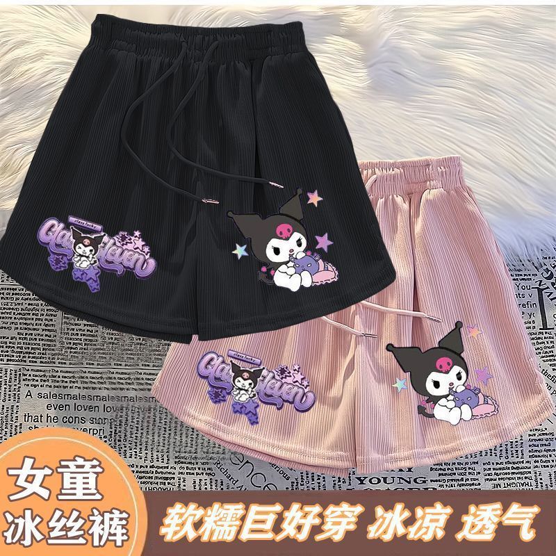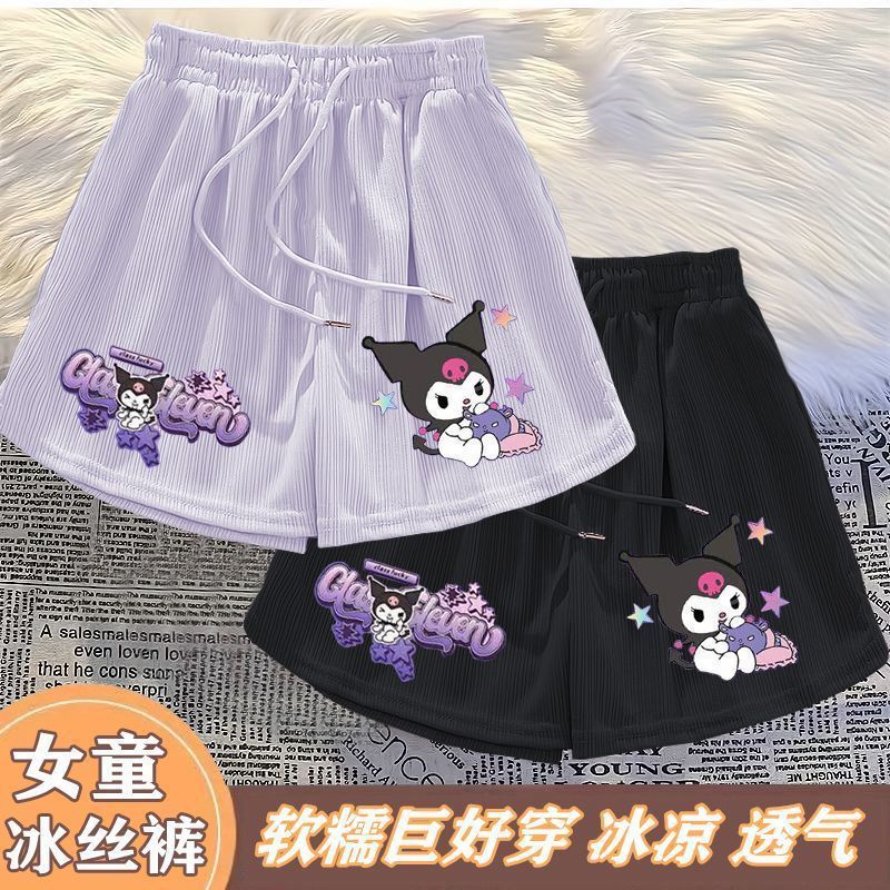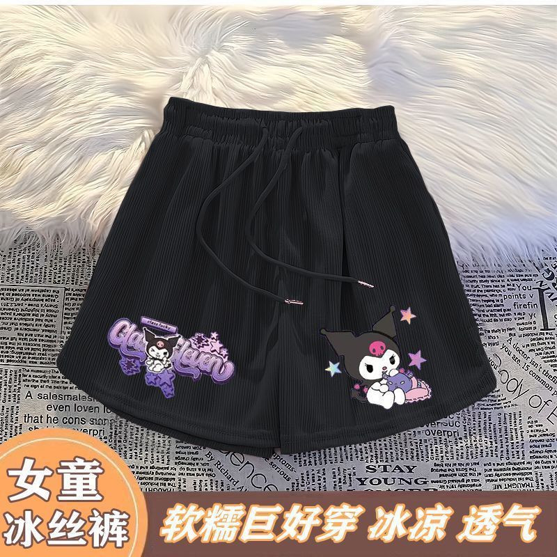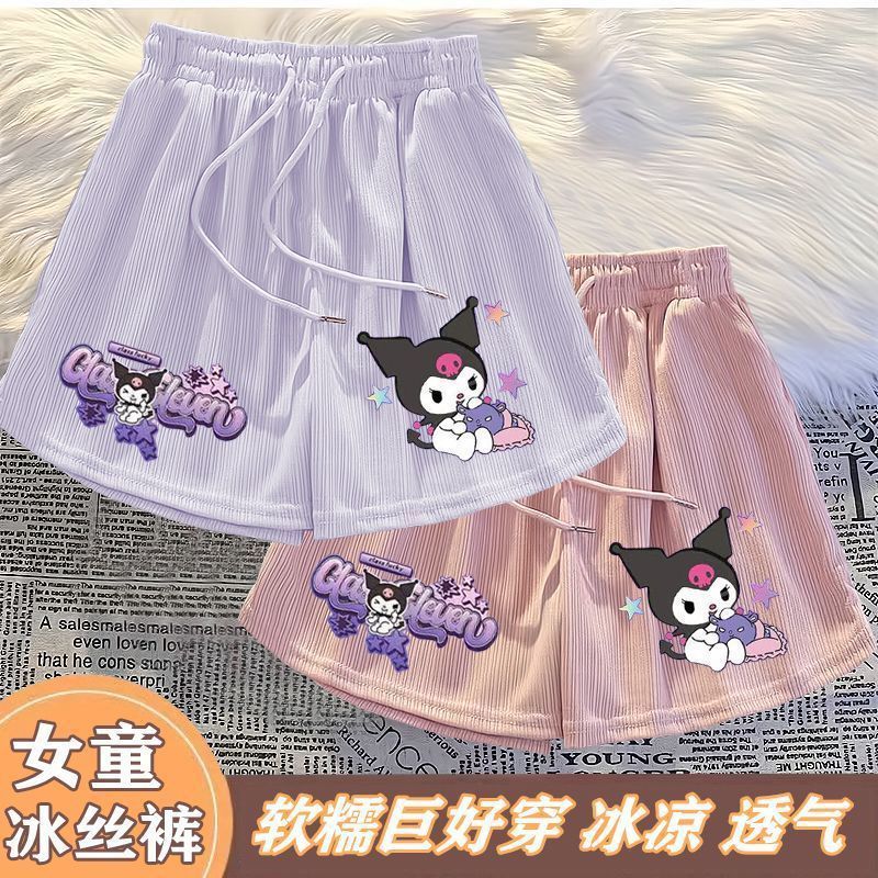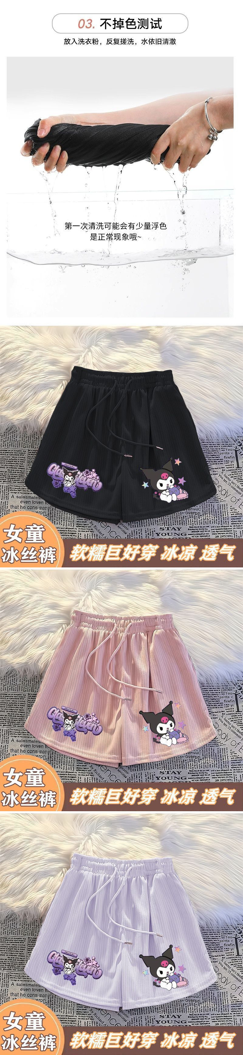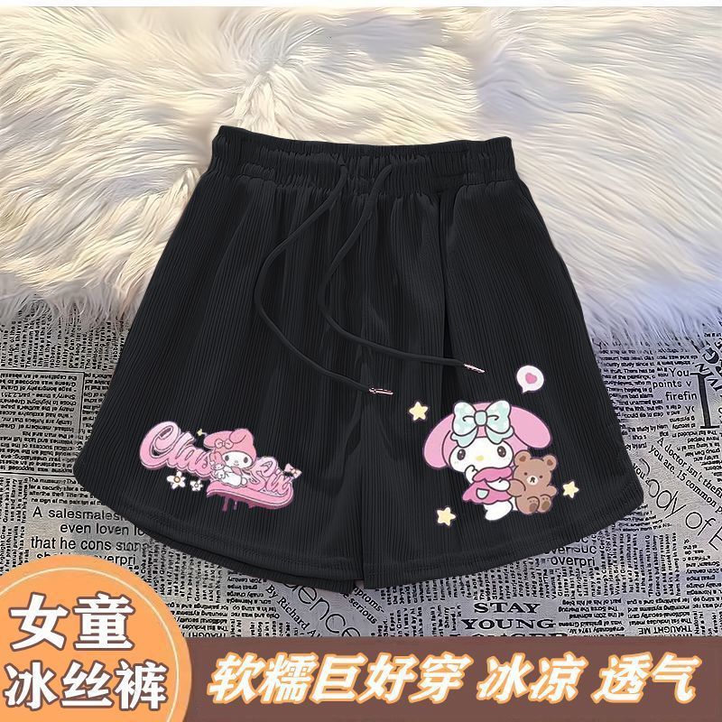 Шорты из ледяного шелка для девочек, летний наряд для маленьких девочек, новые детские тонкие летние штаны с героями мультфильмов для малышей и маленьких детей.