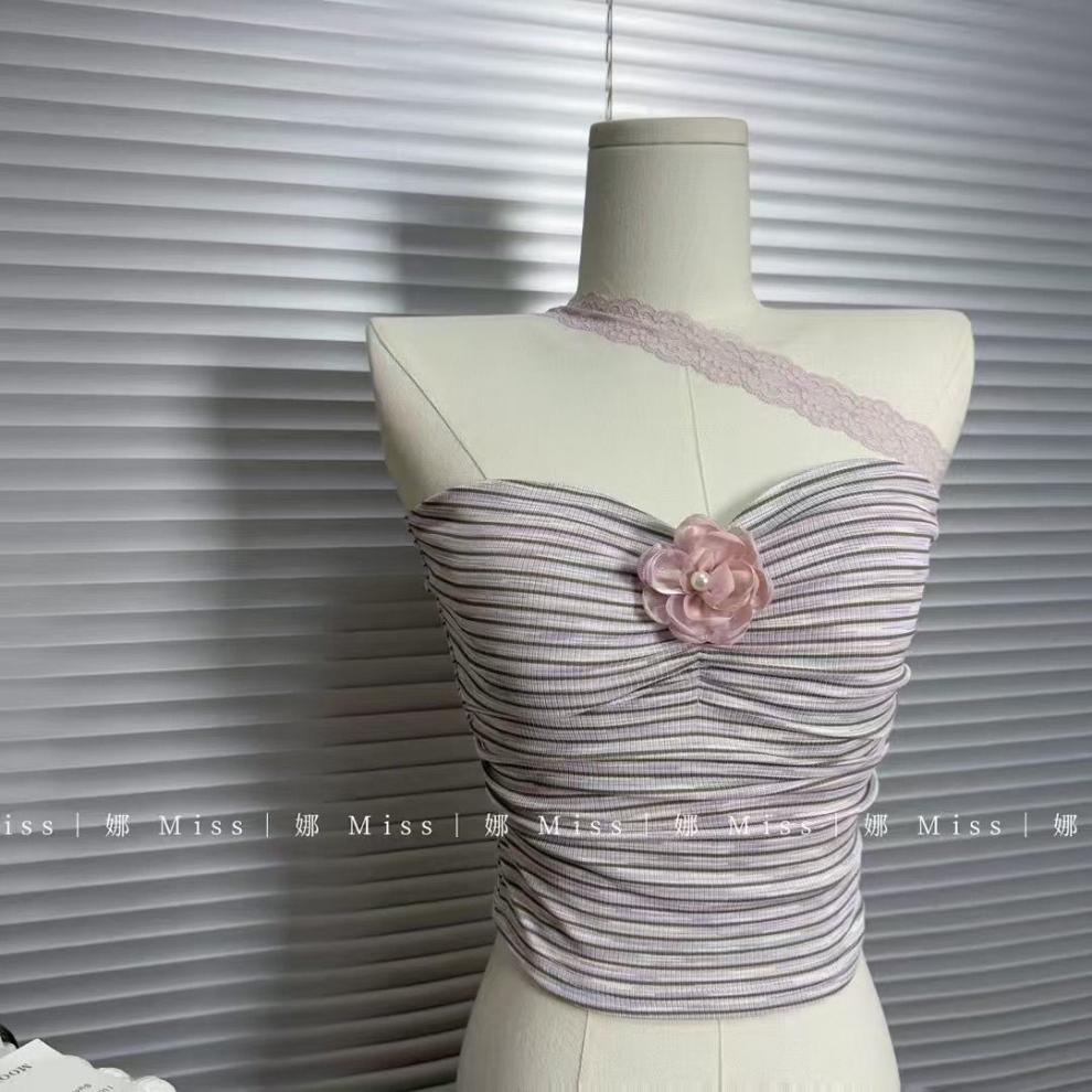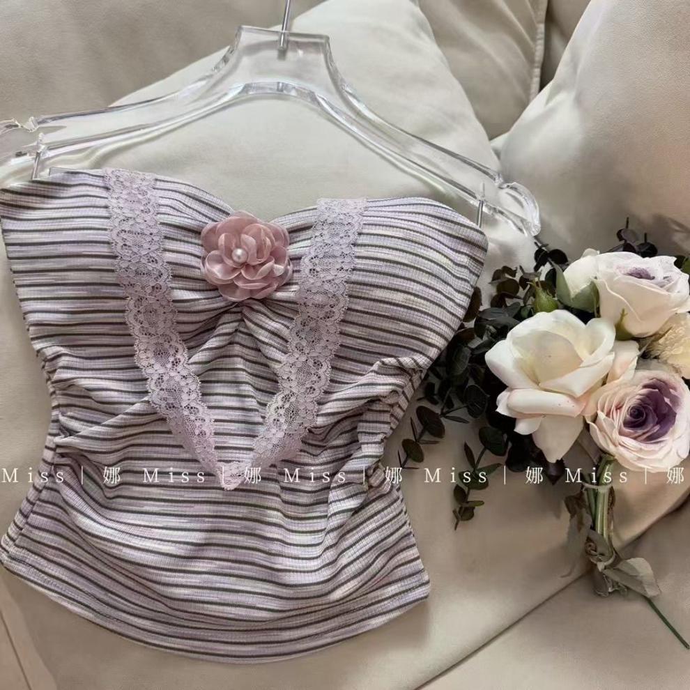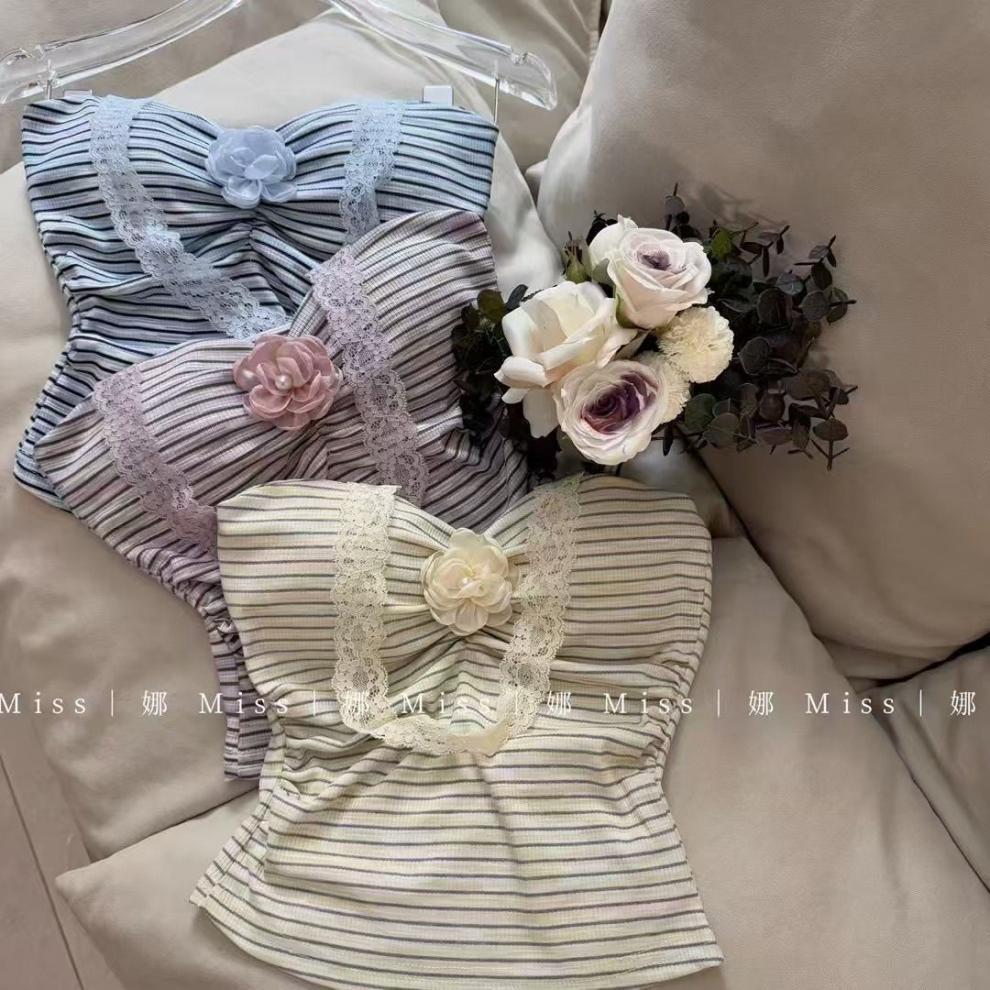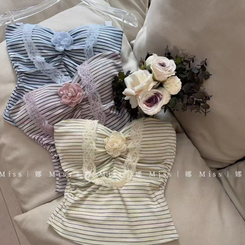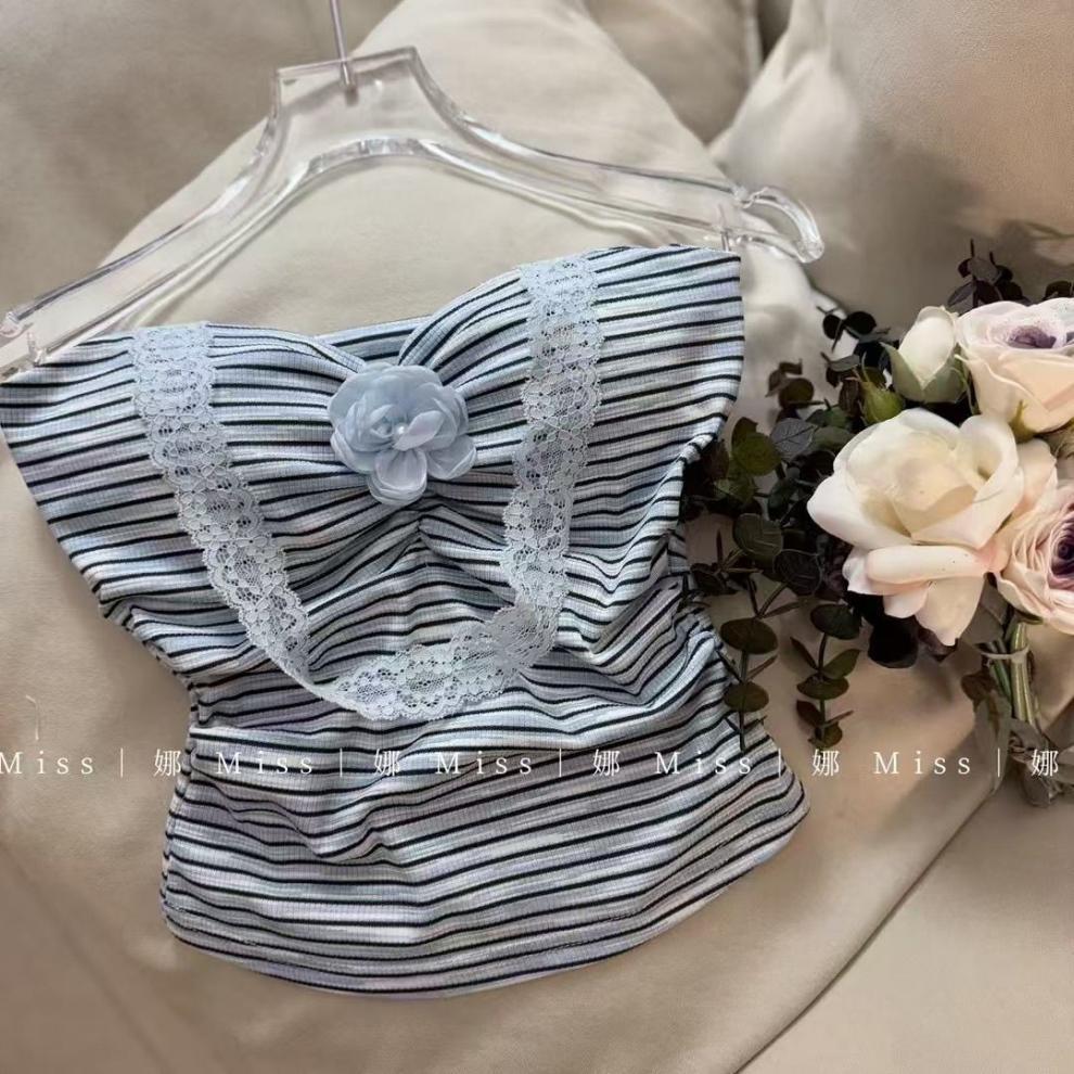 Новый жилет Pure Desire с кружевными подтяжками, полосатый нагрудник, летний облегающий короткий кружевной топ для девочек