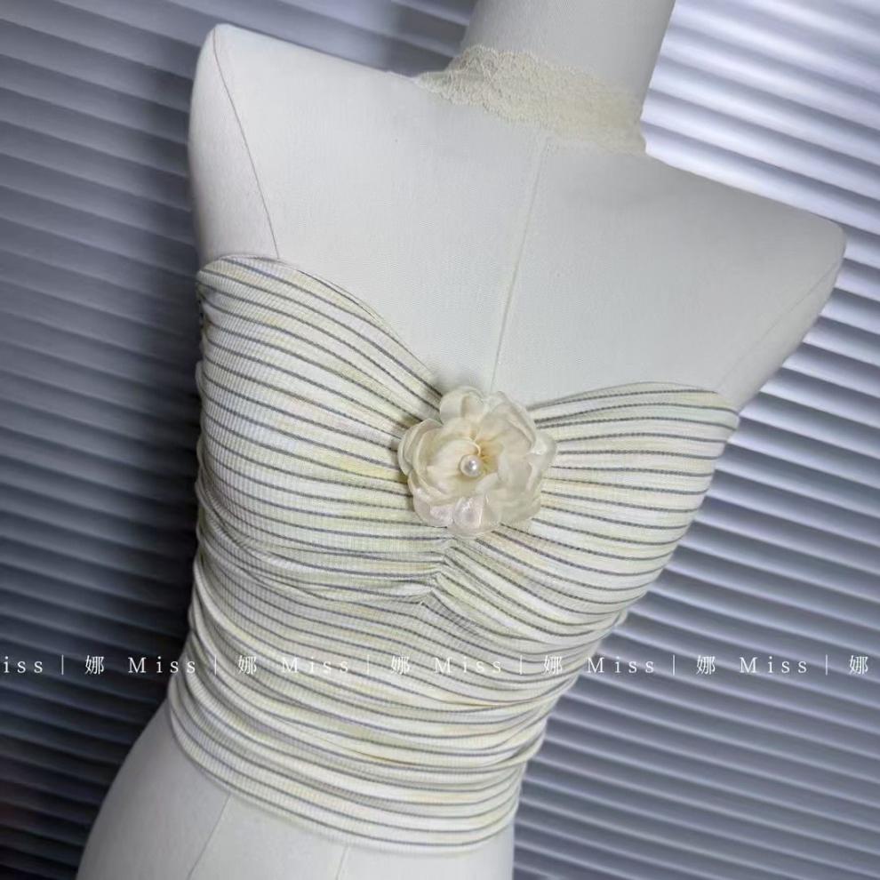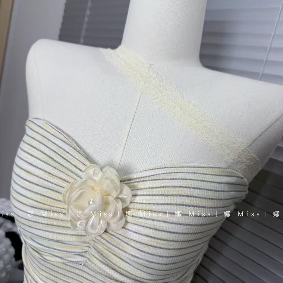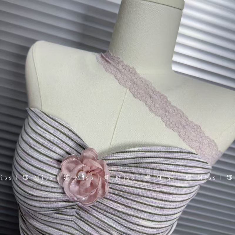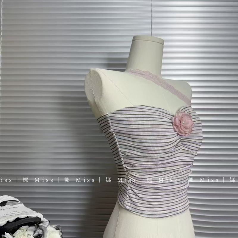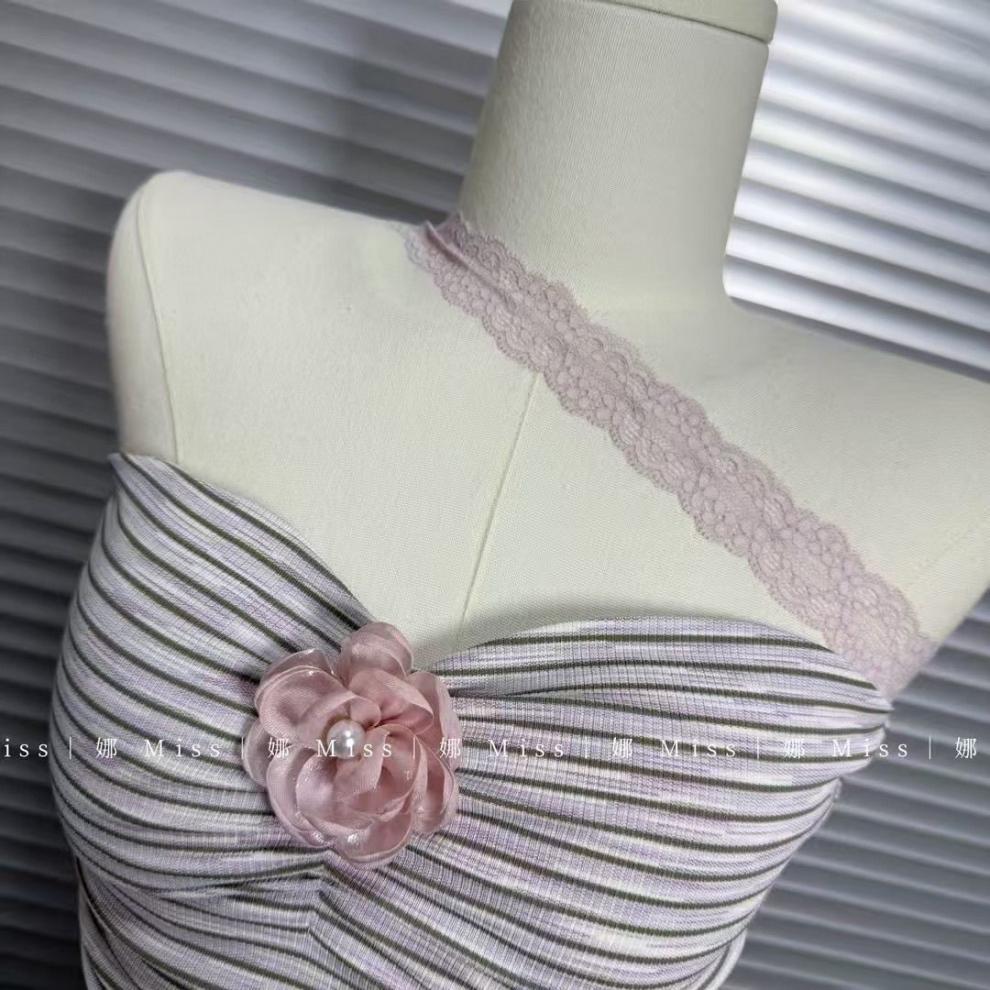 Новый жилет Pure Desire с кружевными подтяжками, полосатый нагрудник, летний облегающий короткий кружевной топ для девочек