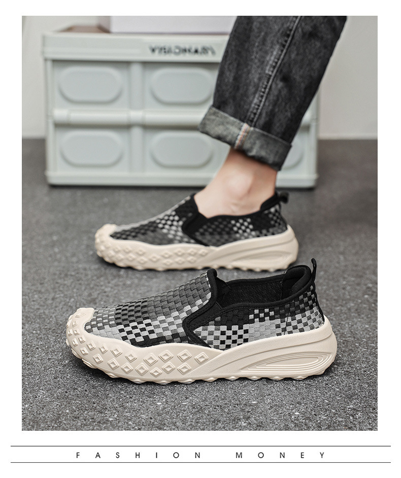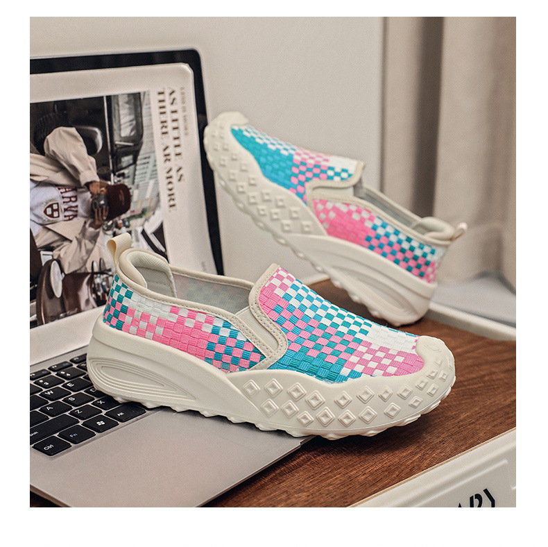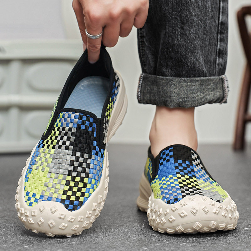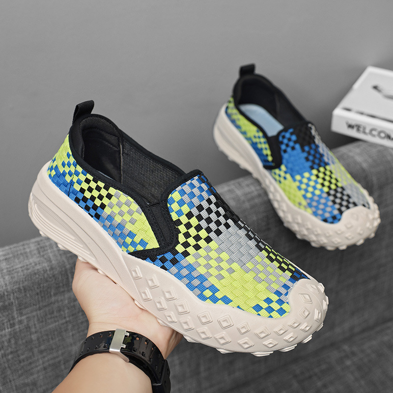 Мужские летние кроссовки Flyknit с цветными блоками, слипоны, лето 2025, новые универсальные спортивные модные туфли для студентов