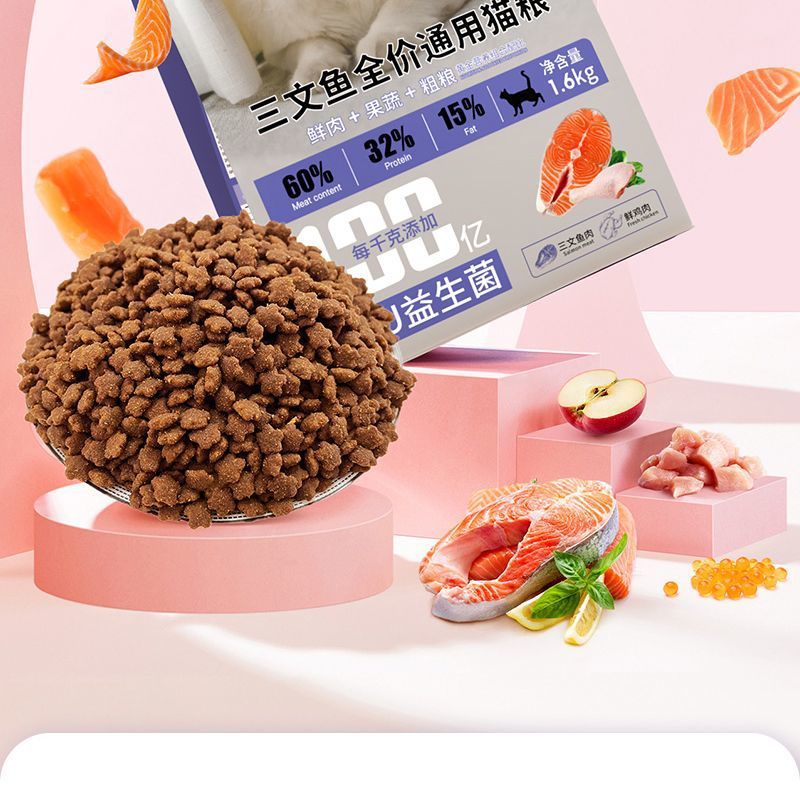 Полноценный корм Fupaisi для взрослых кошек и котят с лососем для набора веса, откорма щек, питания, шарик для удаления волос, универсальный тип для британских короткошерстных синих кошек
