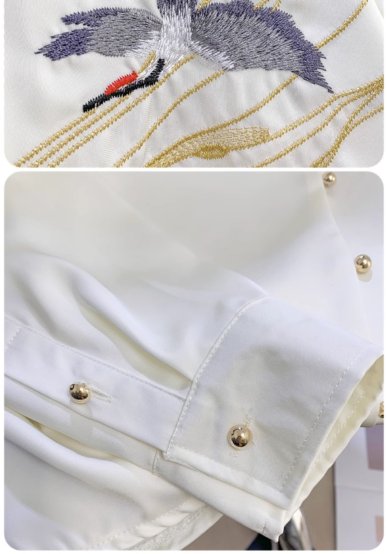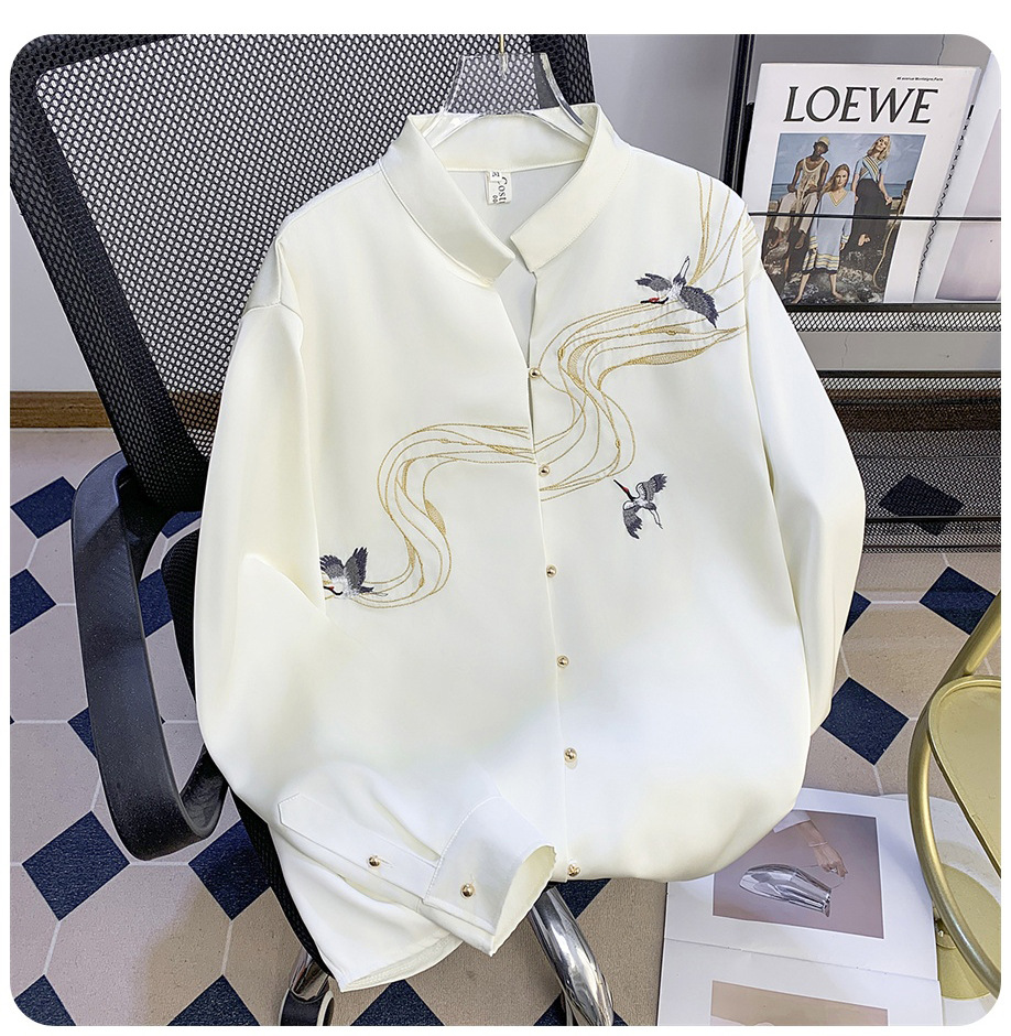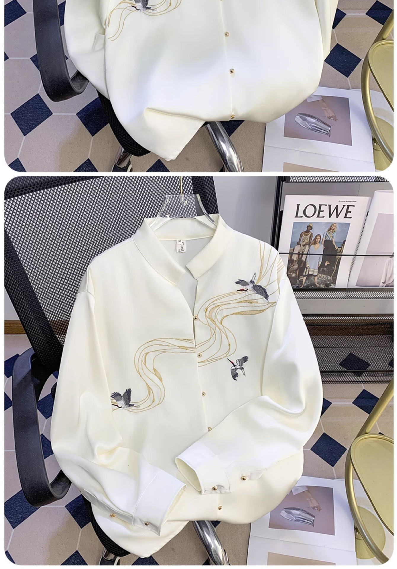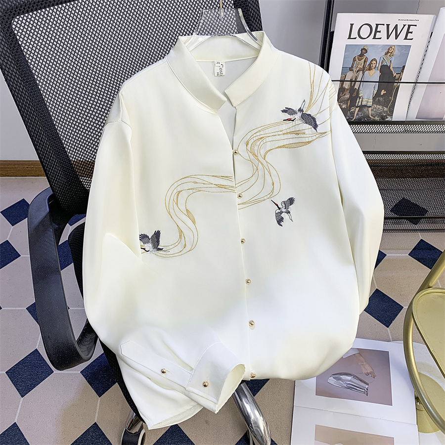 Новая рубашка с вышивкой журавля в китайском стиле, мужская ретро-рубашка высокого класса в национальном стиле с воротником-стойкой, повседневная рубашка с длинными рукавами в стиле Тан