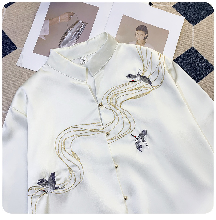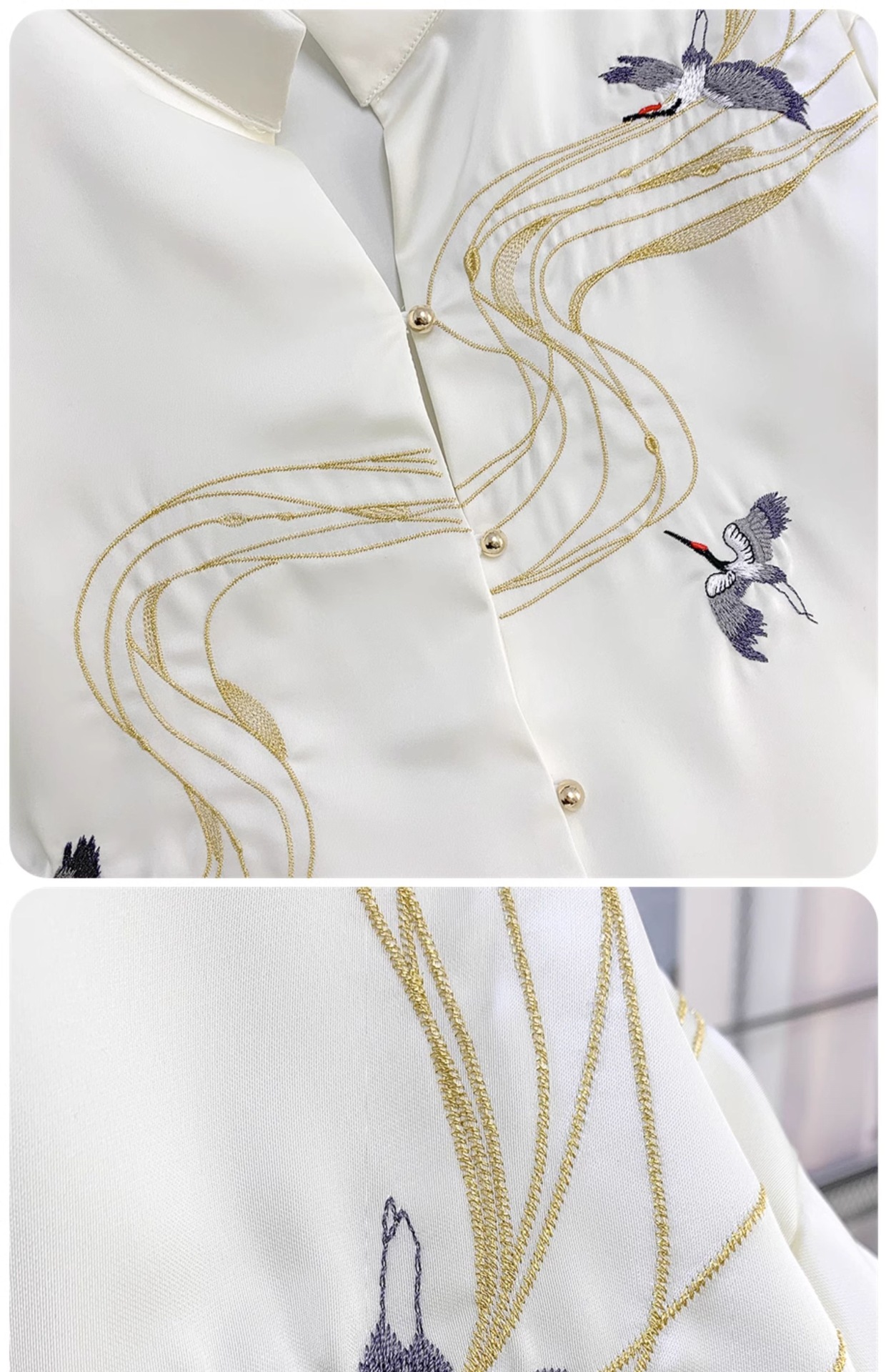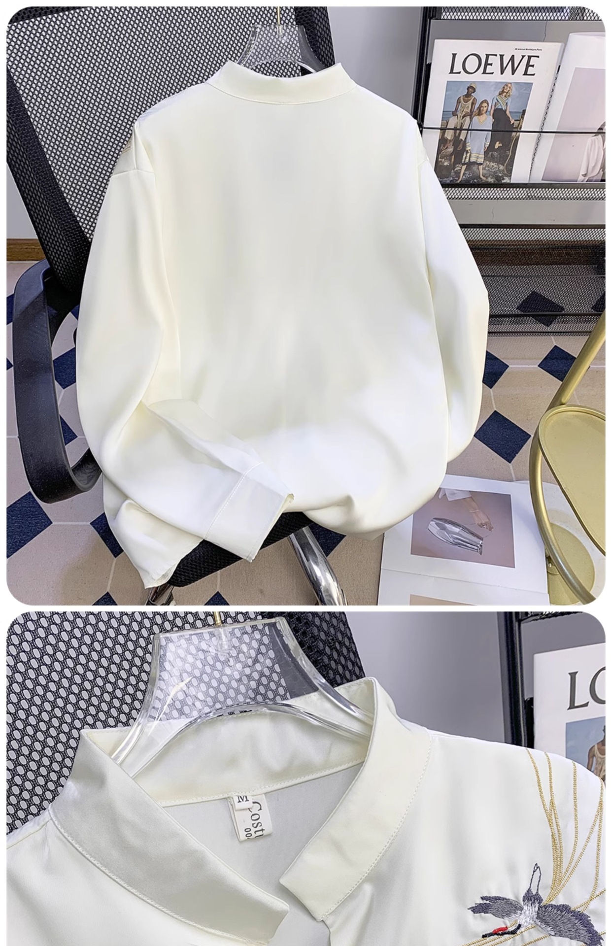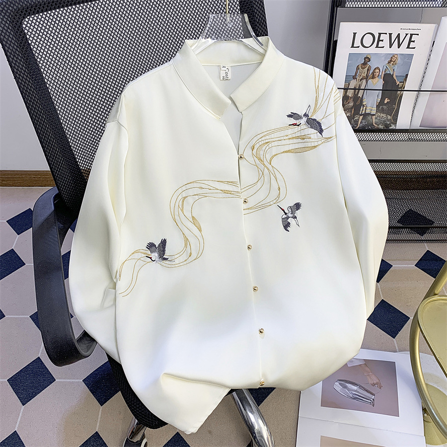 Новая рубашка с вышивкой журавля в китайском стиле, мужская ретро-рубашка высокого класса в национальном стиле с воротником-стойкой, повседневная рубашка с длинными рукавами в стиле Тан