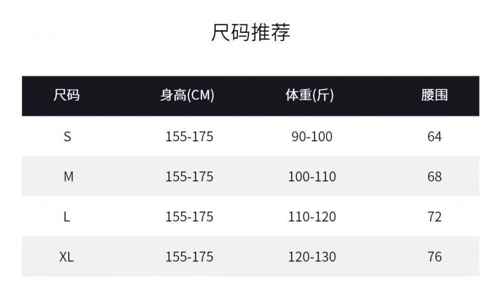 S 90-100; M 100-110; L 110-120; XL 120-130