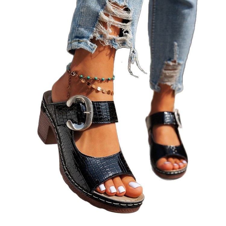 Женские летние босоножки на толстом каблуке, большие размеры, для трансграничной внешней торговли, модные, повседневные, с открытым носком.