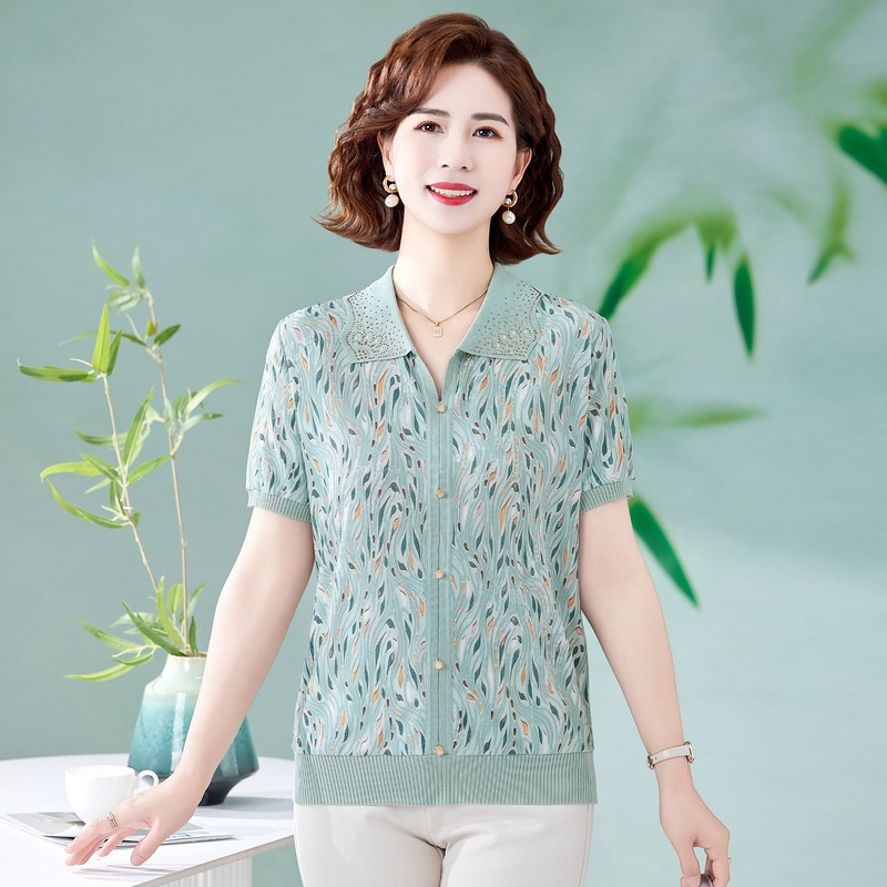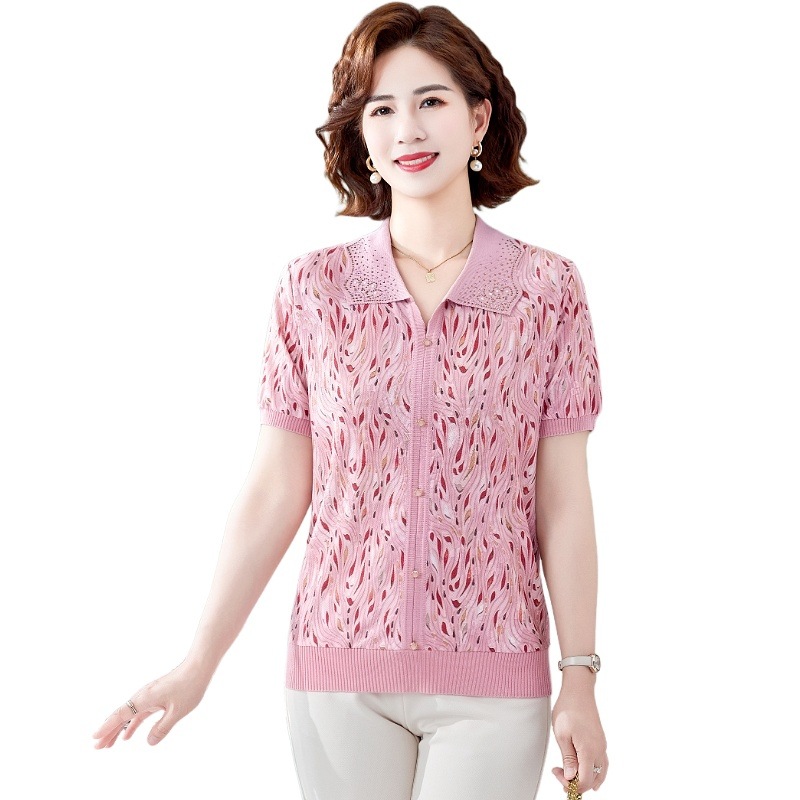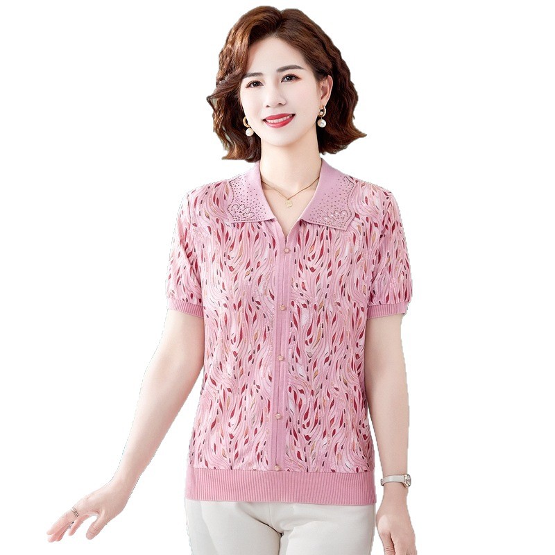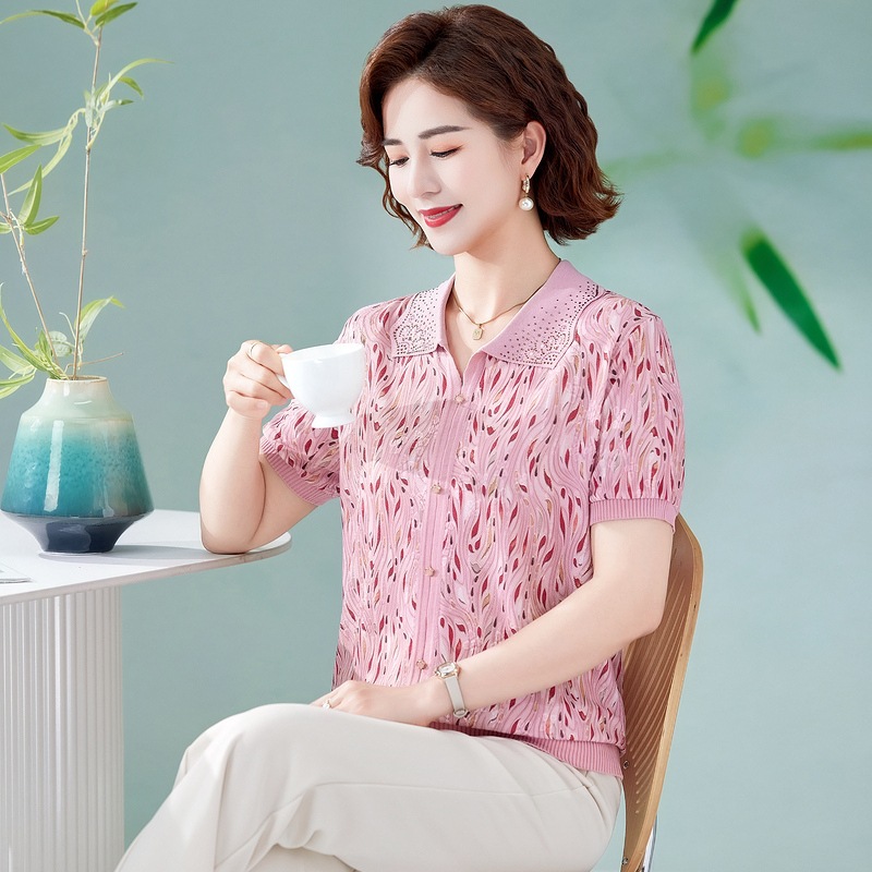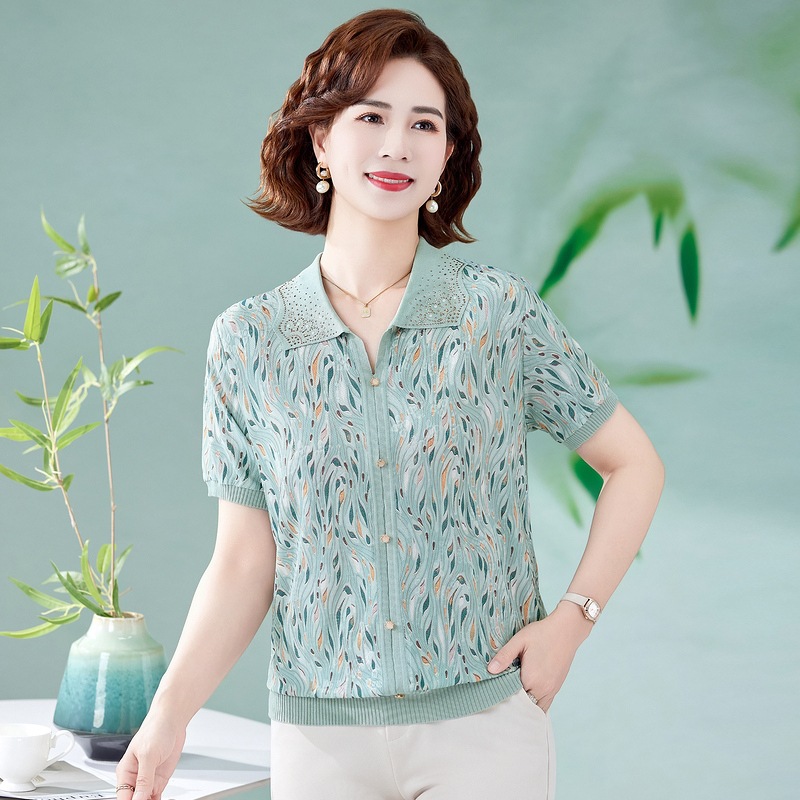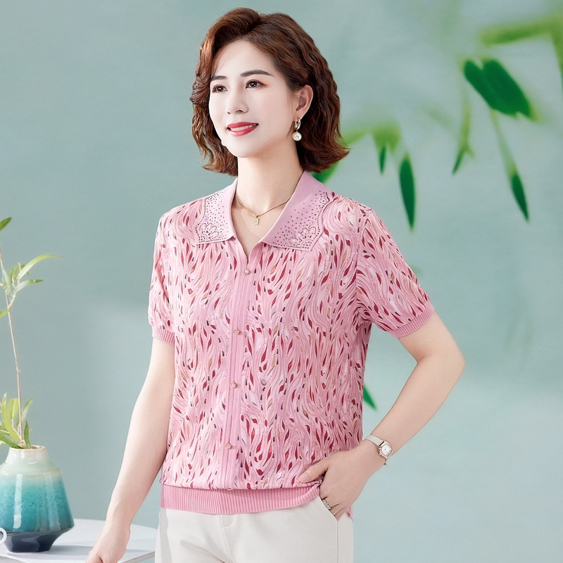 Летняя одежда для мам 2025, новый стиль, футболки с короткими рукавами, топы для женщин среднего и пожилого возраста 40 и 50 лет, рубашки для похудения больших размеров