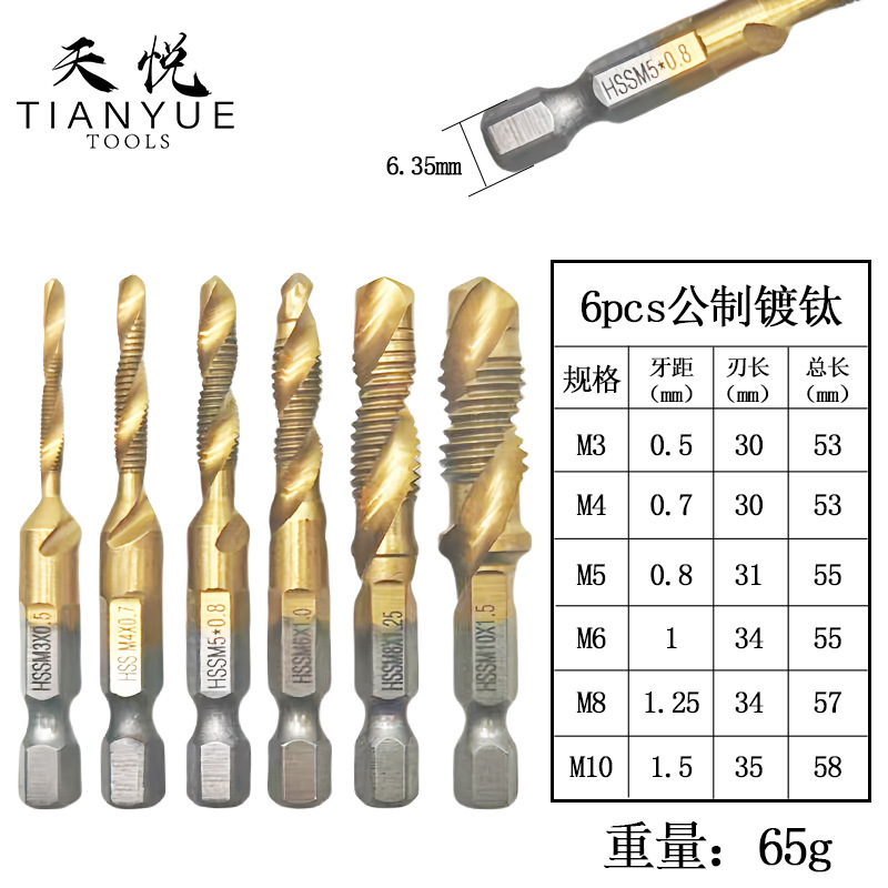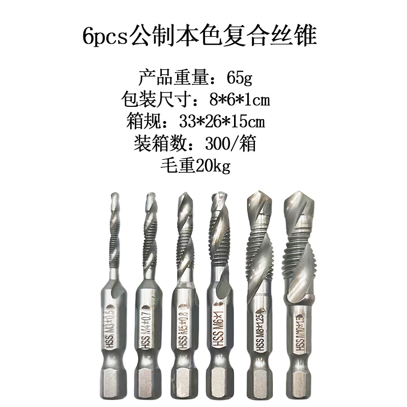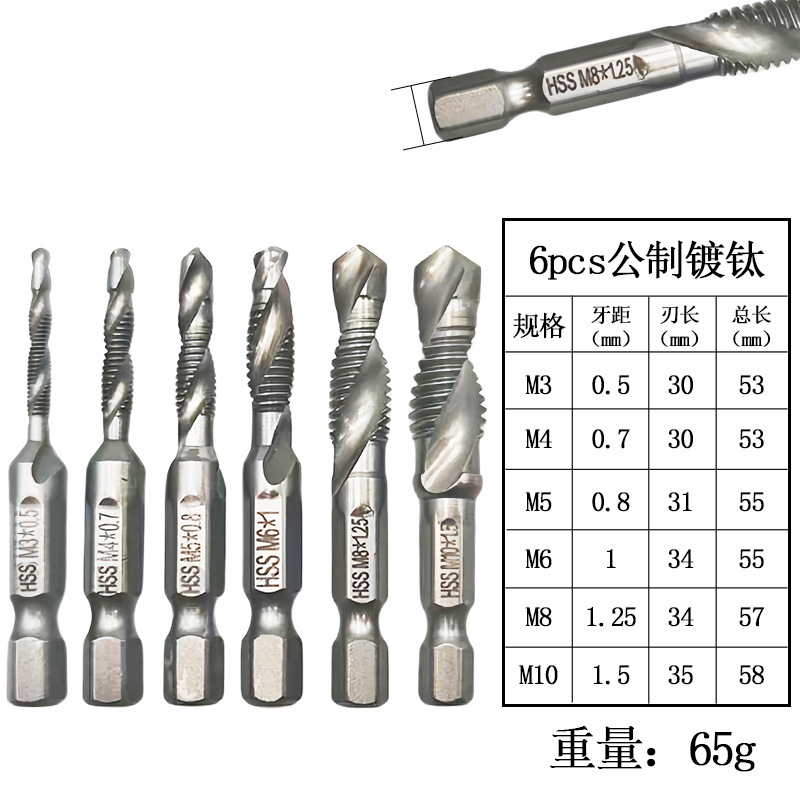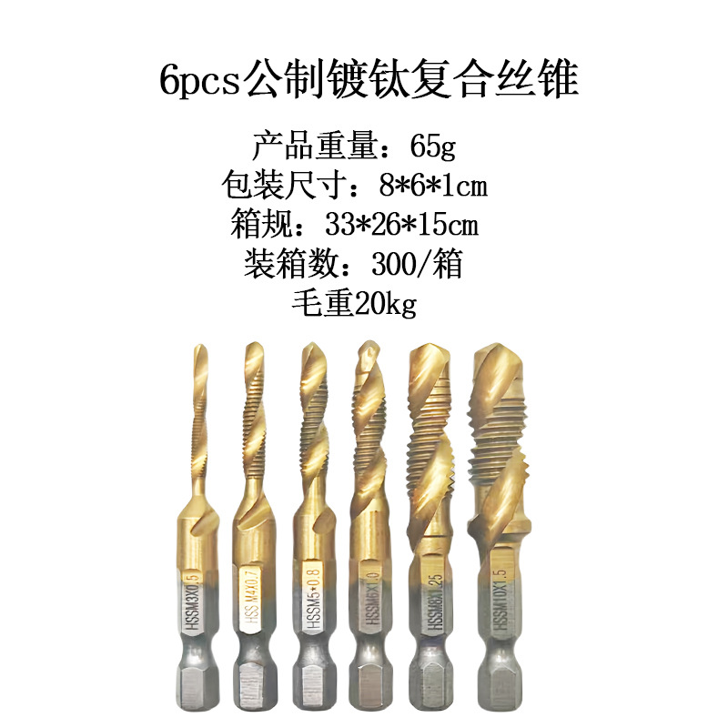 Композитный метчик из быстрорежущей стали, 6 шт., трансграничный, сверло и метчик, интегрированный метчик, титановый метчик для нарезания и снятия фаски в машинных отверстиях