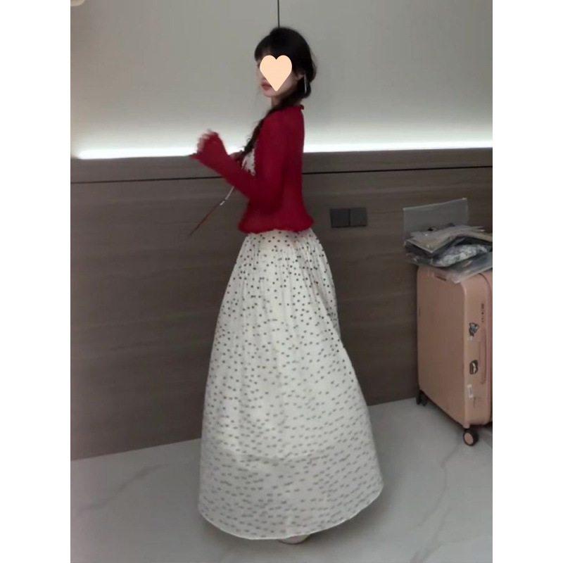 Юбка на подтяжках в горошек + красная солнцезащитная рубашка, комплект из двух предметов; Красный солнцезащитный свитер цельный; Платье на подтяжках в горошек, цельное изделие