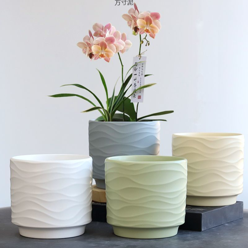 Новые гофрированные простые керамические цветочные горшки маленького, среднего и большого размера с подносом для домашних суккулентов Phalaenopsis, подвесные цветочные горшки оптом