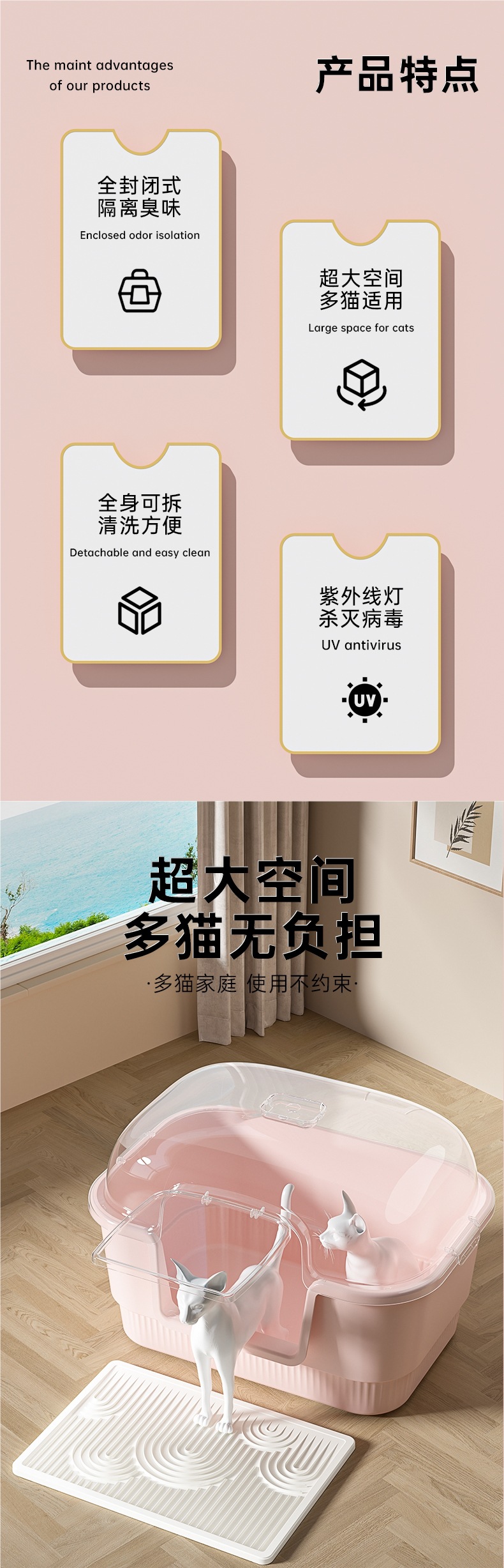 Ящик для кошачьего туалета, полностью закрытый, туалет для кошек с защитой от запаха и дезодорацией, брызгозащищенный ящик для кошачьего туалета, очень большой ящик для кошачьих какашек