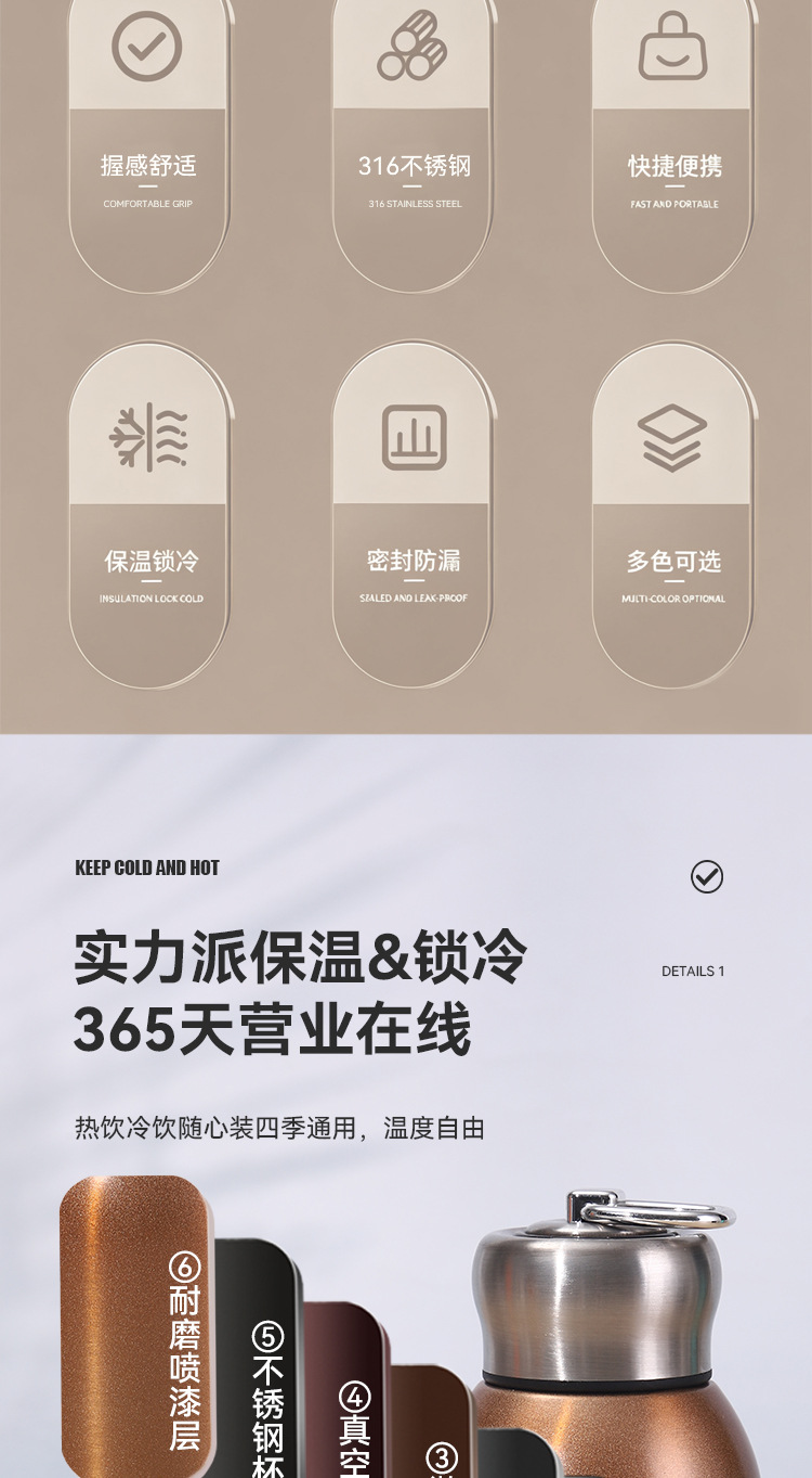 Популярная термокружка-бутылка из нержавеющей стали 304, компактная, портативная, с ручкой, для студентов, для автомобиля, с возможностью персонализации