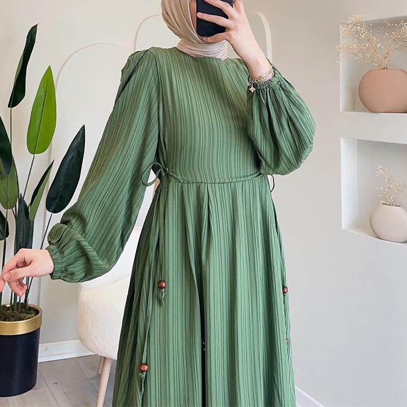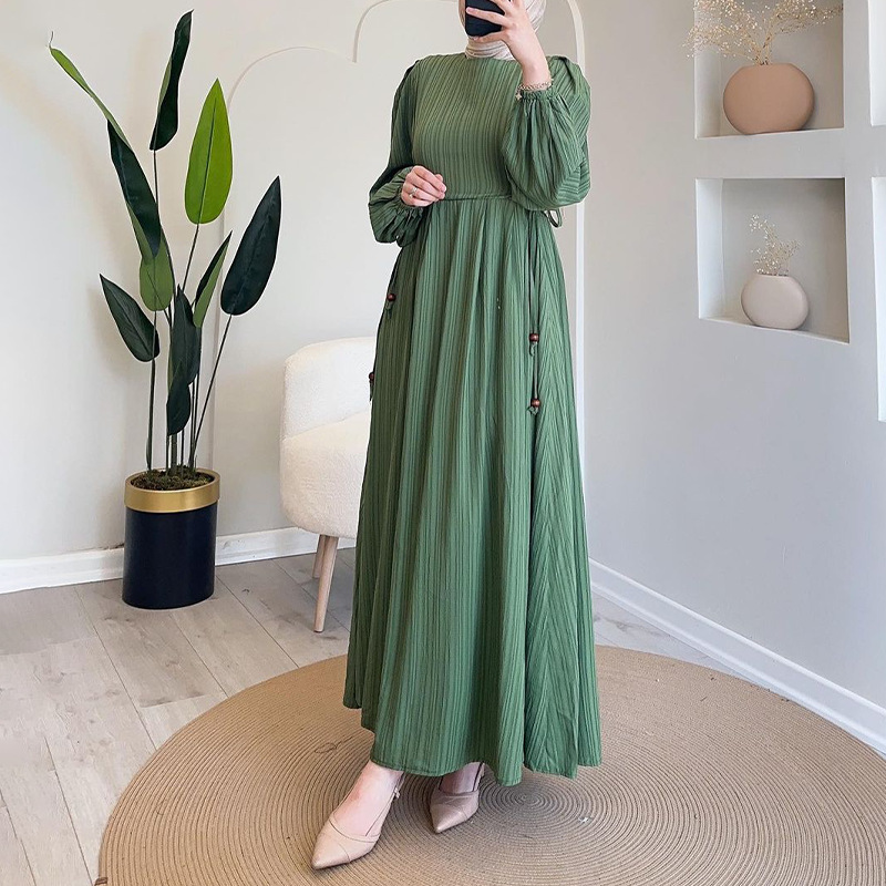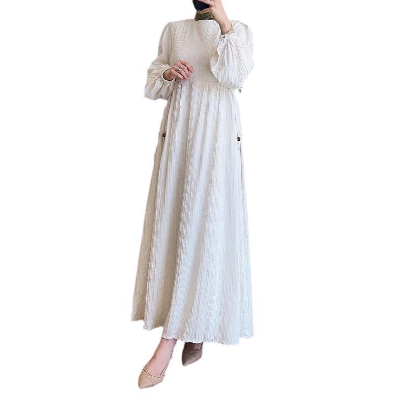 2025 Европейская и американская экспортная женская одежда, трансграничная осенняя мусульманская одежда с круглым вырезом и рукавами-фонариками, элегантное и удобное платье