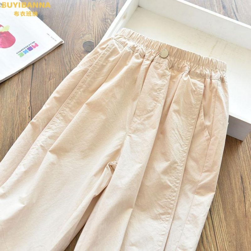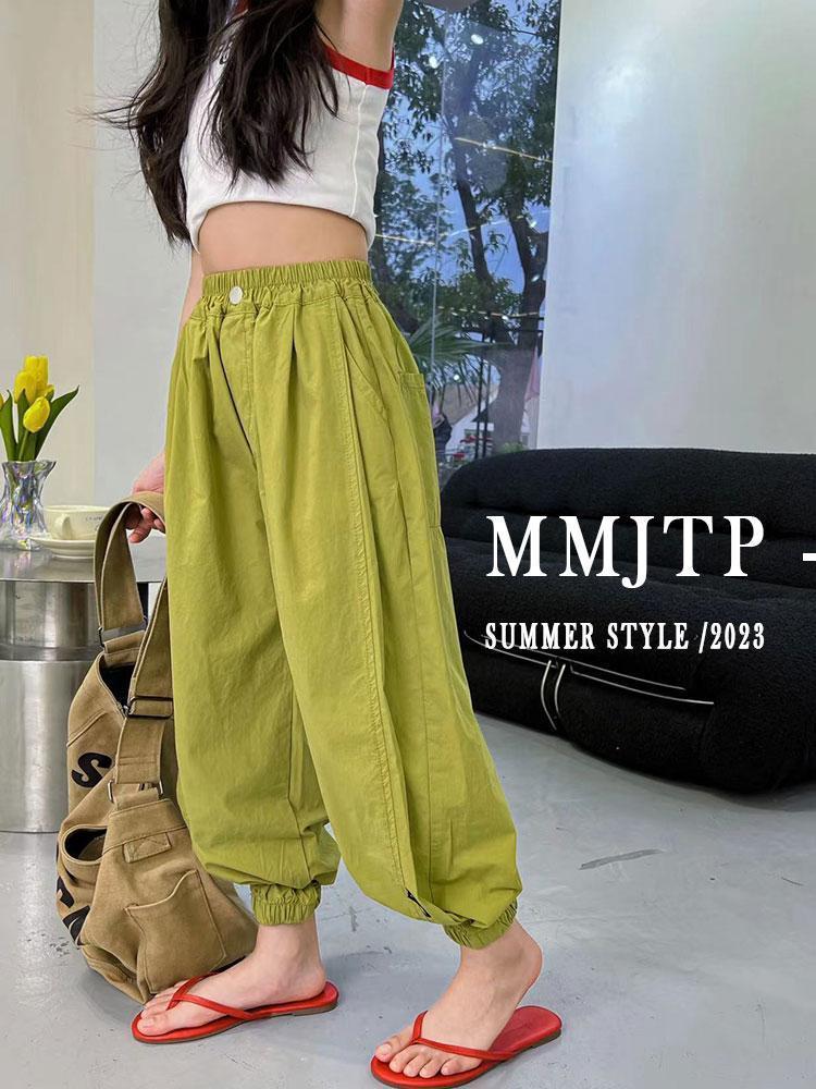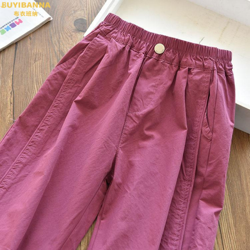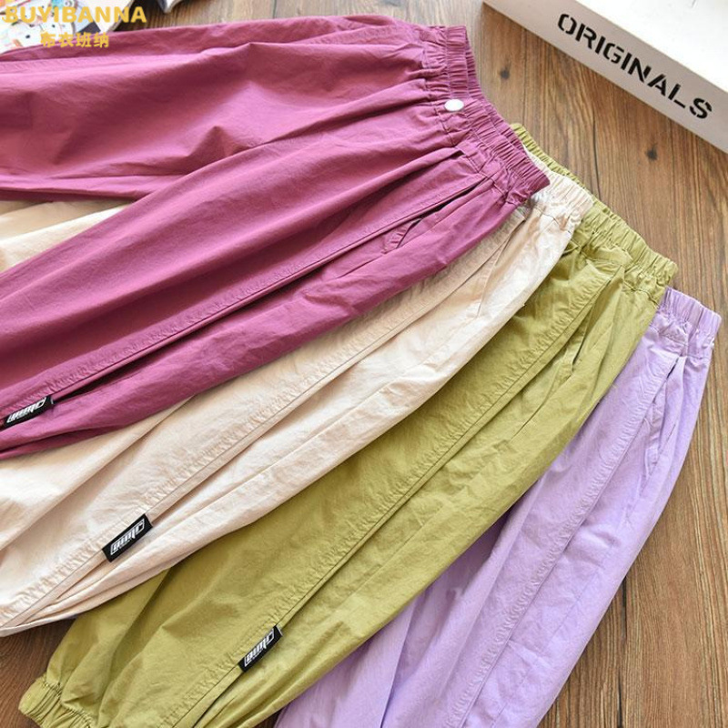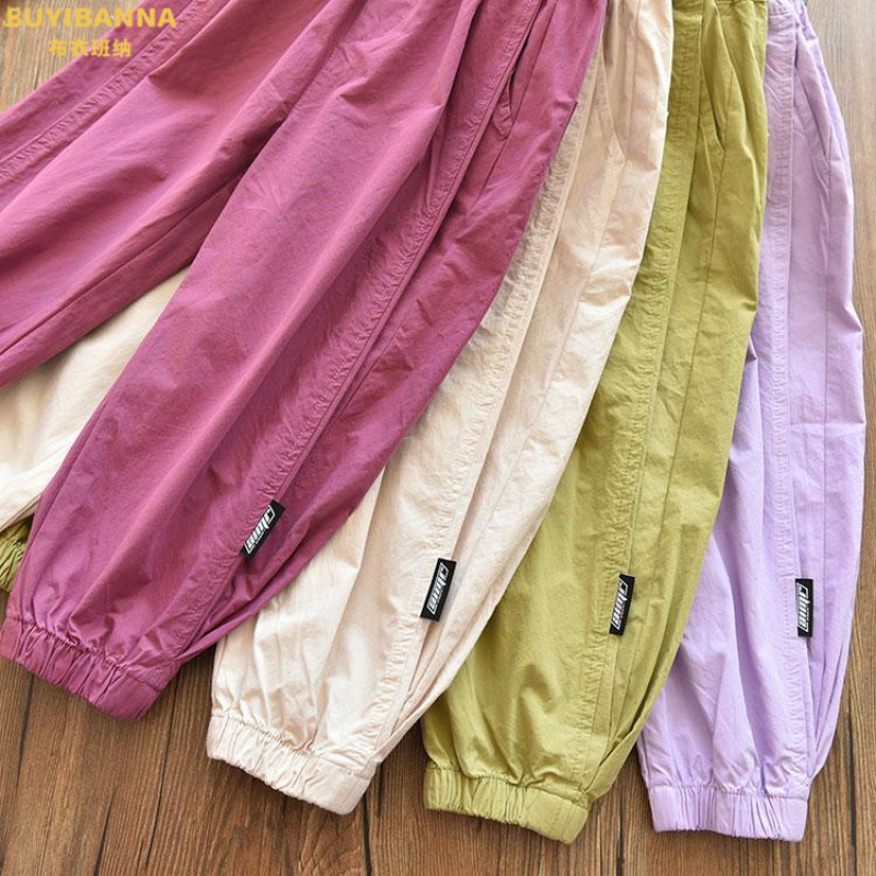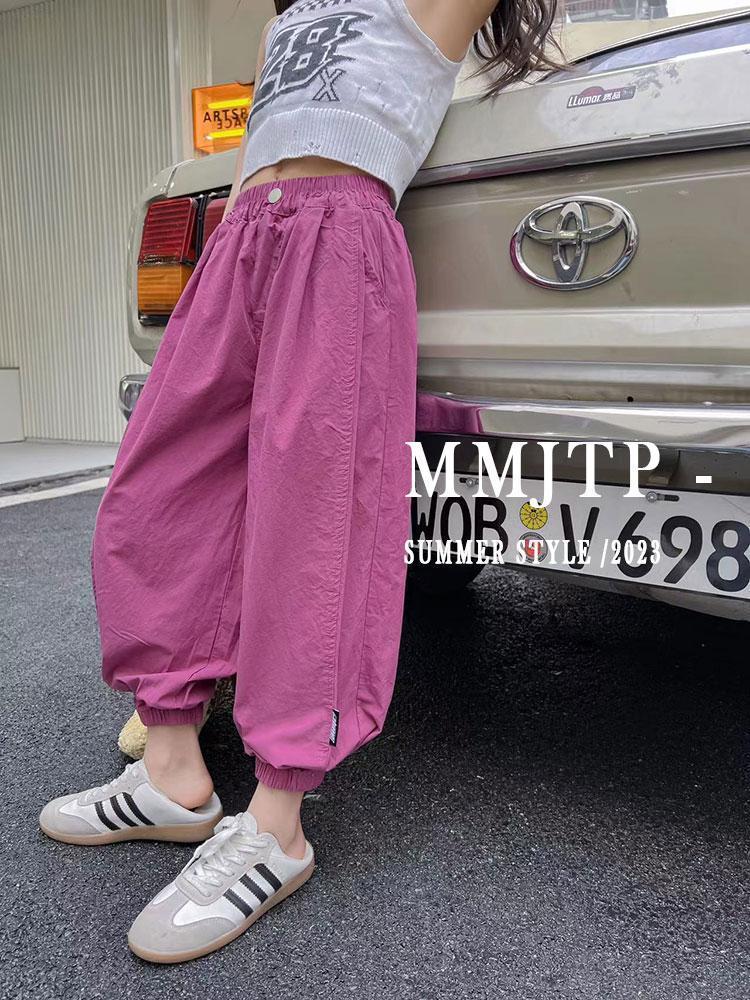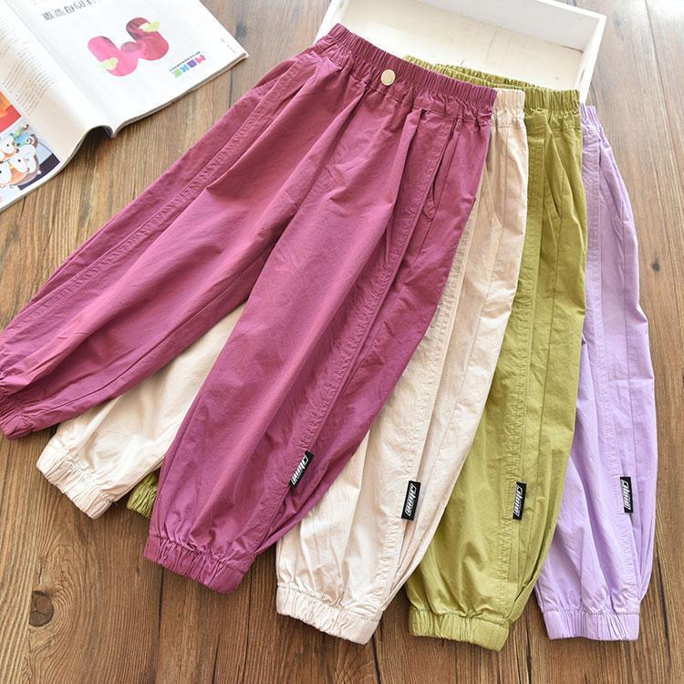 Летние тонкие однотонные свободные повседневные брюки-карго с боковой этикеткой для девочек, детские брюки для бега для папы.