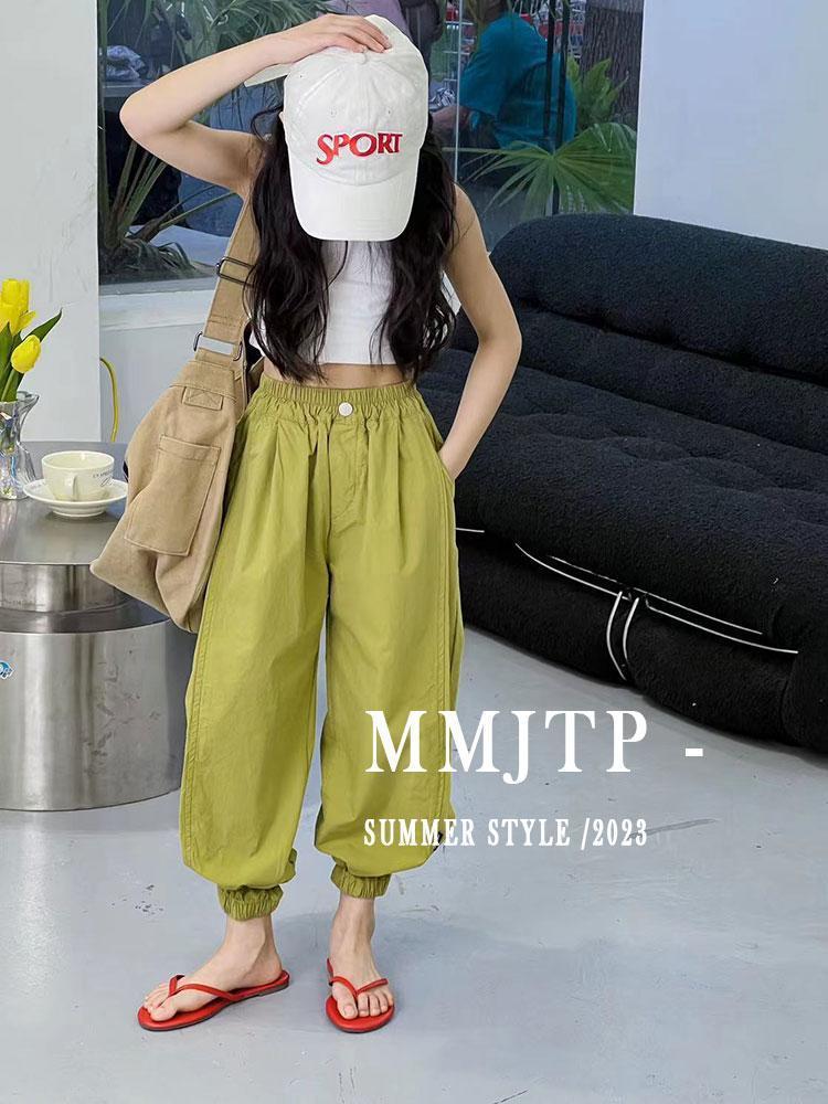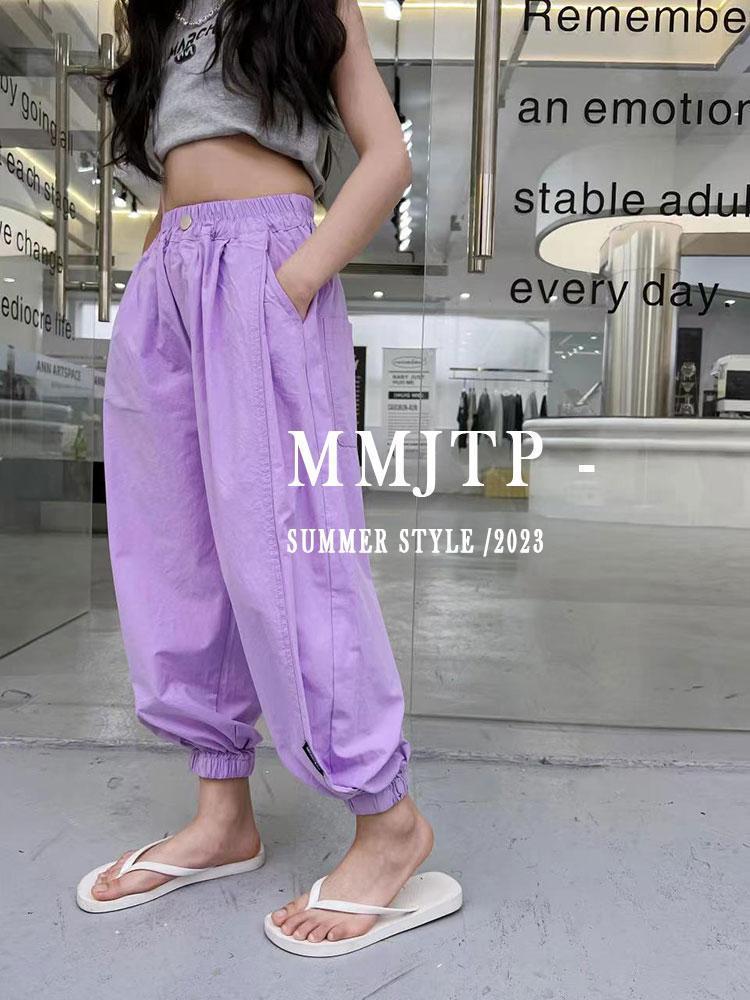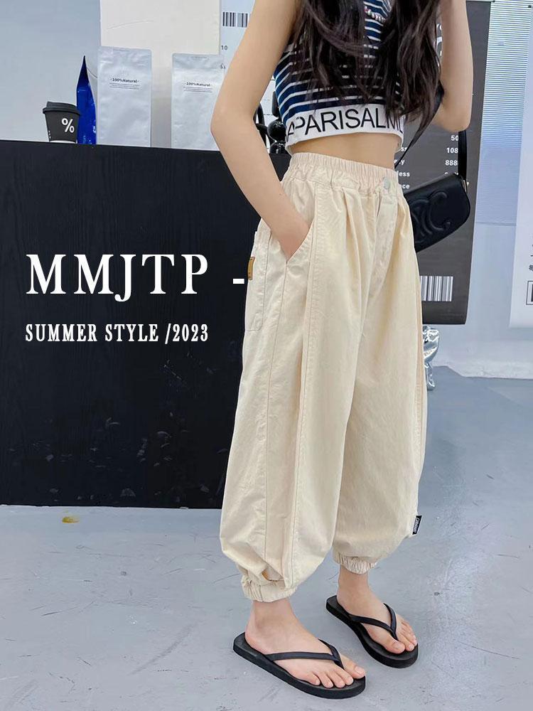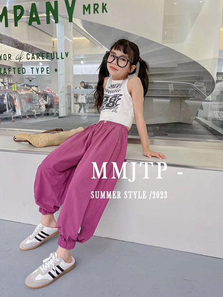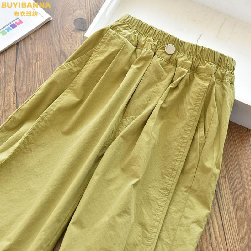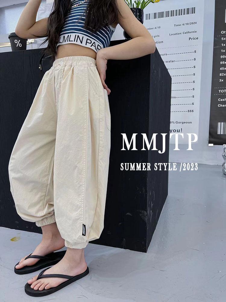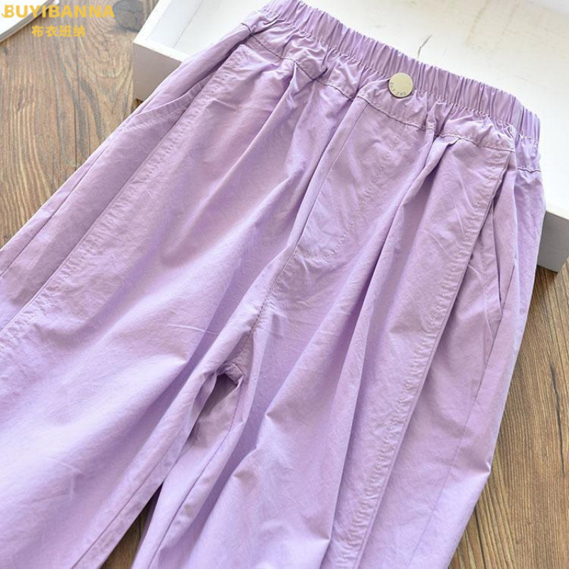 Летние тонкие однотонные свободные повседневные брюки-карго с боковой этикеткой для девочек, детские брюки для бега для папы.