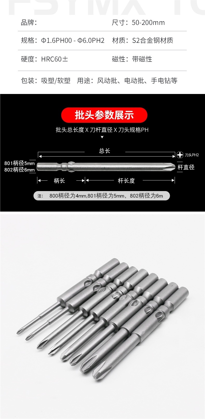 802 крестовая электрическая отвертка 801 электрическая отвертка 800 сильная магнитная бита S2 6 мм наконечник отвертки 5 удлиненных 4 сверла