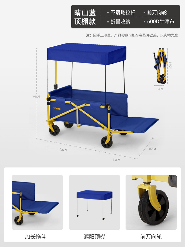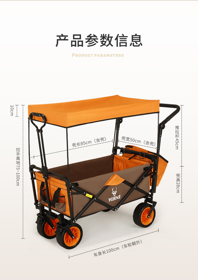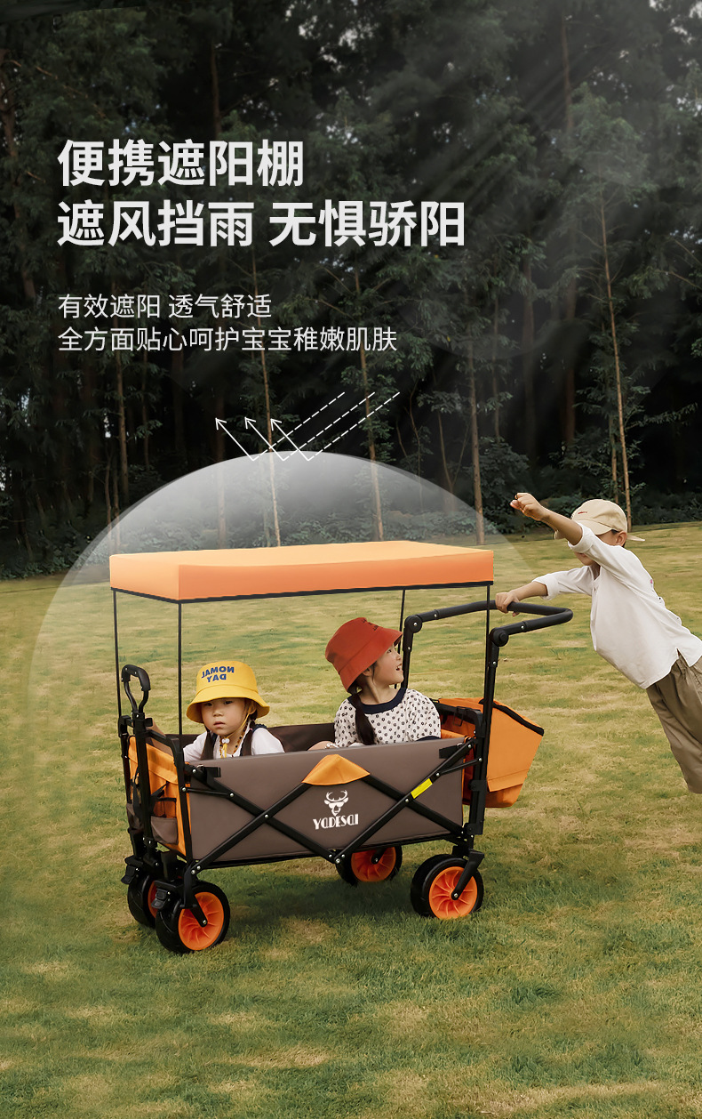 Детская складная прогулочная коляска-тележка для кемпинга с солнцезащитным козырьком