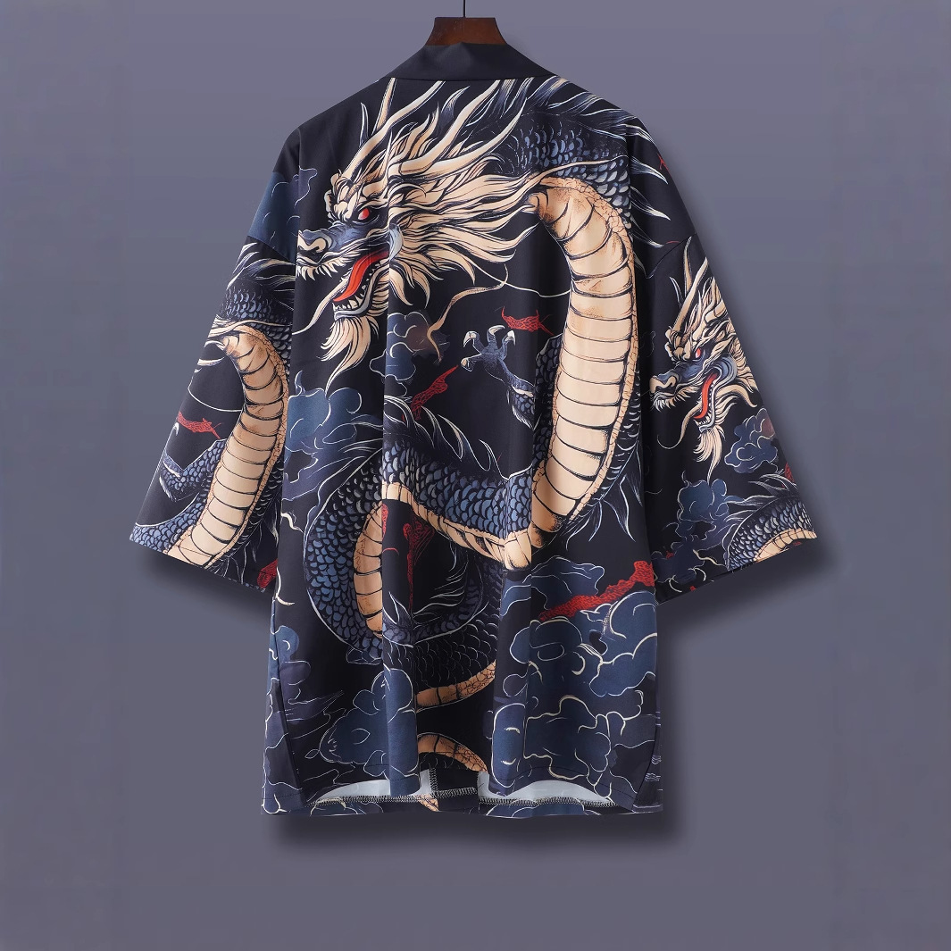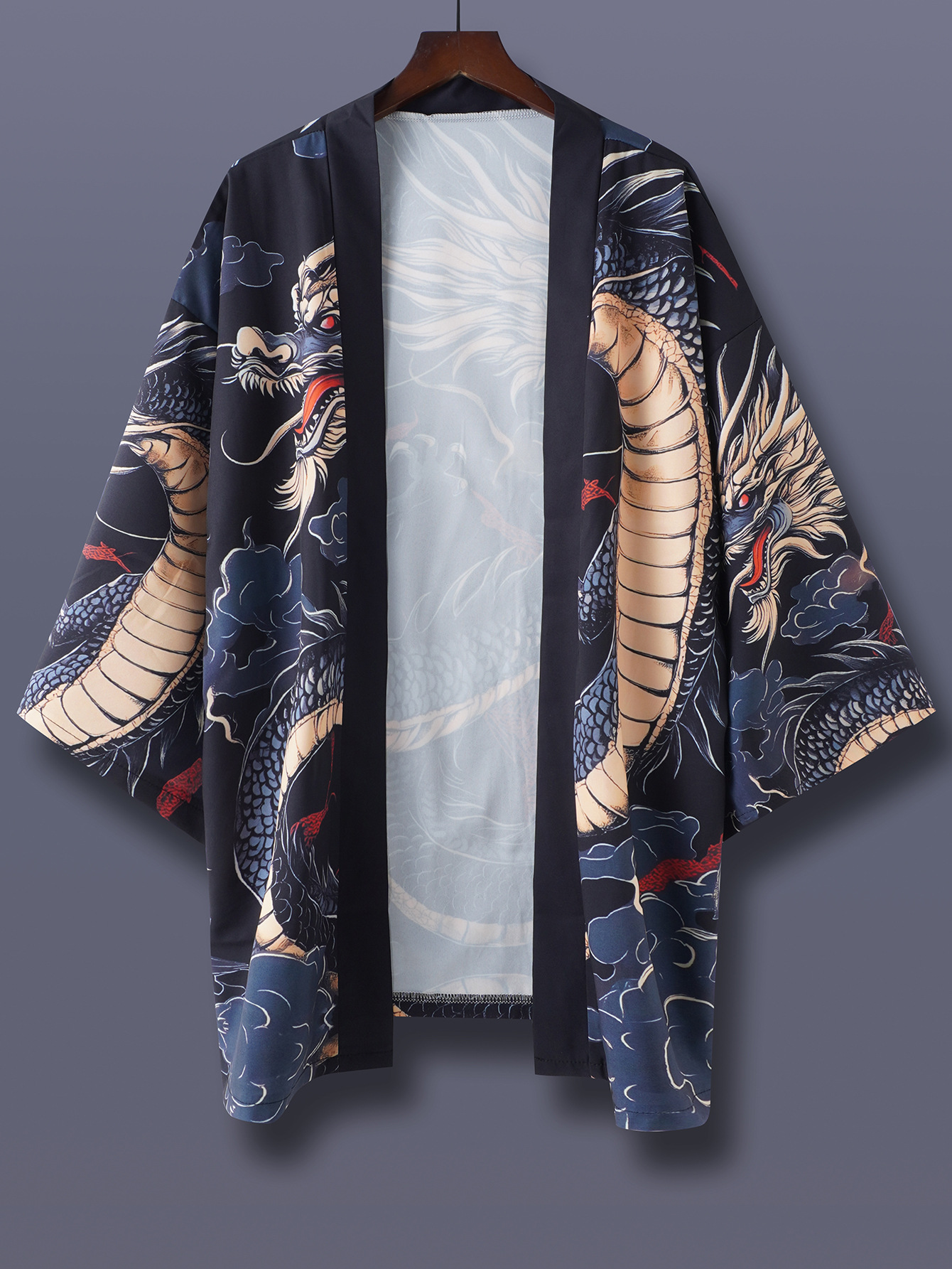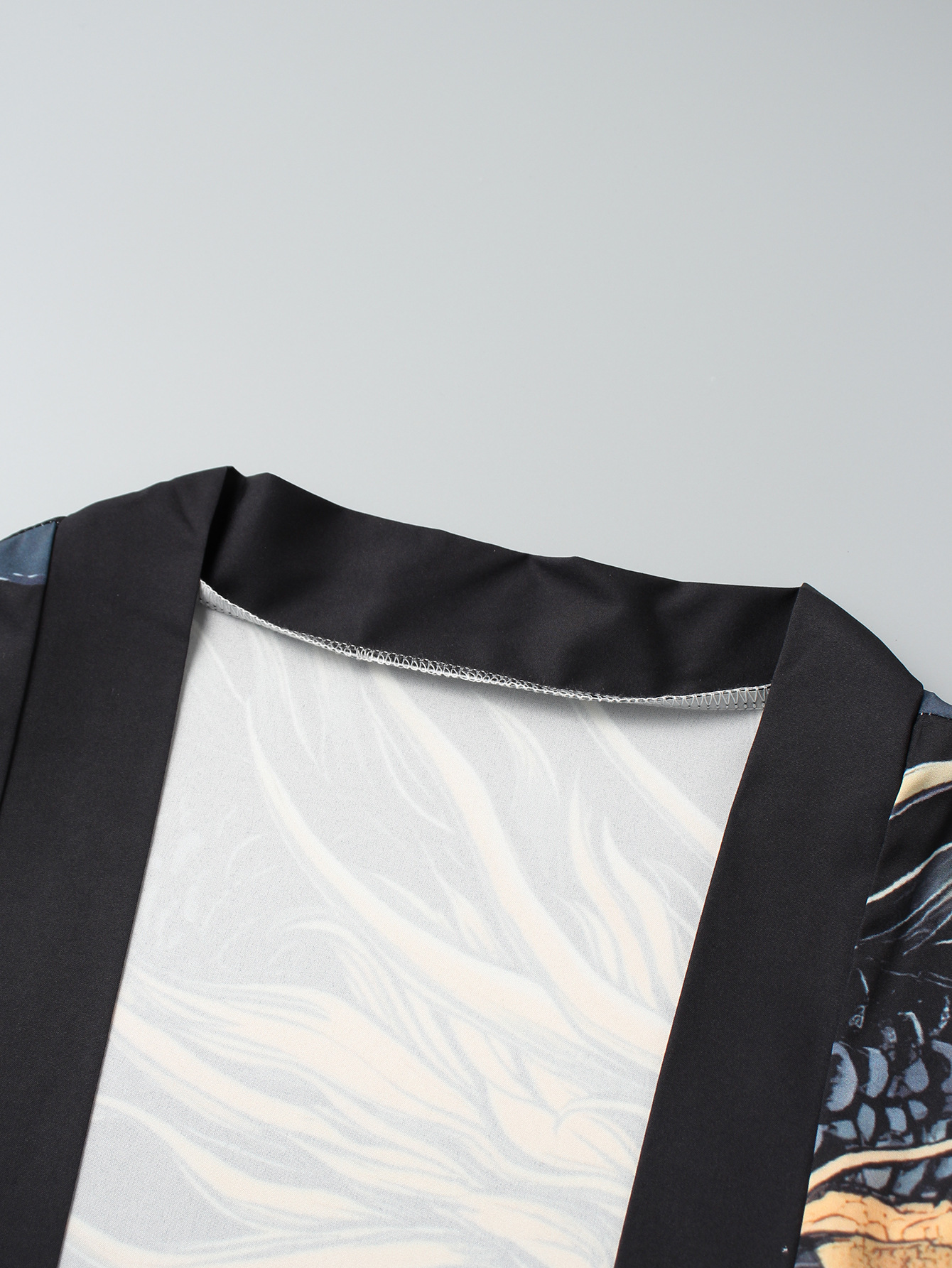 Этнический стиль, пара, тонкий улучшенный свободный модный кардиган с рукавами три четверти, кимоно, тонкая верхняя одежда, летняя защита от солнца