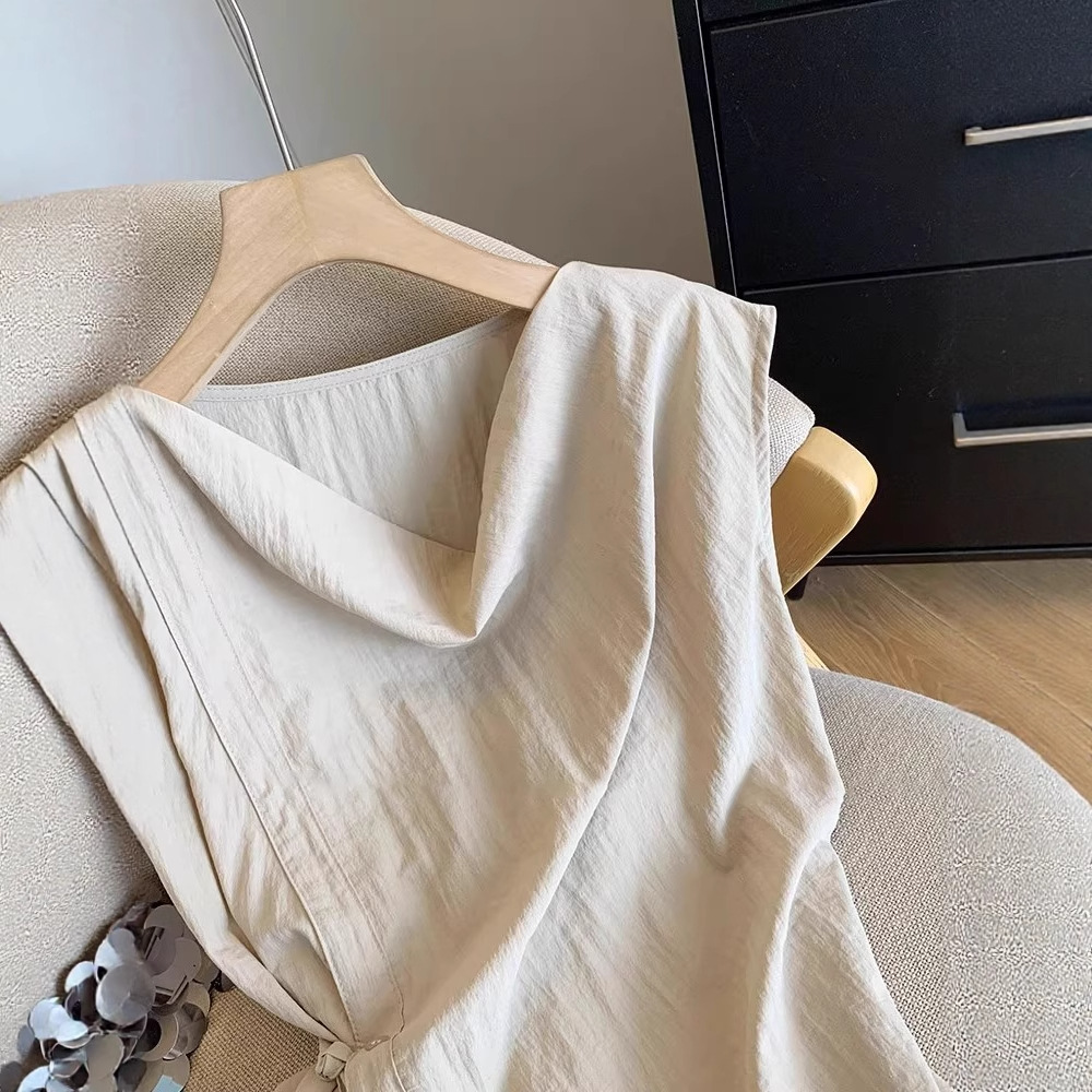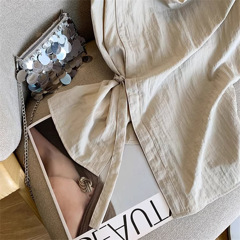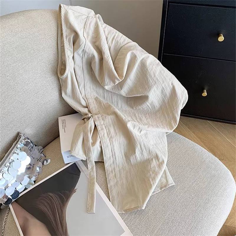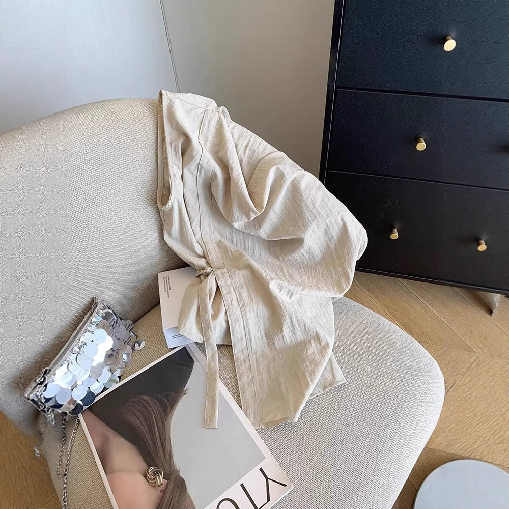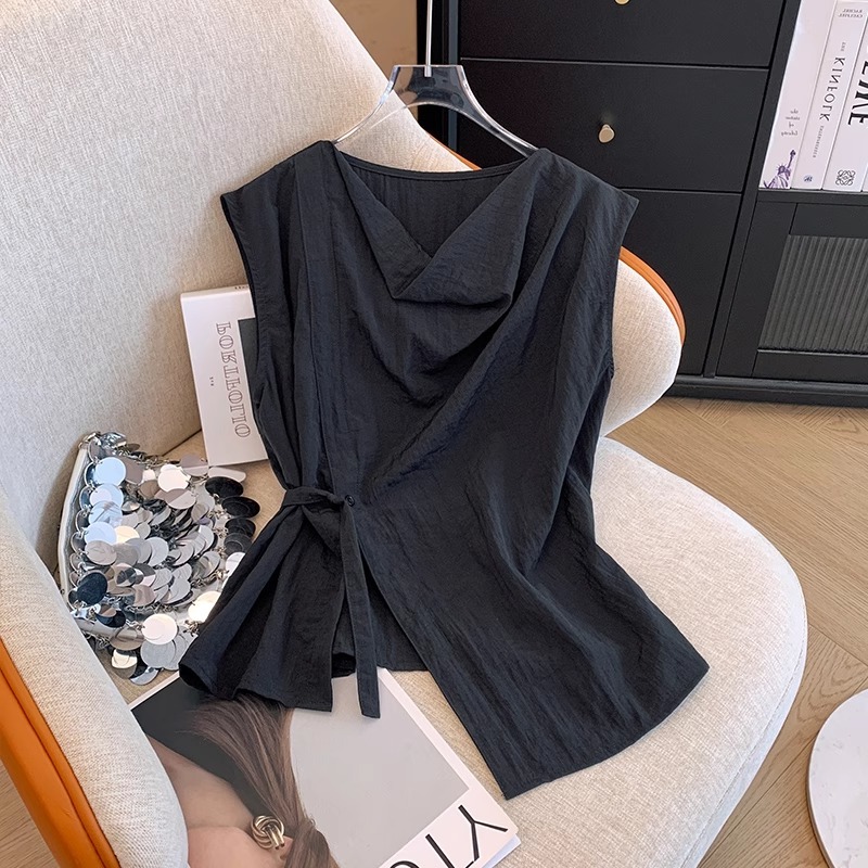 Нежный дизайн во французском стиле с разрезом и расклешенным воротником, женская рубашка без рукавов, летний топ-жилет с завышенной талией для миниатюрных размеров.