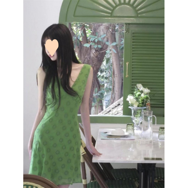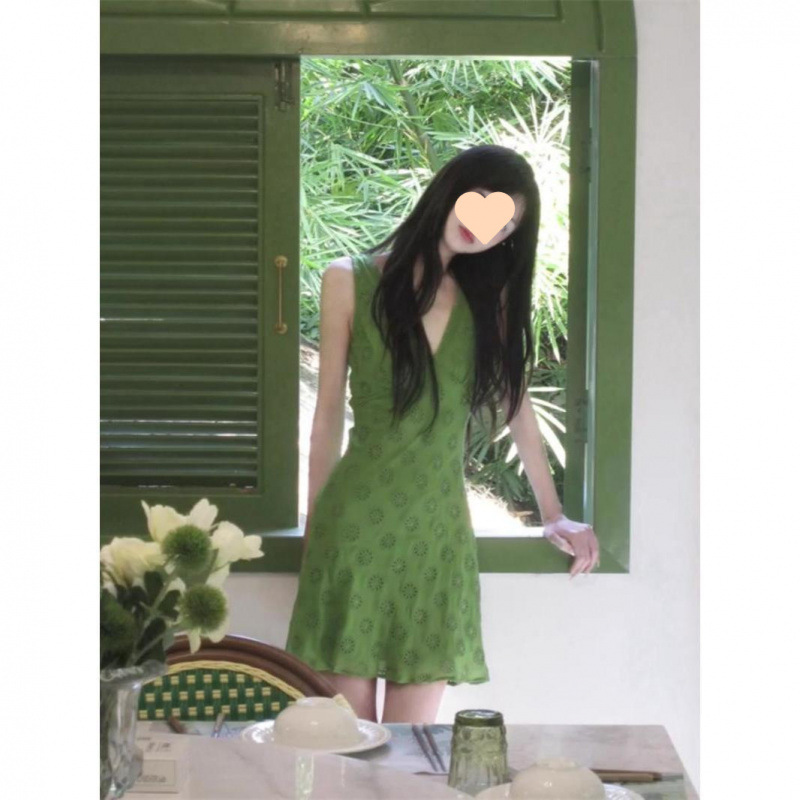 Зеленое вязаное платье без рукавов в стиле ретро с v-образным вырезом для женщин, весенняя французская сексуальная утягивающая короткая юбка для маленьких людей