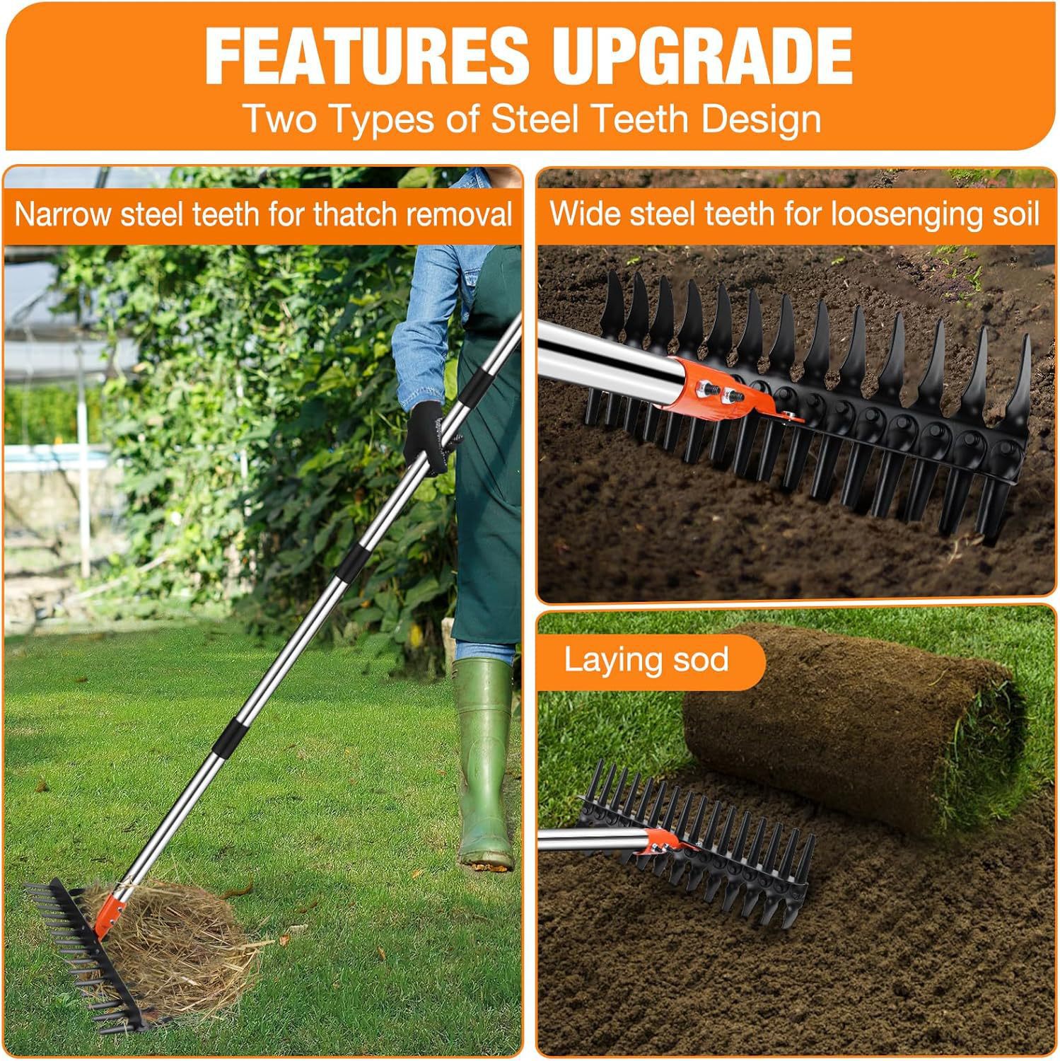 Высококачественная грабли с двойными зубьями для ухода за садом и газоном.