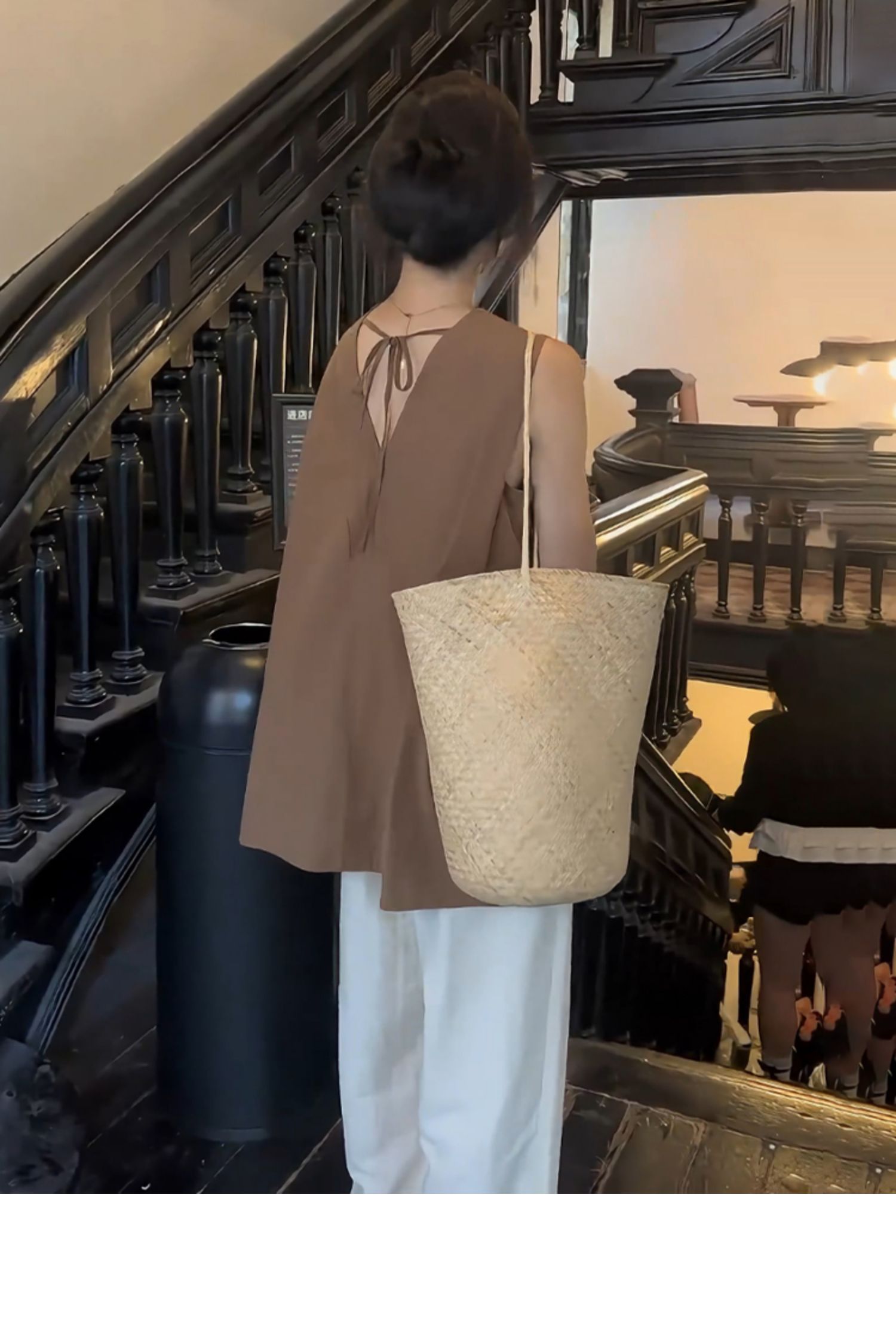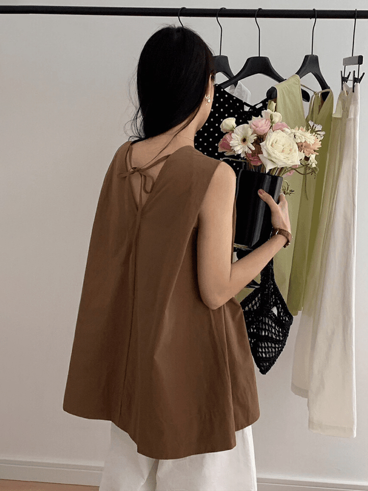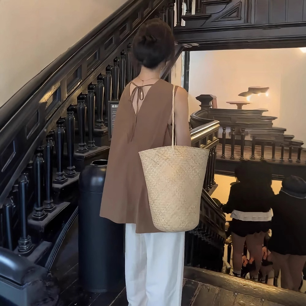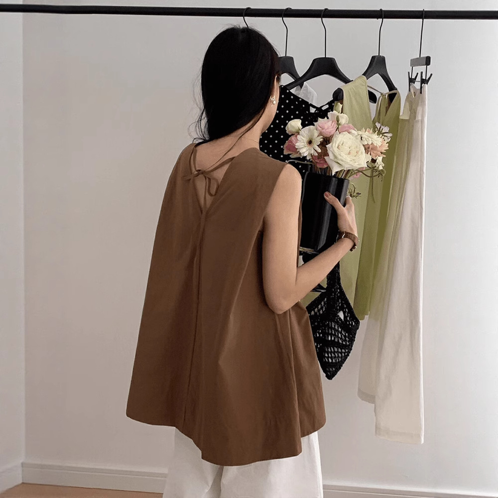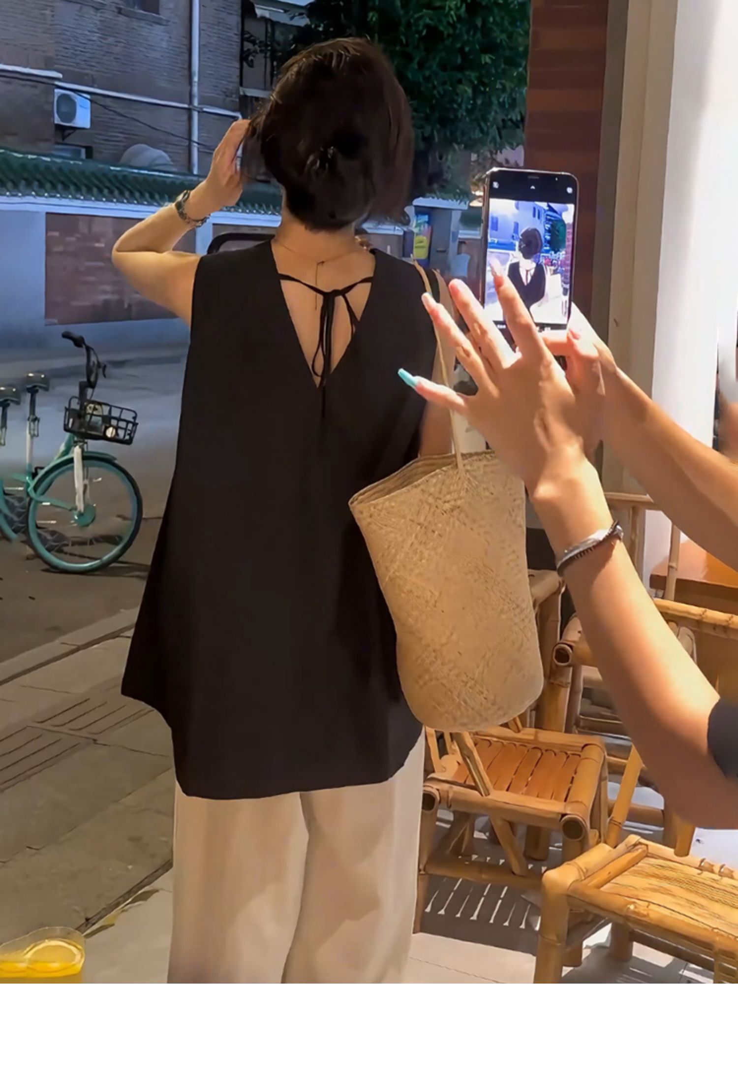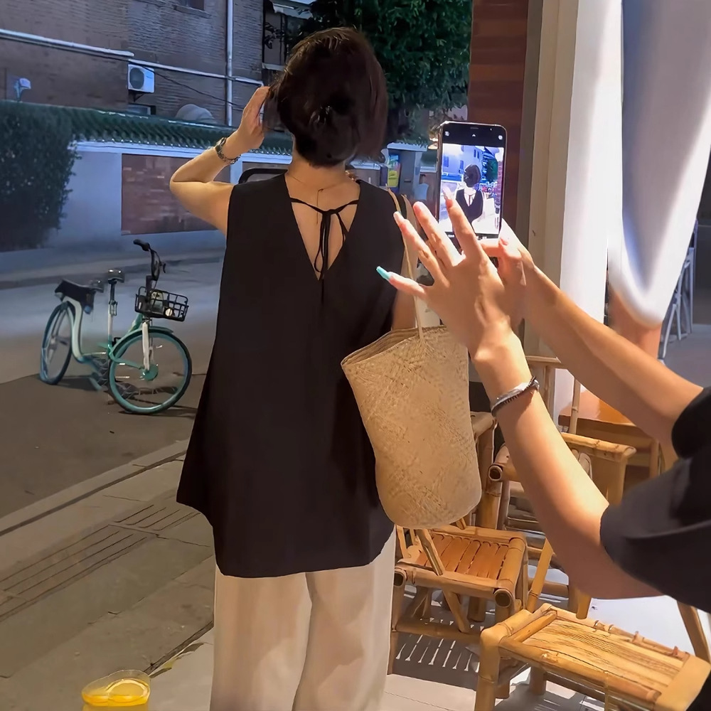 Женская летняя майка-топ 2025 года, французский стиль, без спинки, с вырезом, шнуровкой, V-образным вырезом, без рукавов