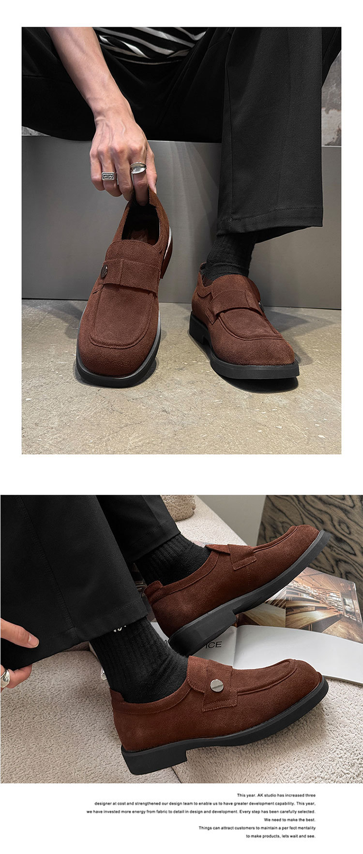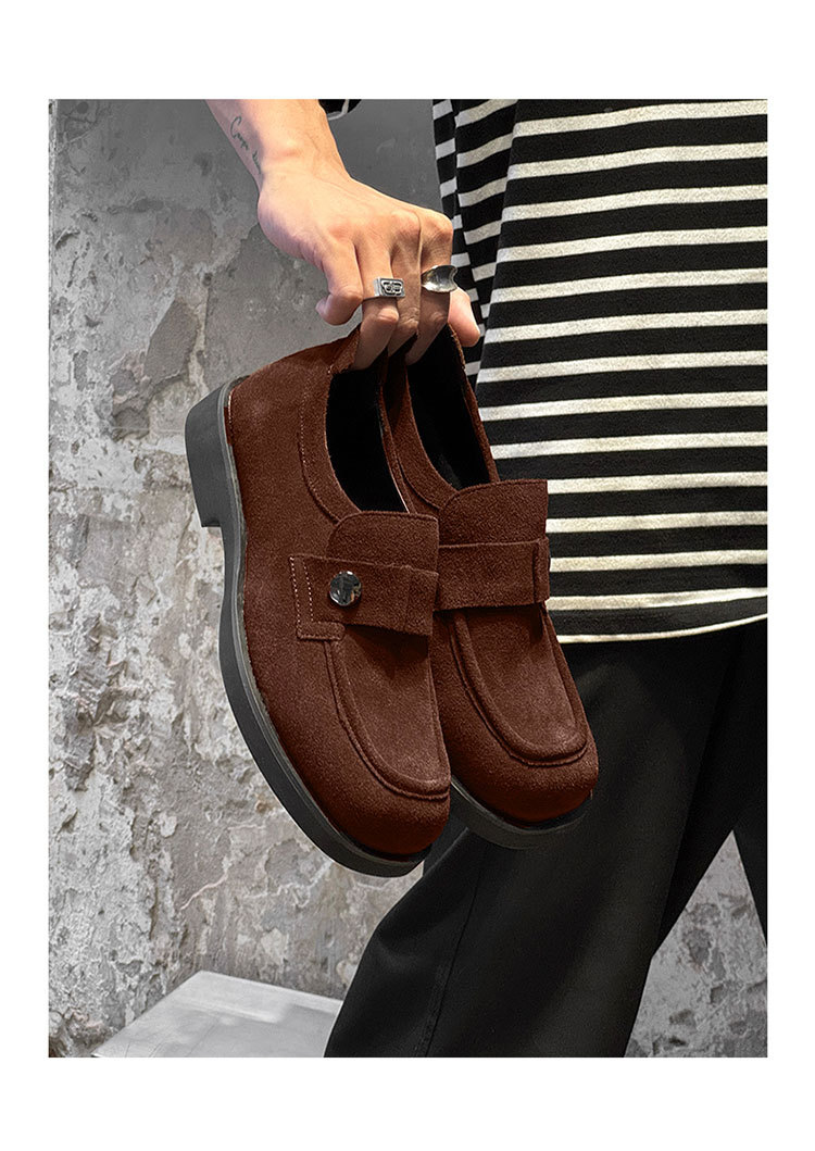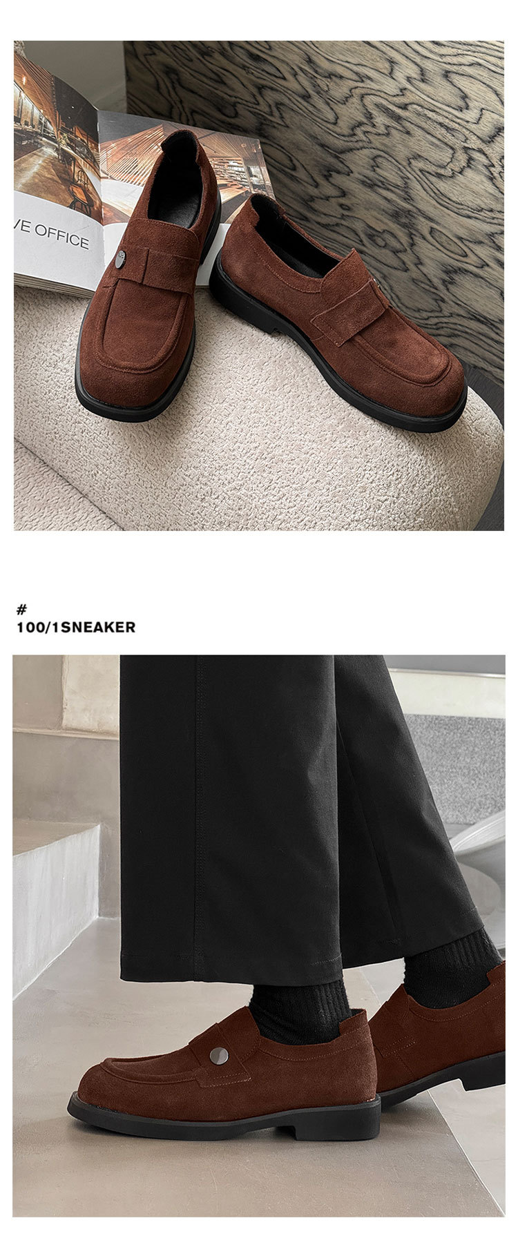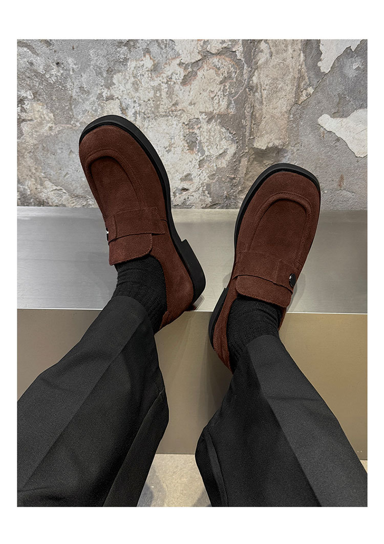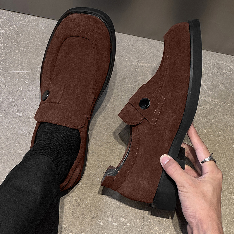 Коричневые лоферы в стиле ретро, мужские замшевые туфли без шнуровки, повседневная обувь 25537-J