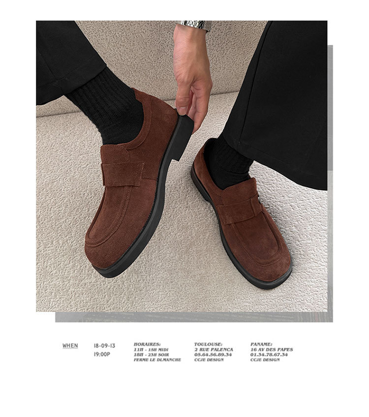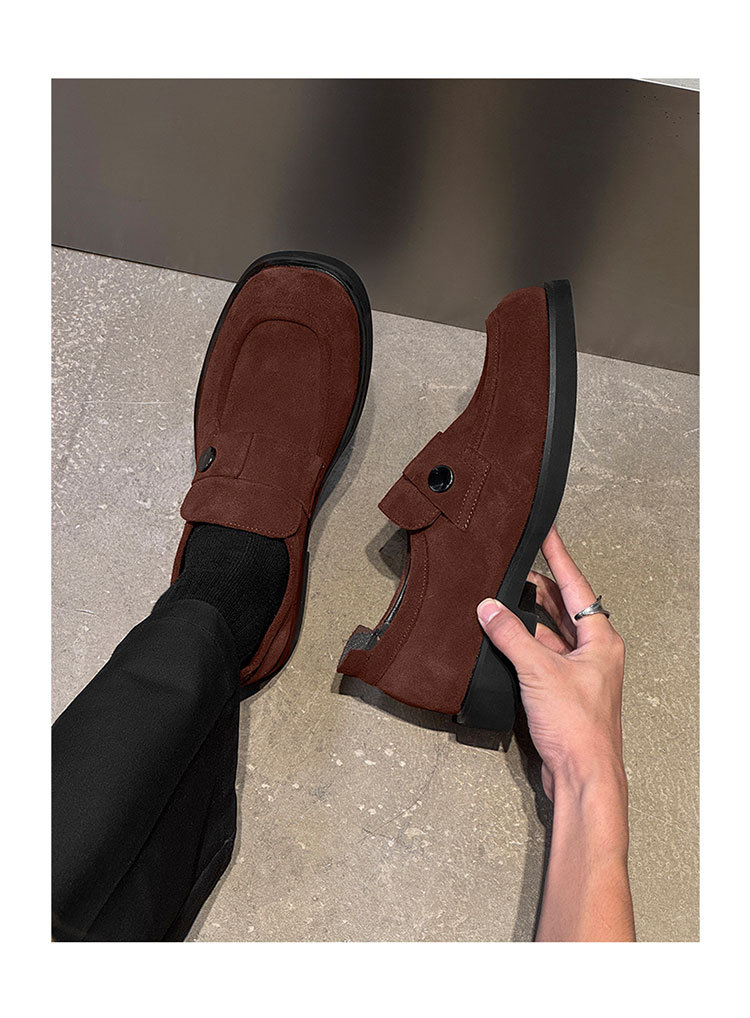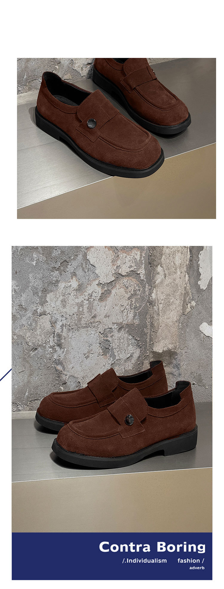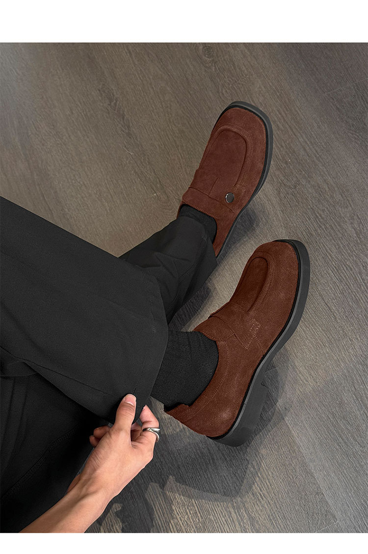 Коричневые лоферы в стиле ретро, мужские замшевые туфли без шнуровки, повседневная обувь 25537-J
