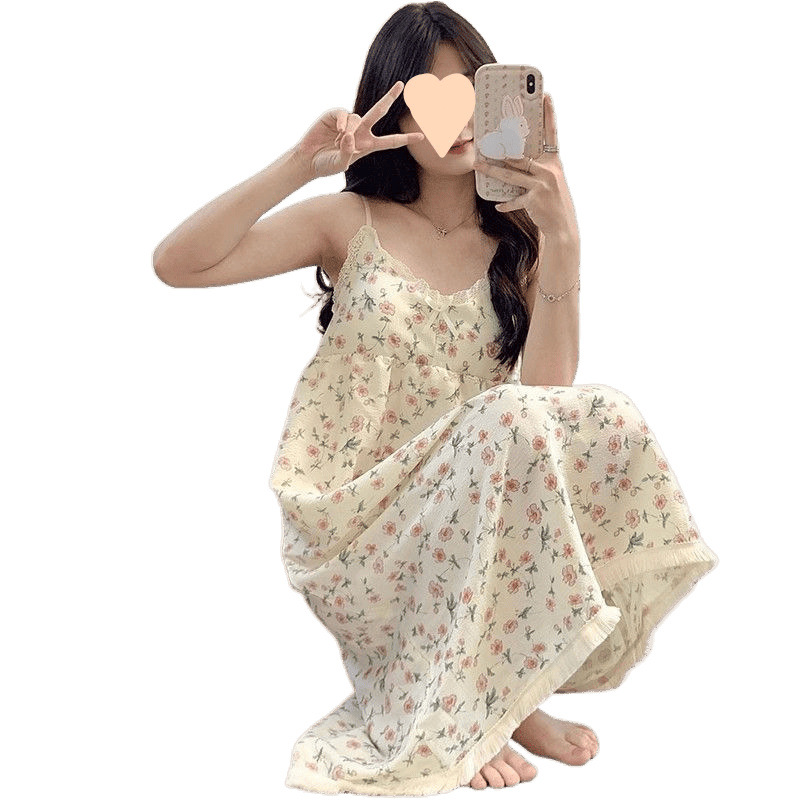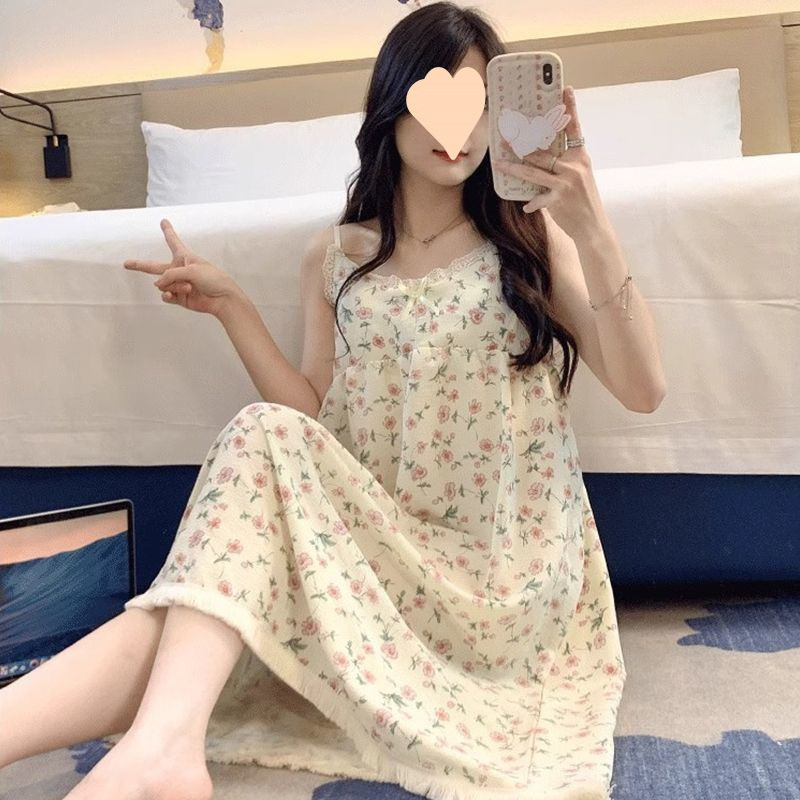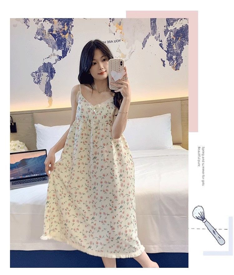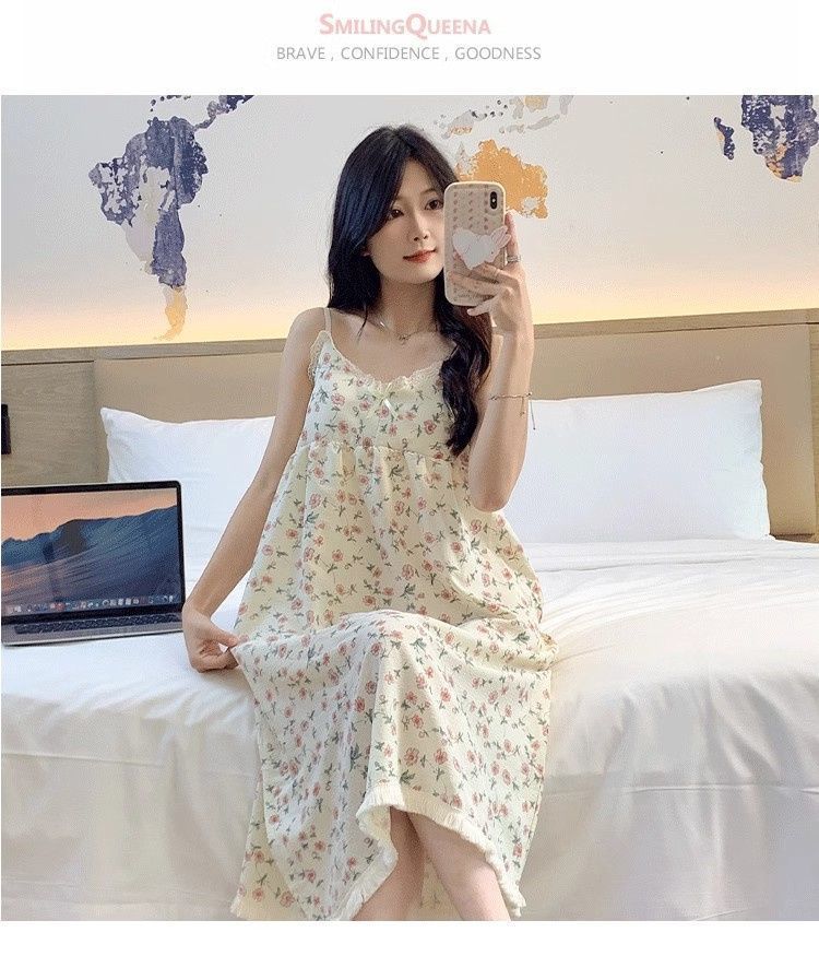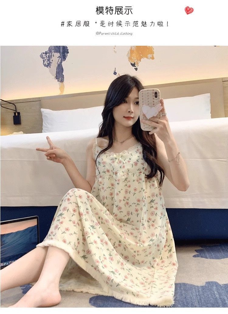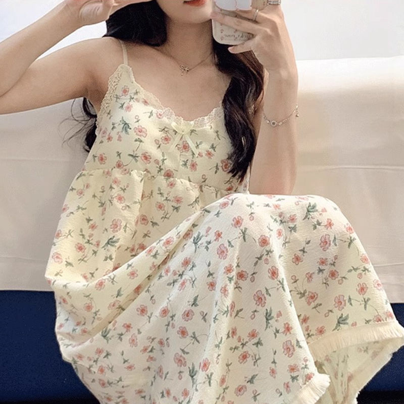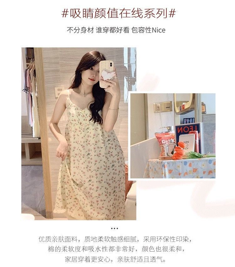 Летняя женская ночная рубашка на подтяжках с нагрудником, пижама с мультяшным принтом, милая и очаровательная модель для весны и осени, домашняя одежда, новый стиль