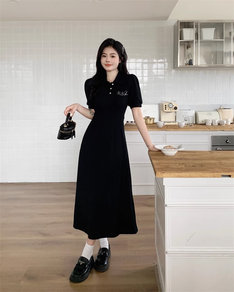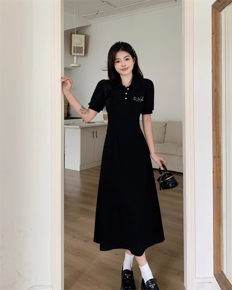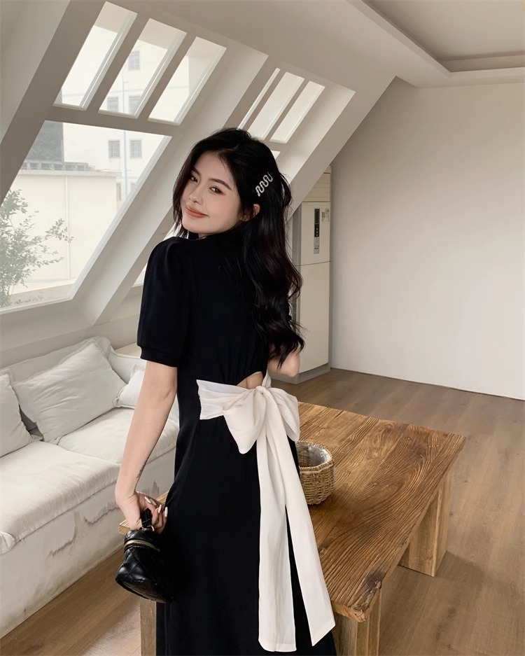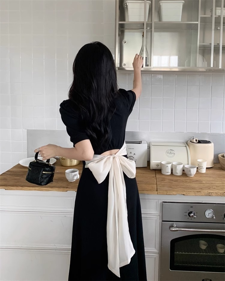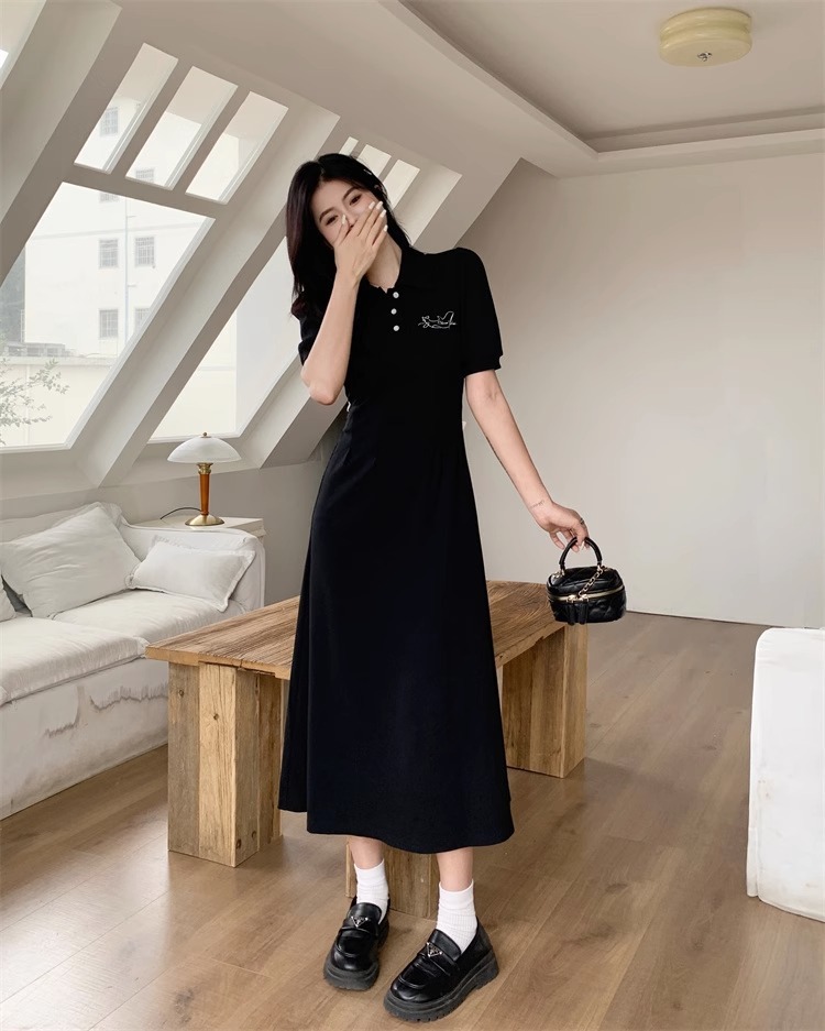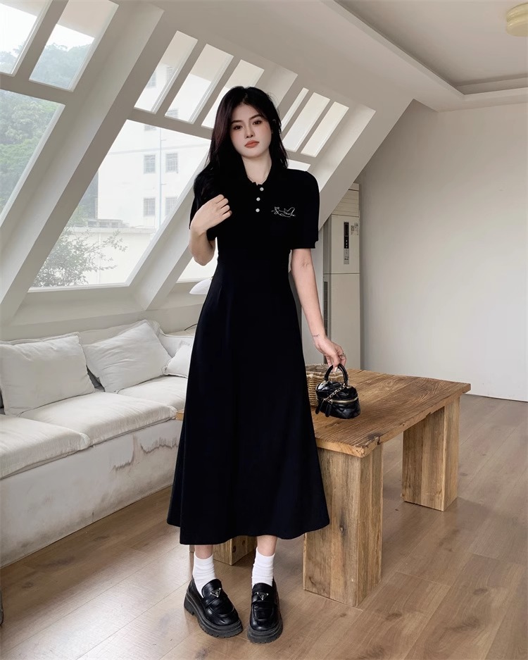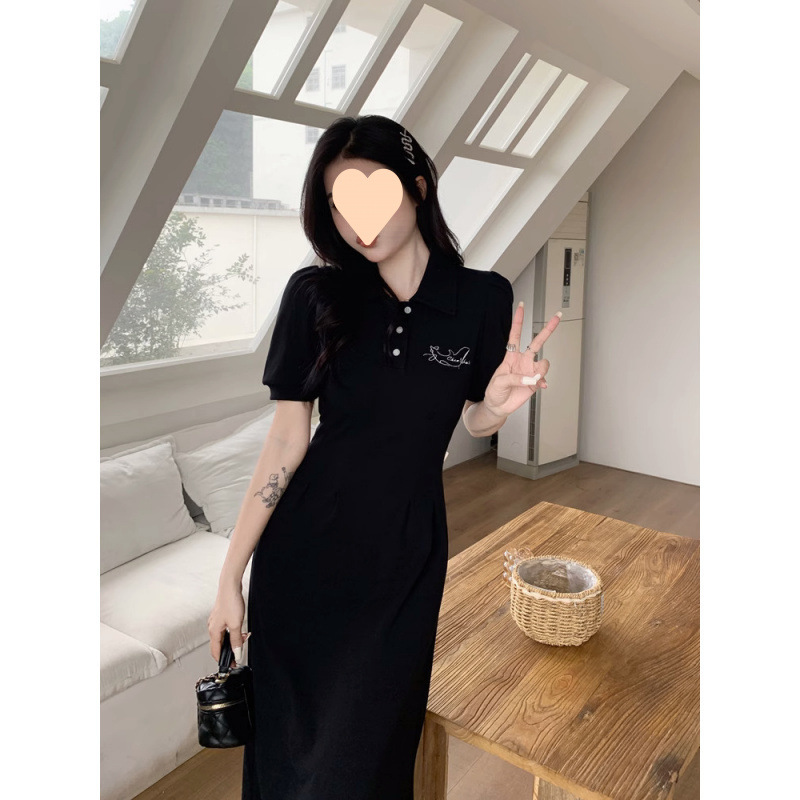 Платье-поло больших размеров для женщин летом, черная длинная юбка с бантом в стиле Хепберн, утягивающая талию, черная длинная юбка