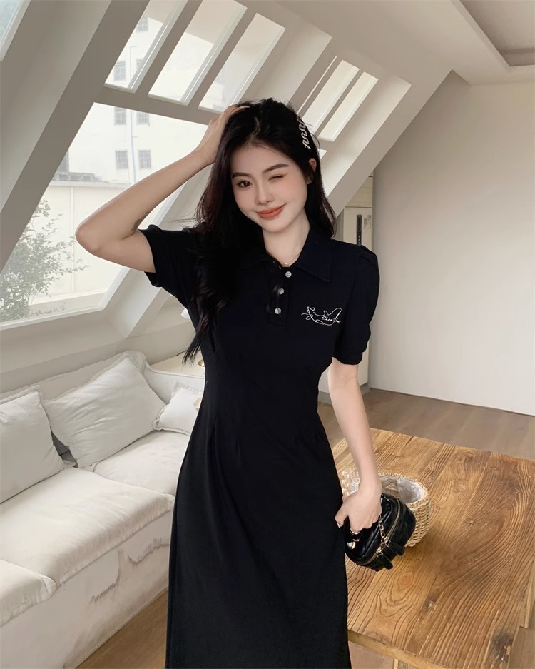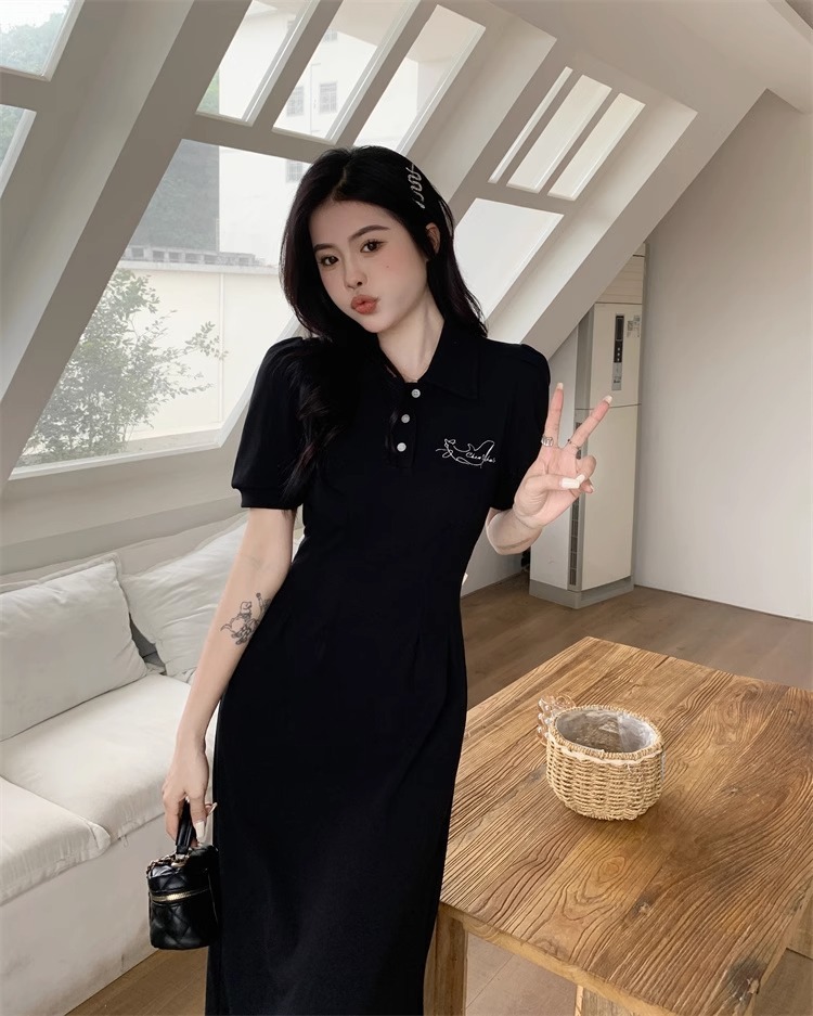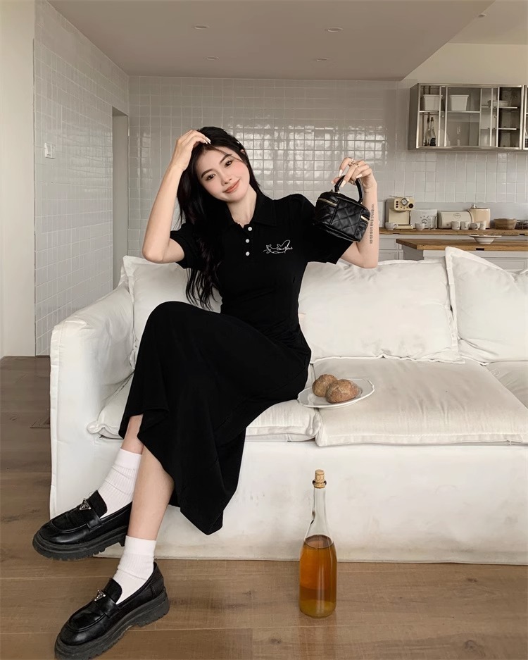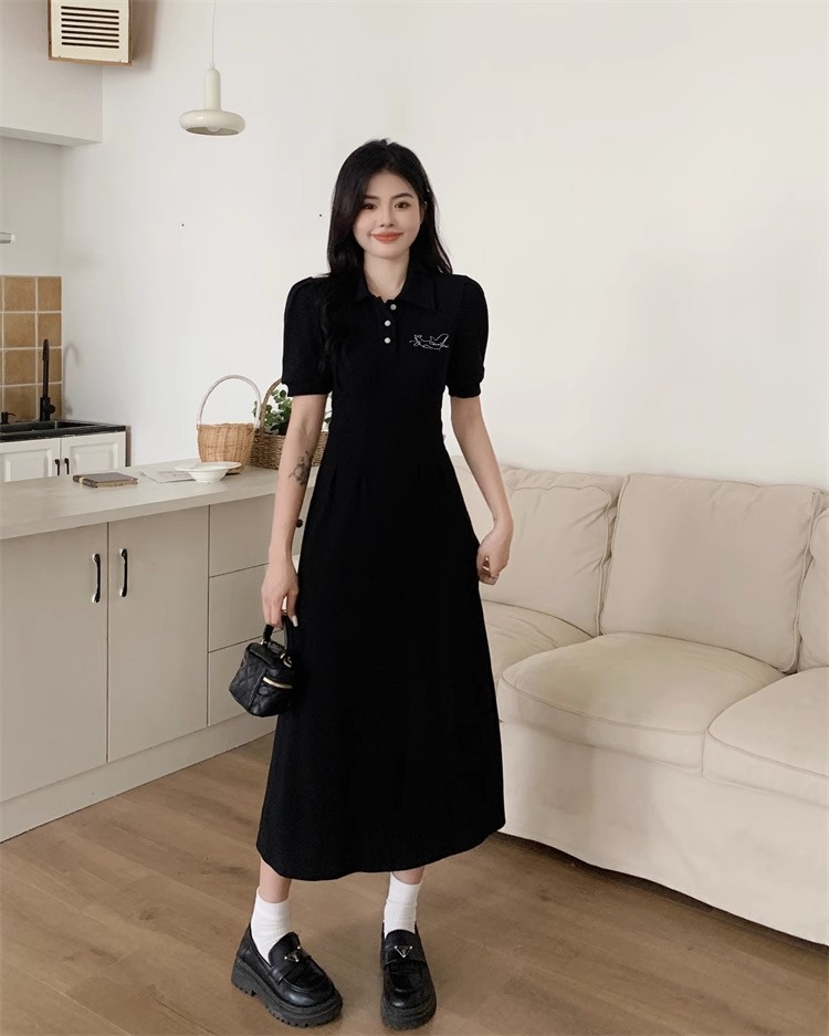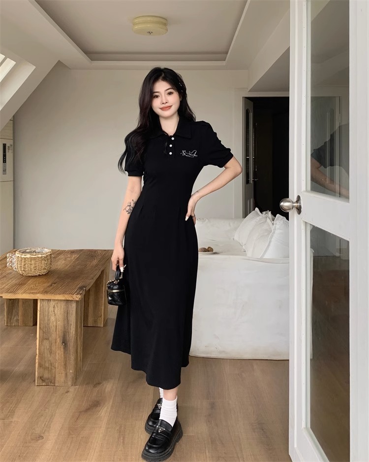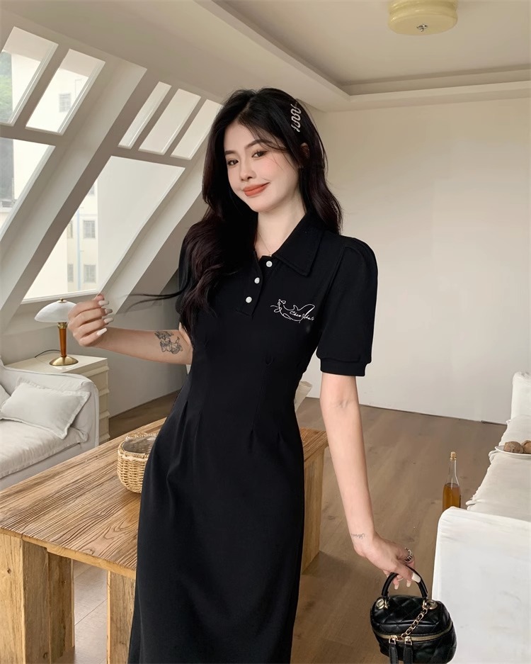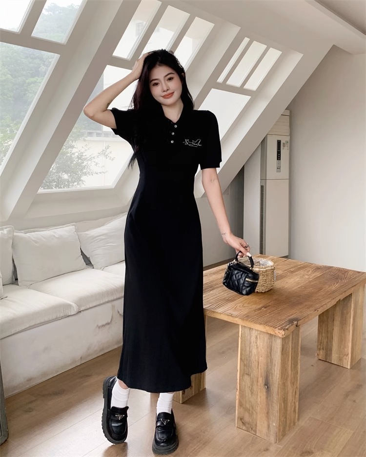 Платье-поло больших размеров для женщин летом, черная длинная юбка с бантом в стиле Хепберн, утягивающая талию, черная длинная юбка