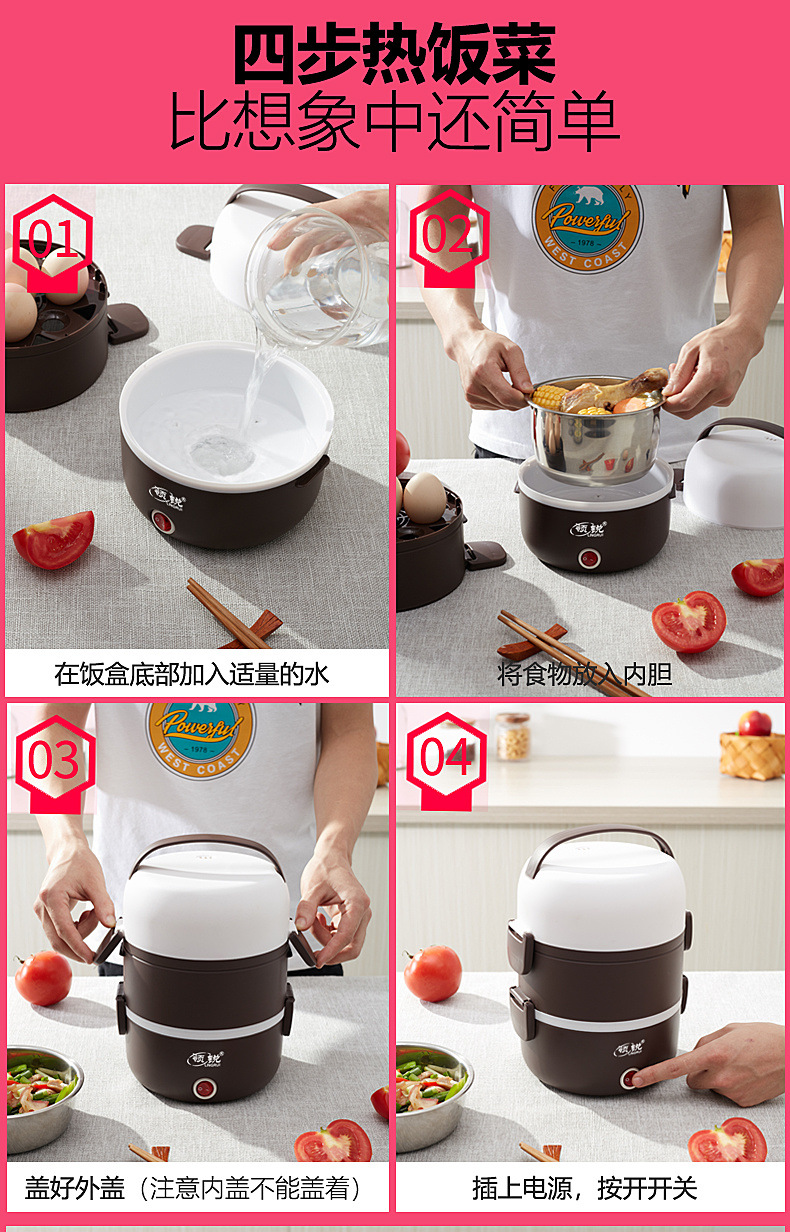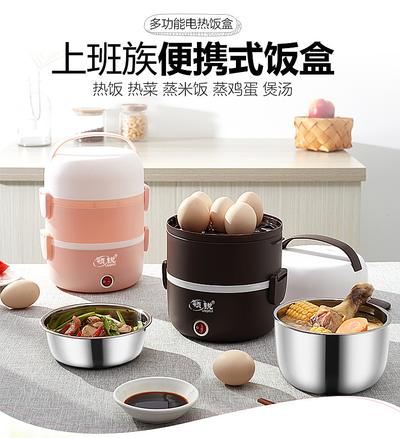 Электрический ланч-бокс можно подключить для подогрева и поддержания тепла, приготовления на пару и приготовления пищи с помощью рисоварки, экспорт цепочки поставок для небольших офисных работников 2
