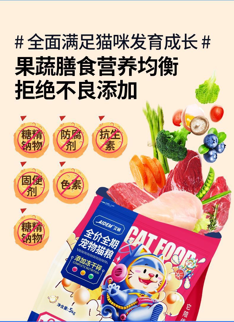 Aitong 0.5kg Pure Grain Полная формула для котят и взрослых кошек, высокобелковое питание для бездомных кошек 5kg