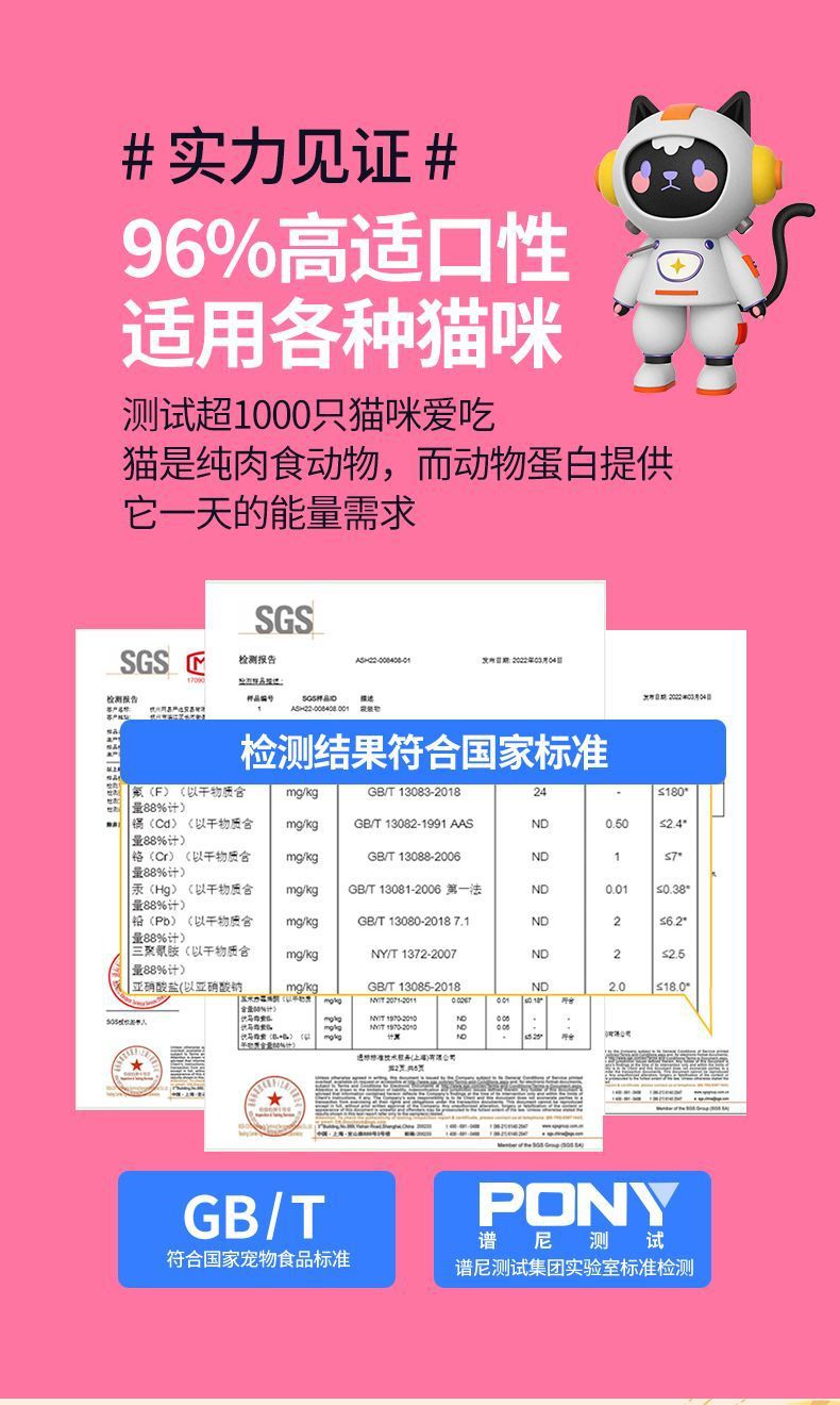 Двойная комбинация [частицы тунца + питательные частицы]; Ледяная трикотажная одежда [яичный желток, курица + тунец] улучшает выборчивость в еде; Леденящие шесть штук [яичный желток, морские водоросли + 4 вида мяса] удваивают питательность.