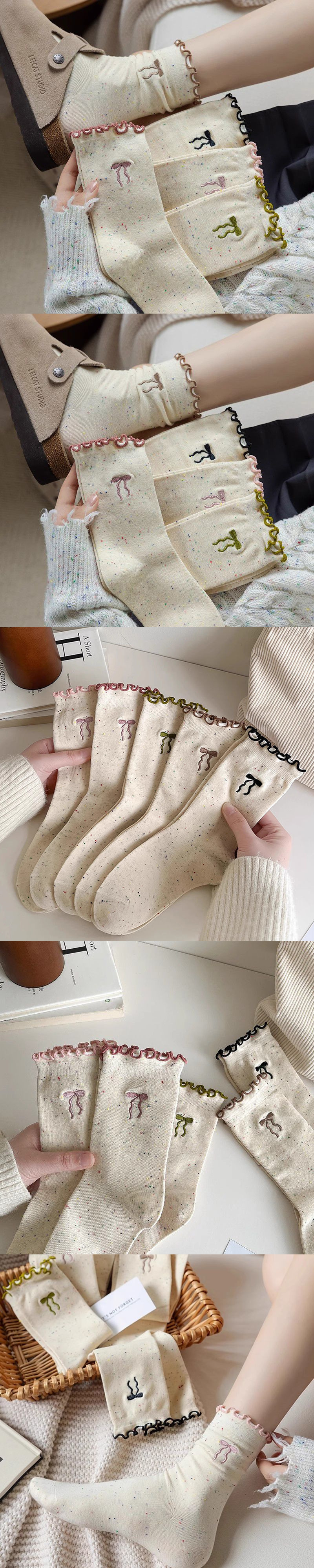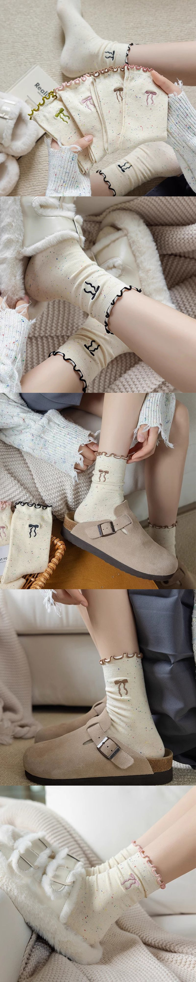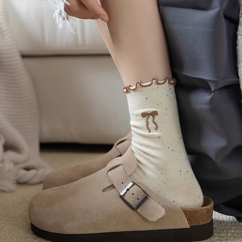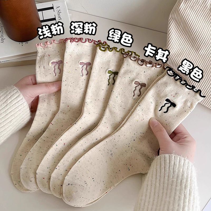 Женские носки с рюшами, весенне-осенний стиль, носки до середины икры с бантом, простые и универсальные студенческие носки.