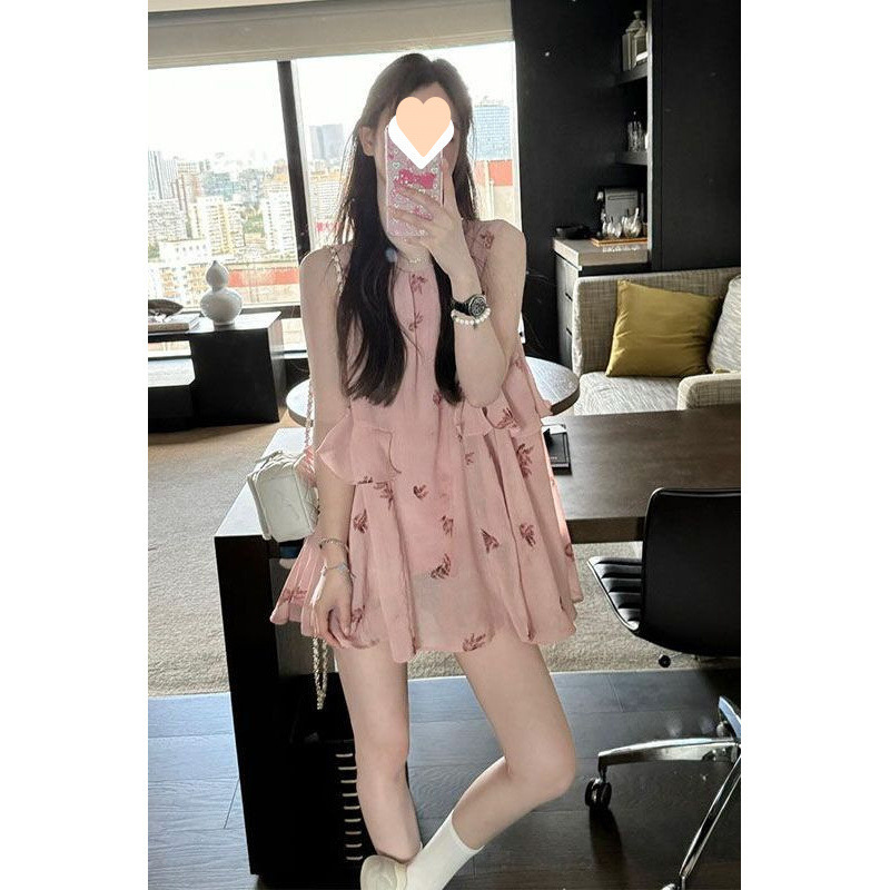 Милый и пряный ленивый стиль, атмосфера милой девушки, модное платье на подтяжках с принтом, женское летнее новое платье первой любви, темпераментная сказочная юбка