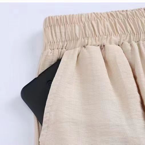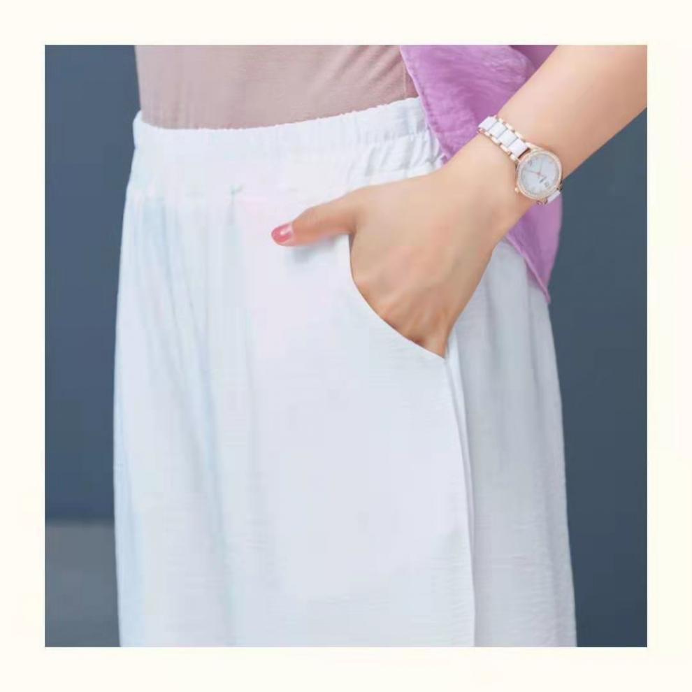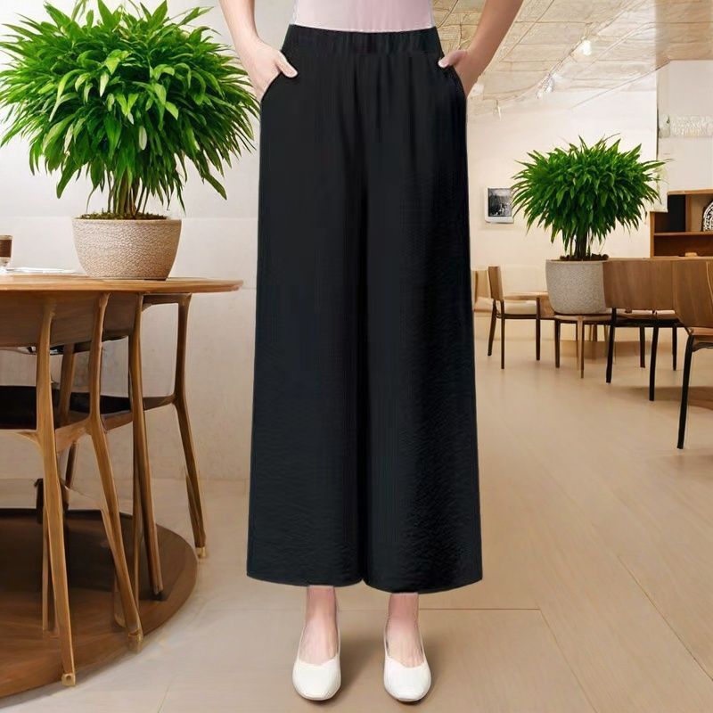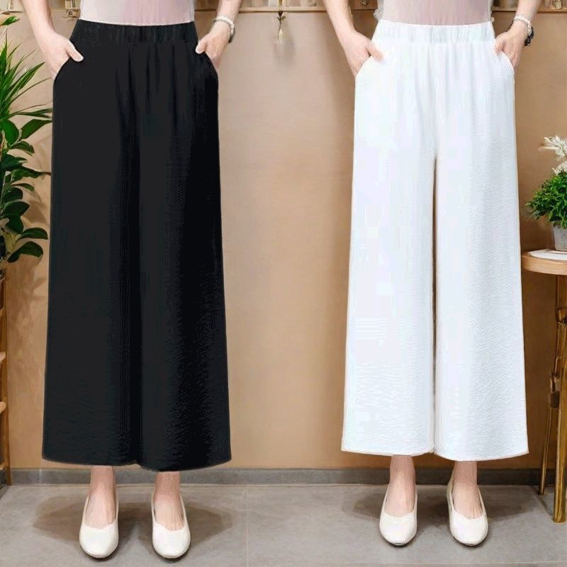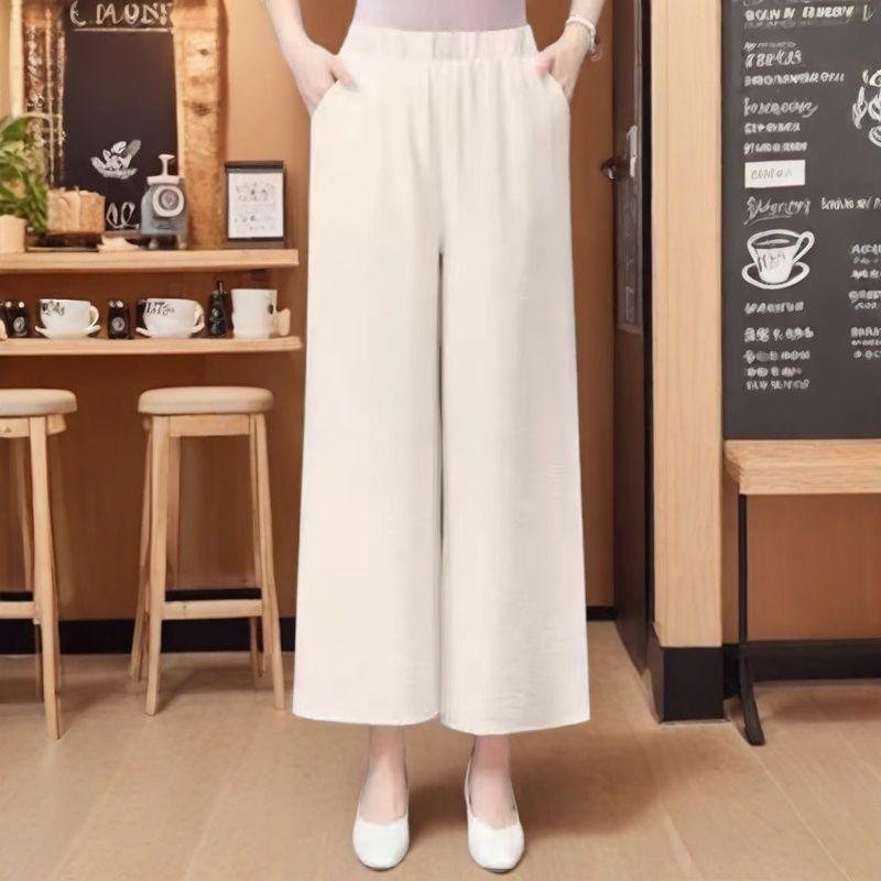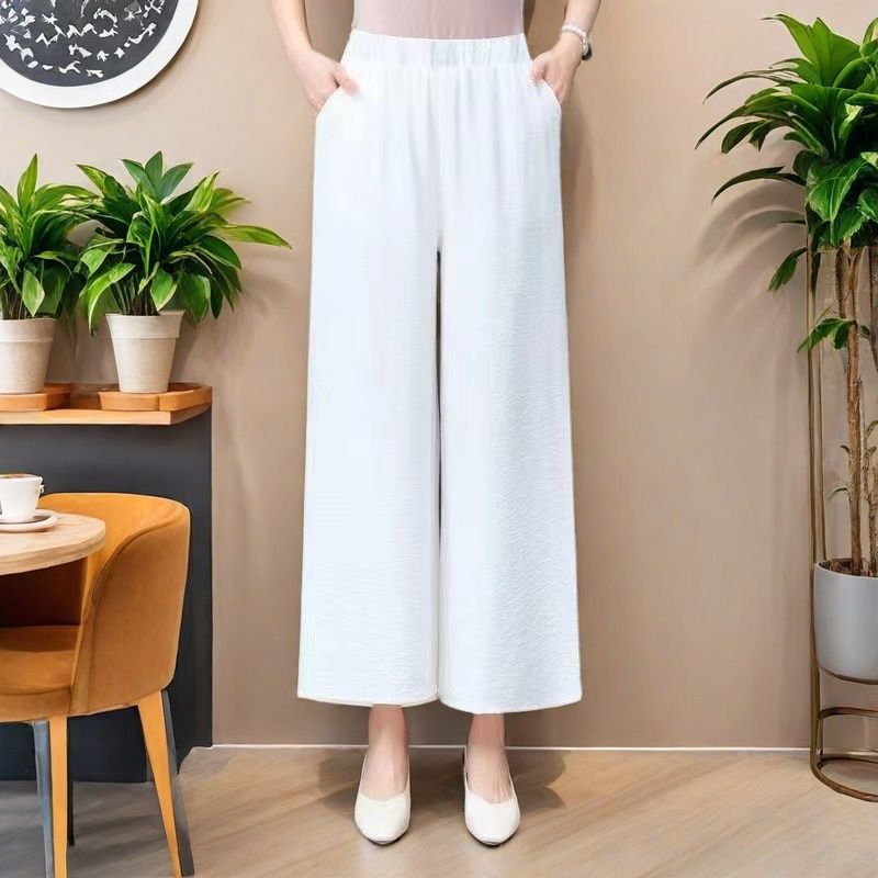 Широкие брюки из льна и хлопка Ice Silk для женщин, укороченные, лето 2025, тонкие свободные утягивающие льняные брюки с высокой талией и эластичной резинкой на талии