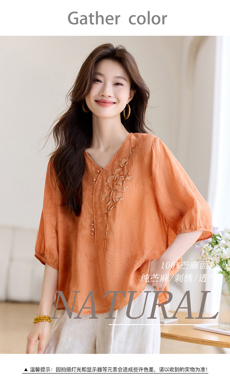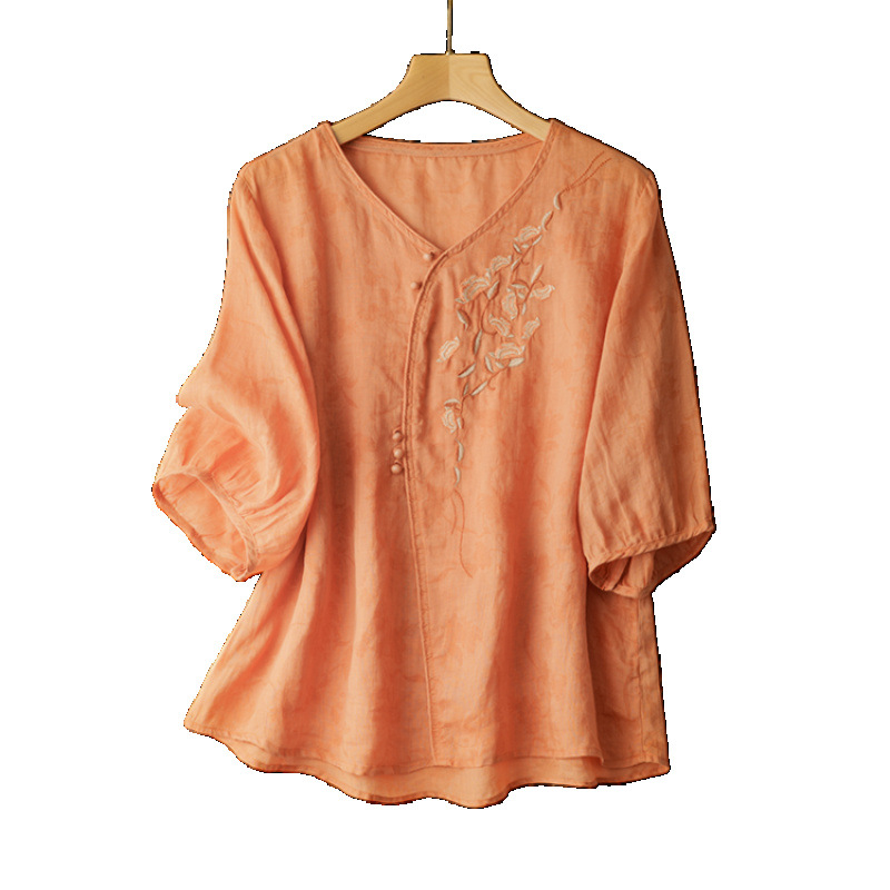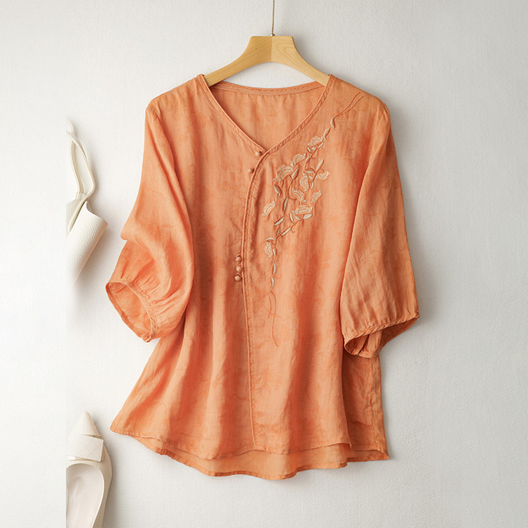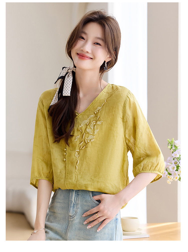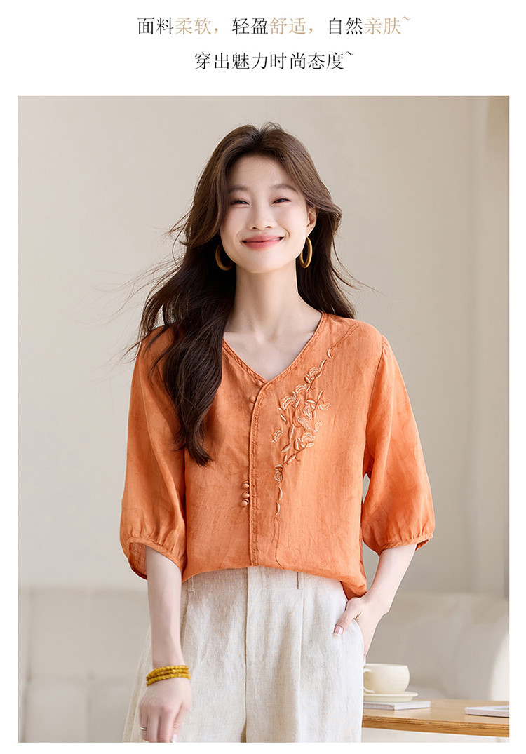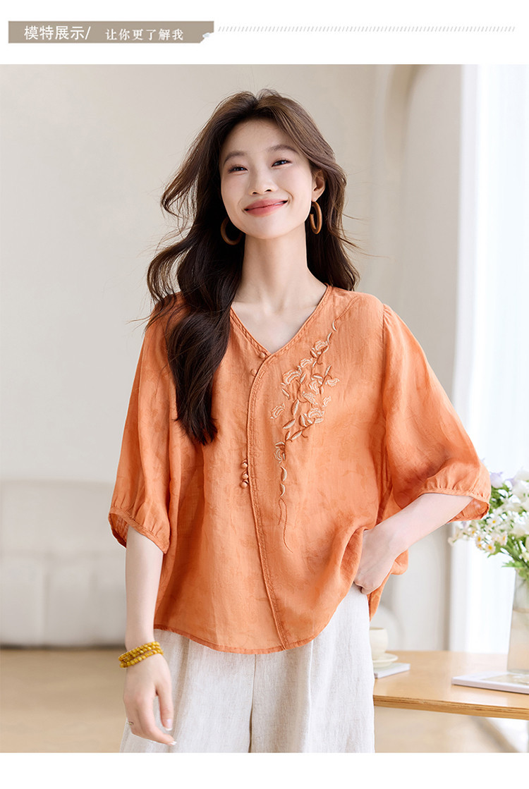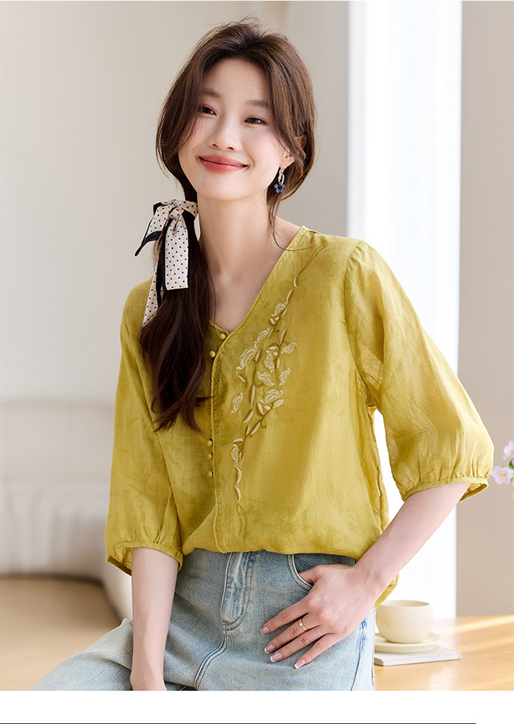Женская летняя рубашка с V-образным вырезом и короткими рукавами, новая модель 2025 года, свободного кроя в ретро-стиле, в западном стиле.