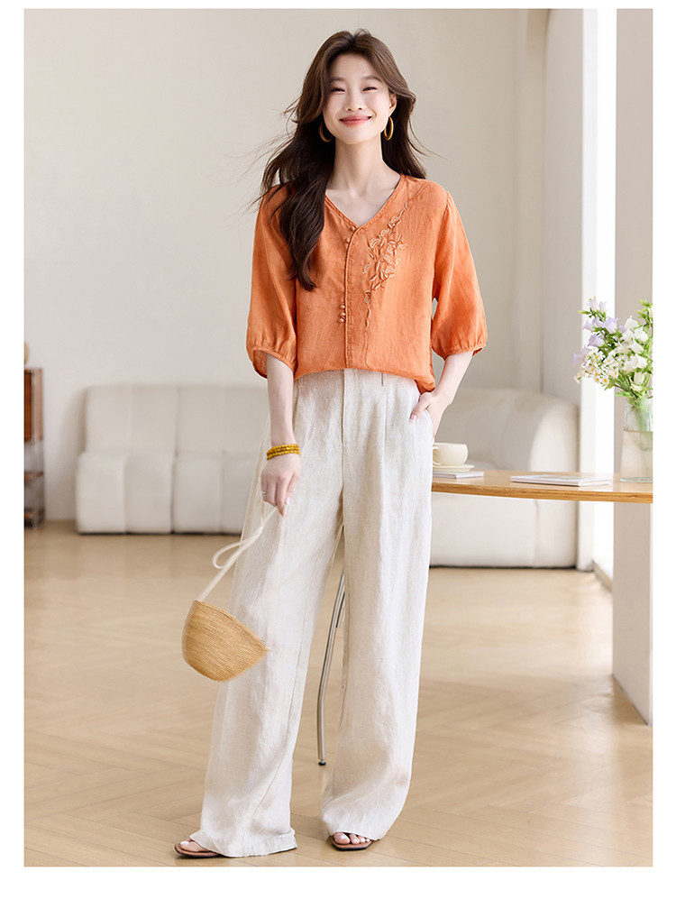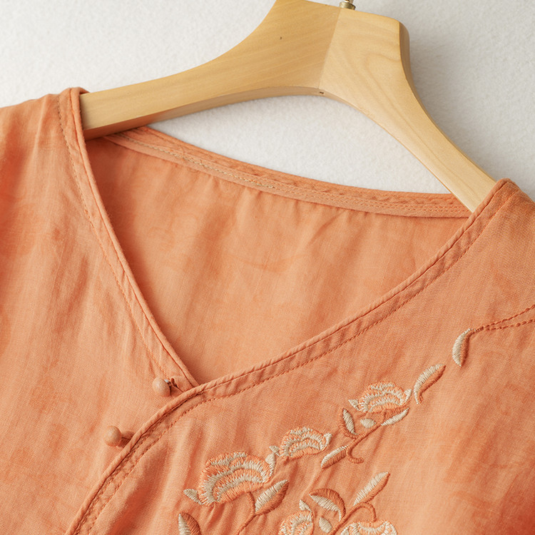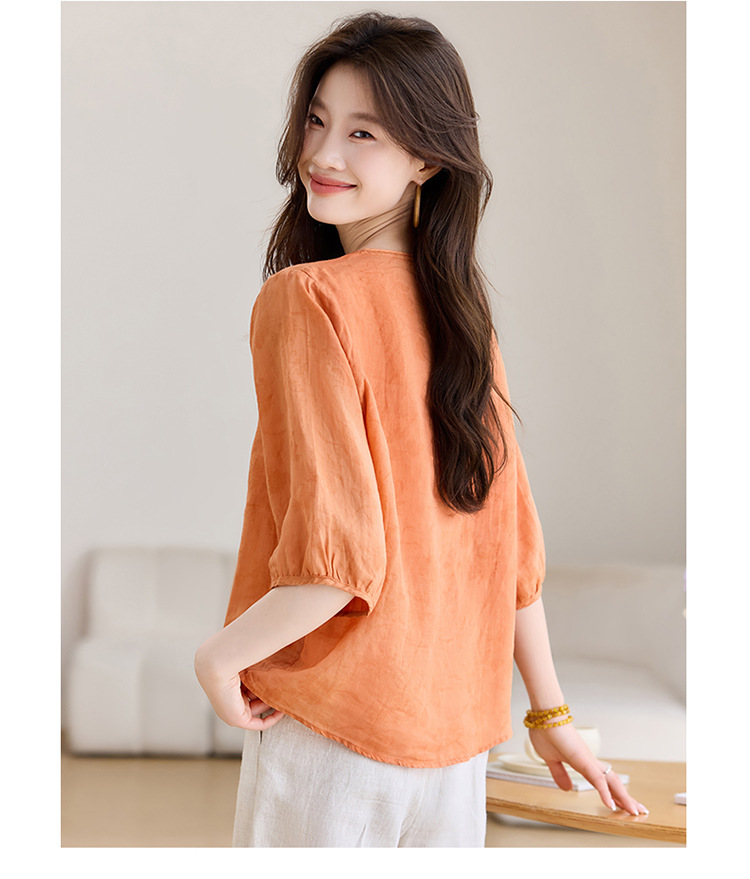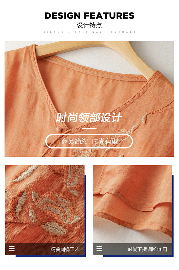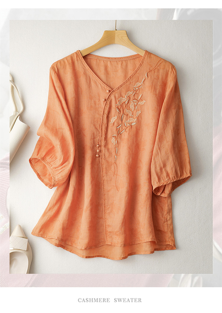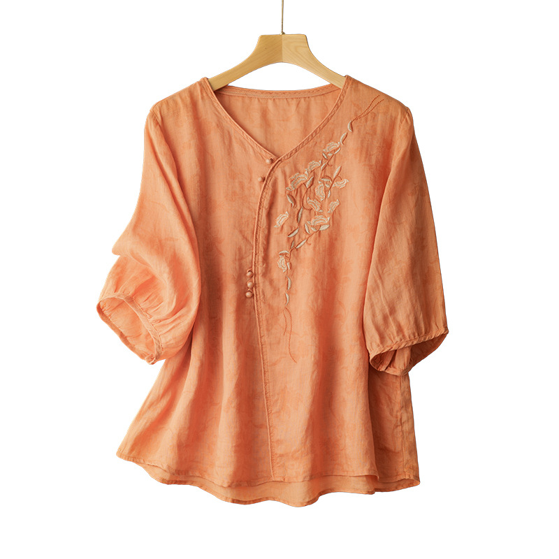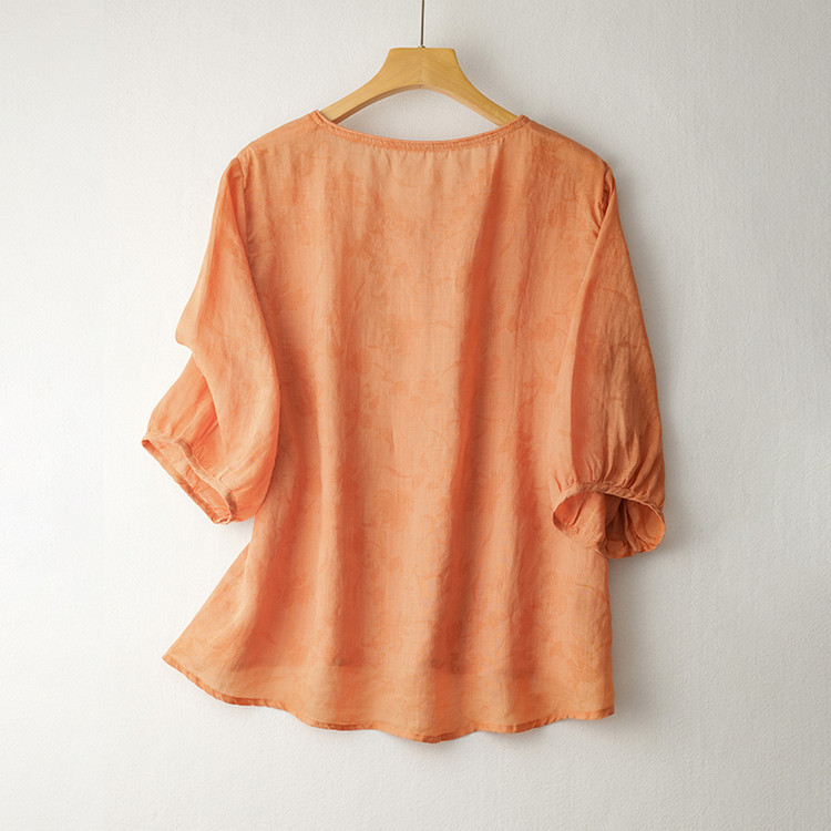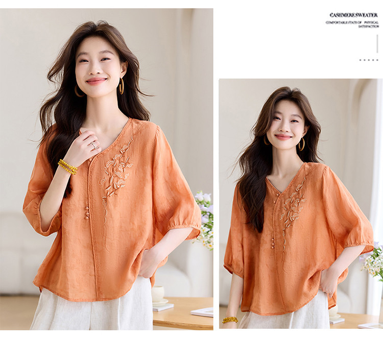 Женская летняя рубашка с V-образным вырезом и короткими рукавами, новая модель 2025 года, свободного кроя в ретро-стиле, в западном стиле.