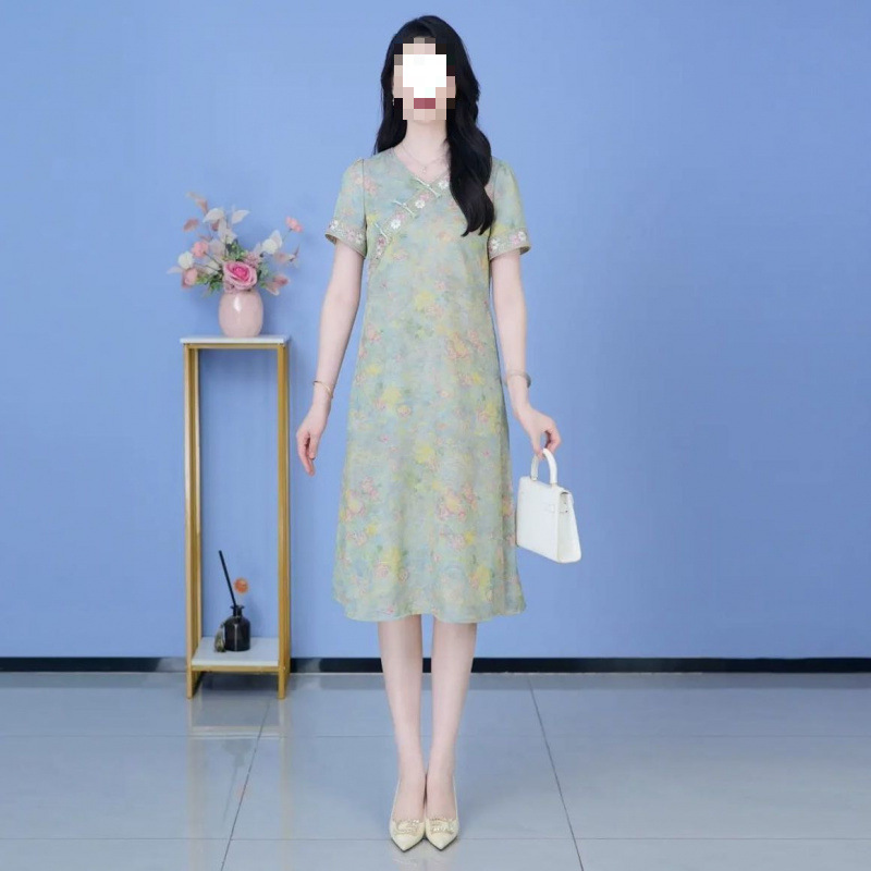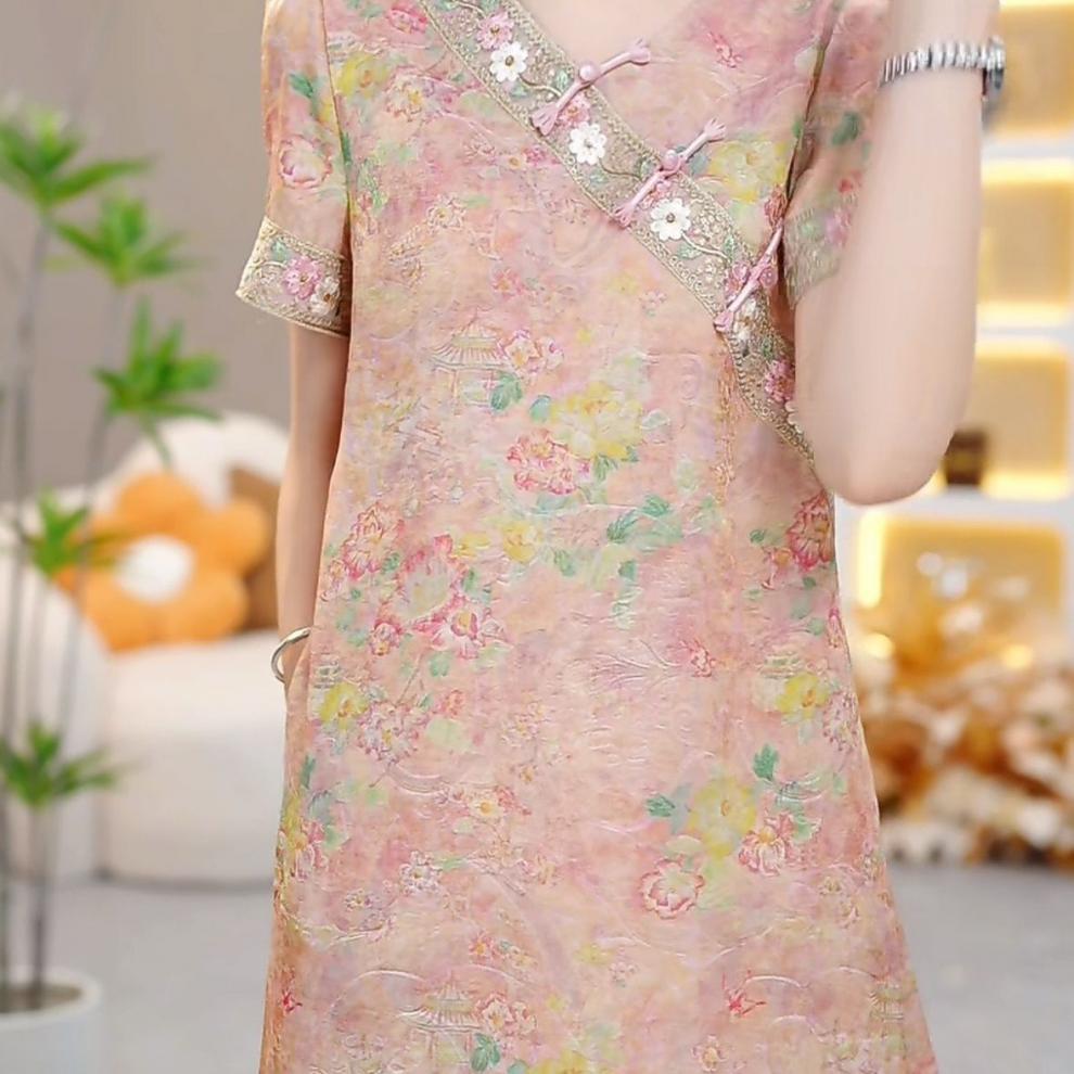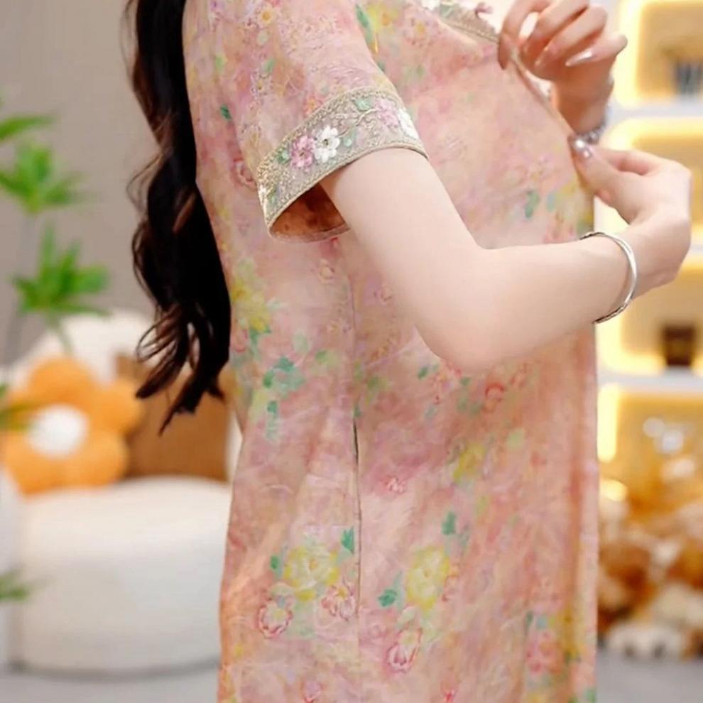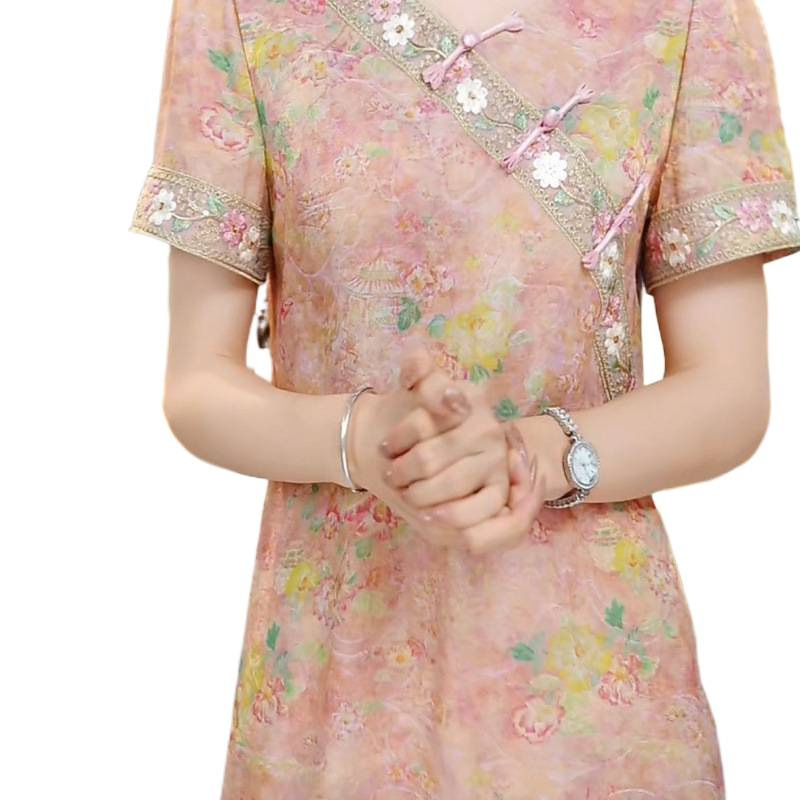 Классическое изысканное французское платье в китайском стиле, женское летнее новое свободное утягивающее платье средней длины 2025 года