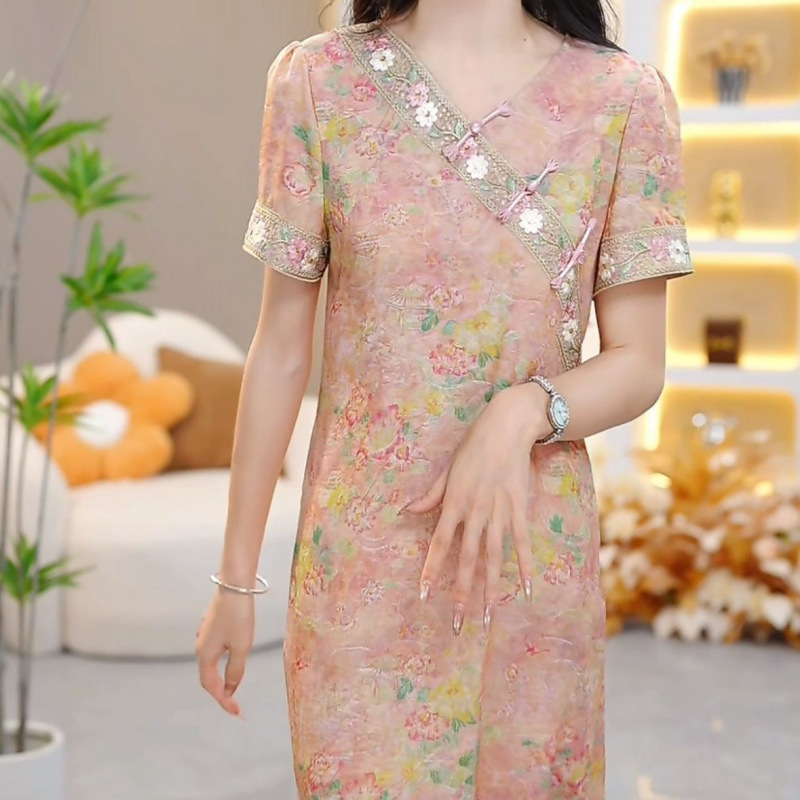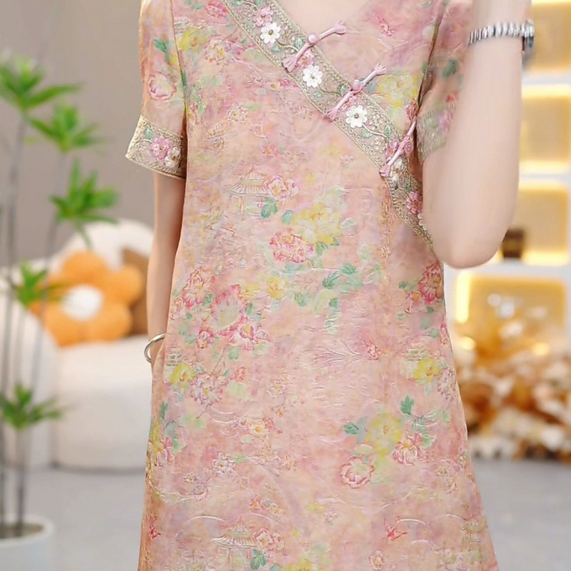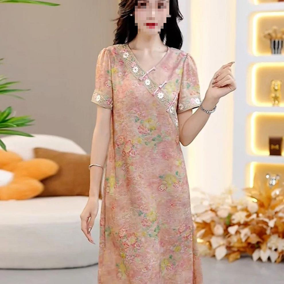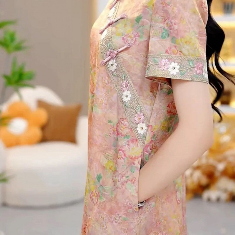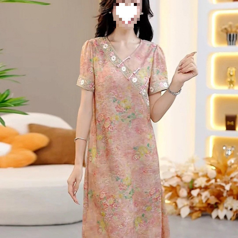 Классическое изысканное французское платье в китайском стиле, женское летнее новое свободное утягивающее платье средней длины 2025 года