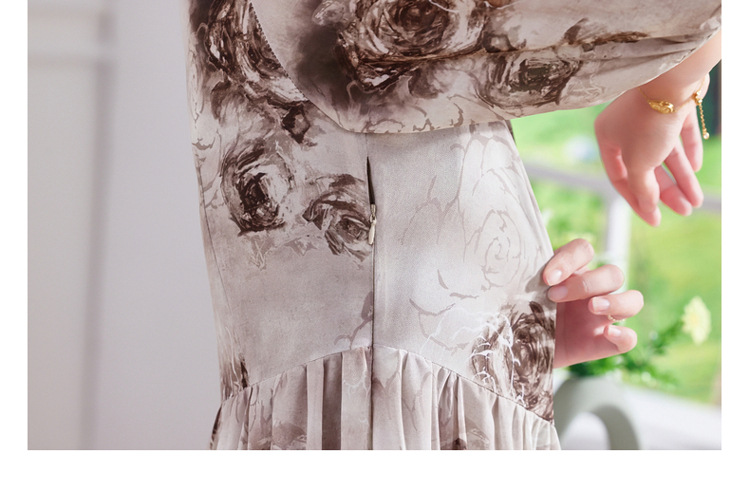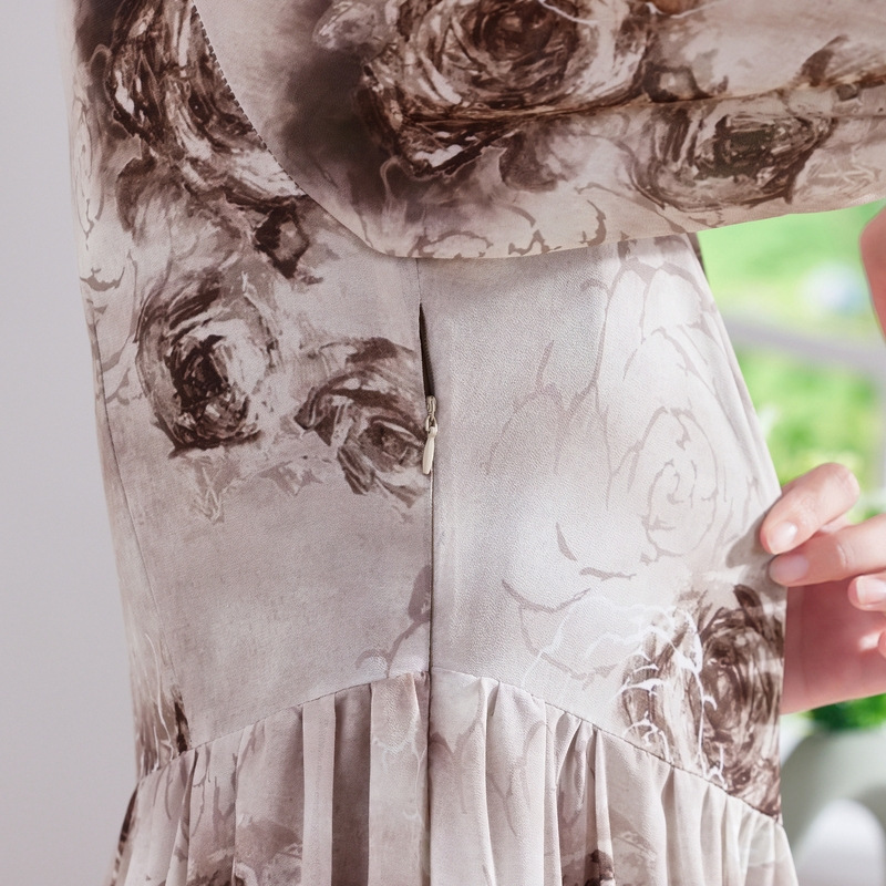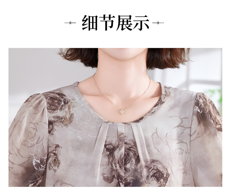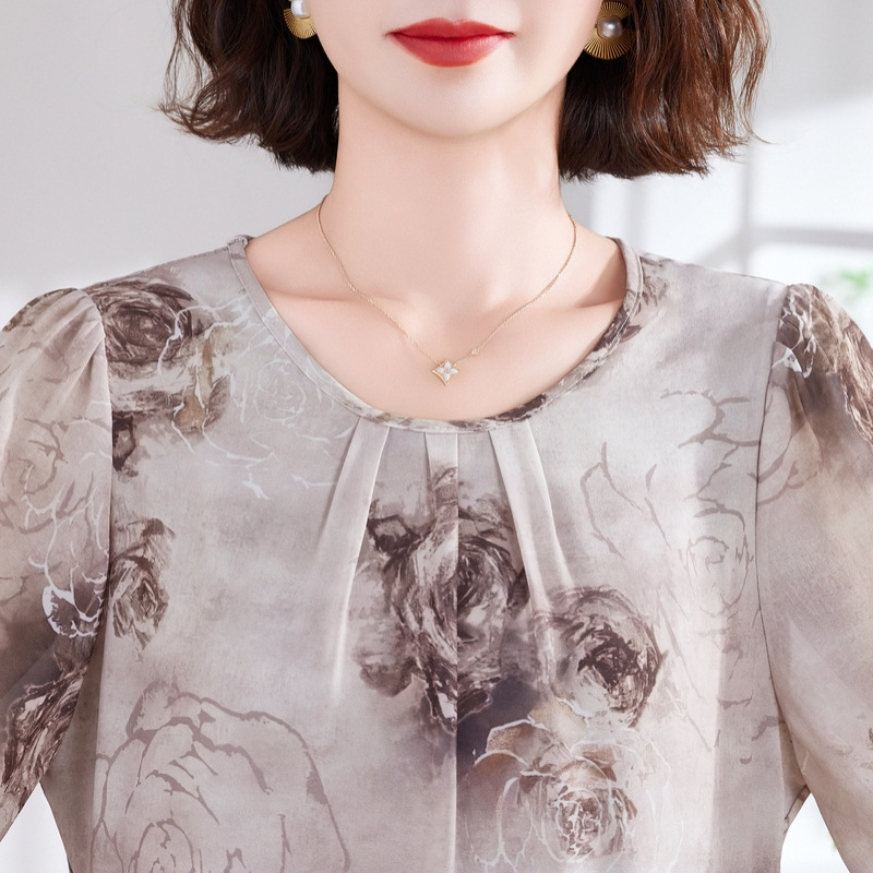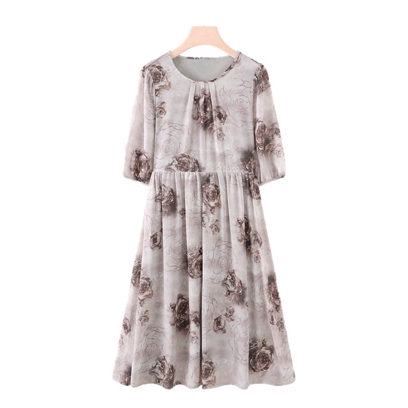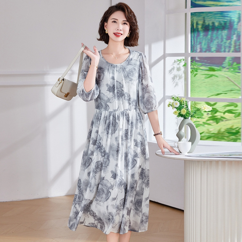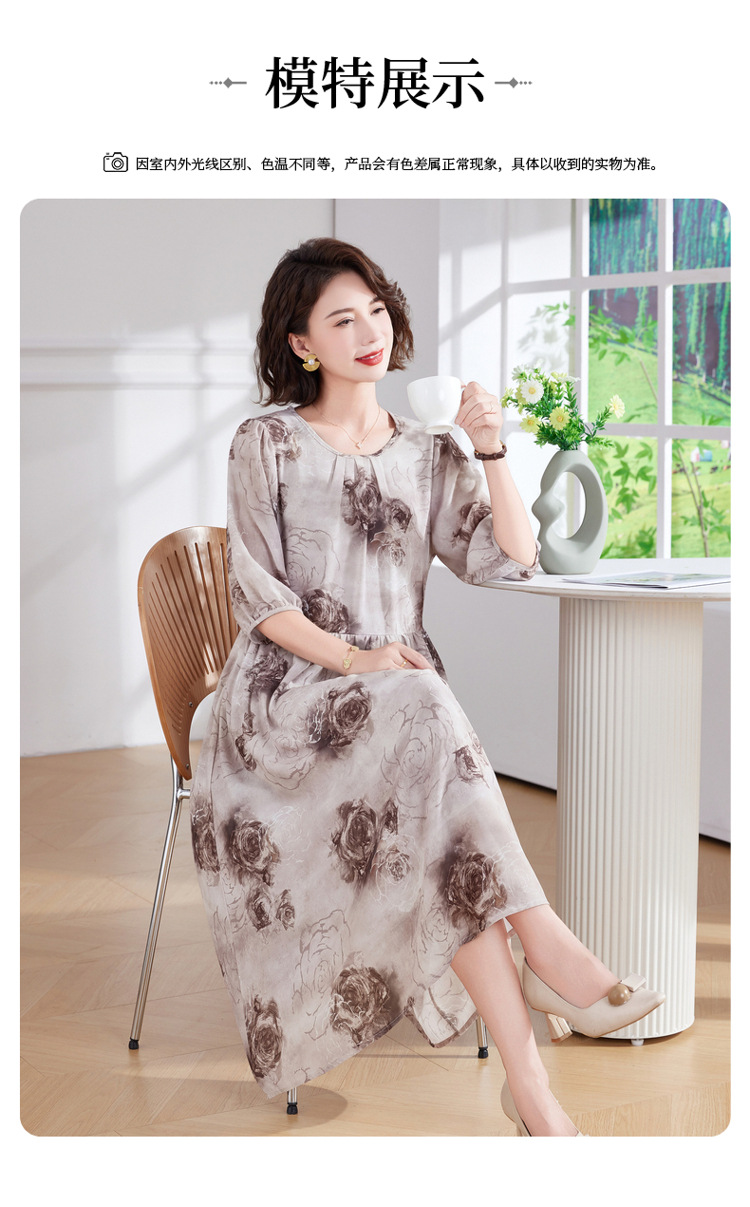 Платье с принтом для женщин 2025, новый стиль лета, элегантное платье для мам среднего и старшего возраста с завышенной талией, V-образным вырезом и юбкой средней длины.