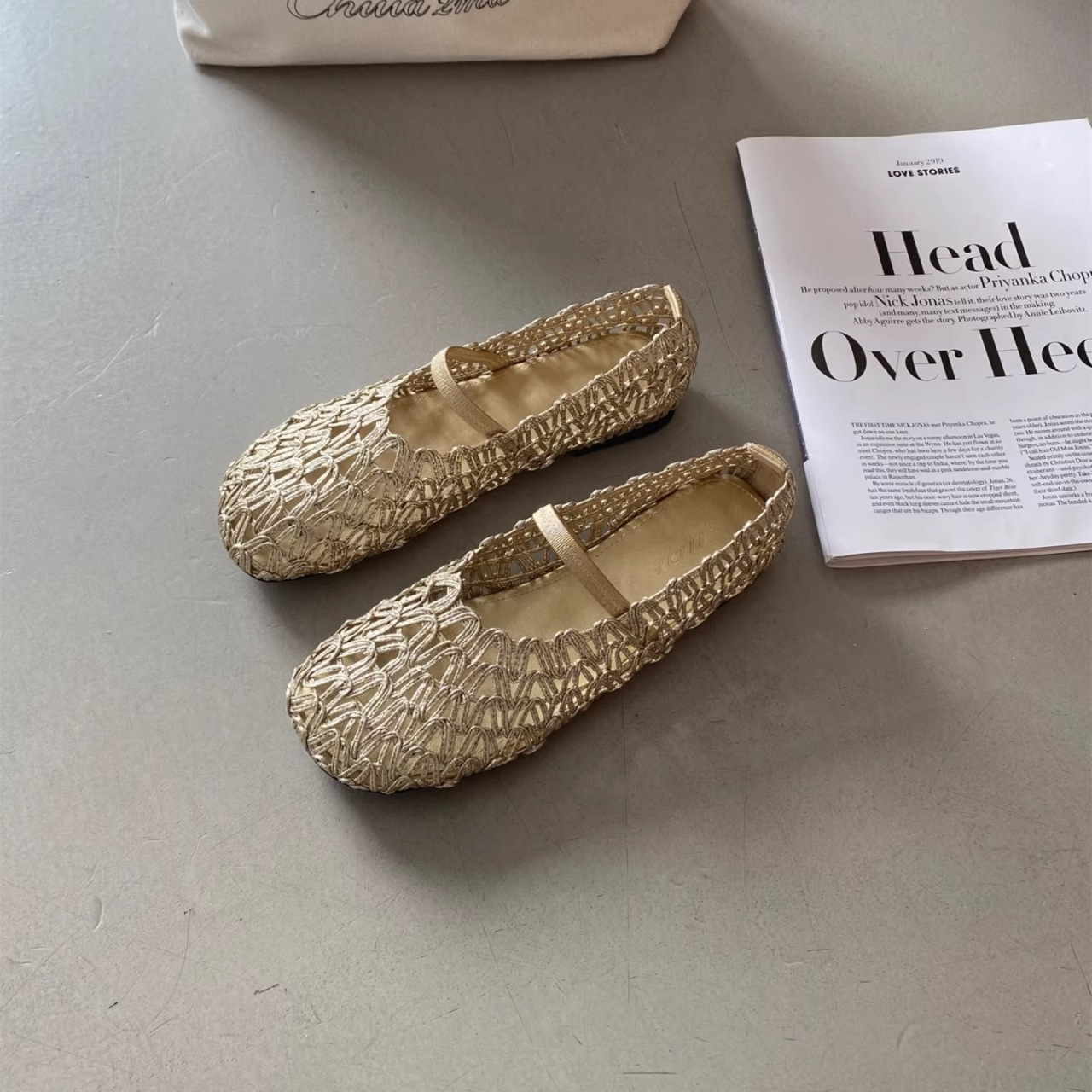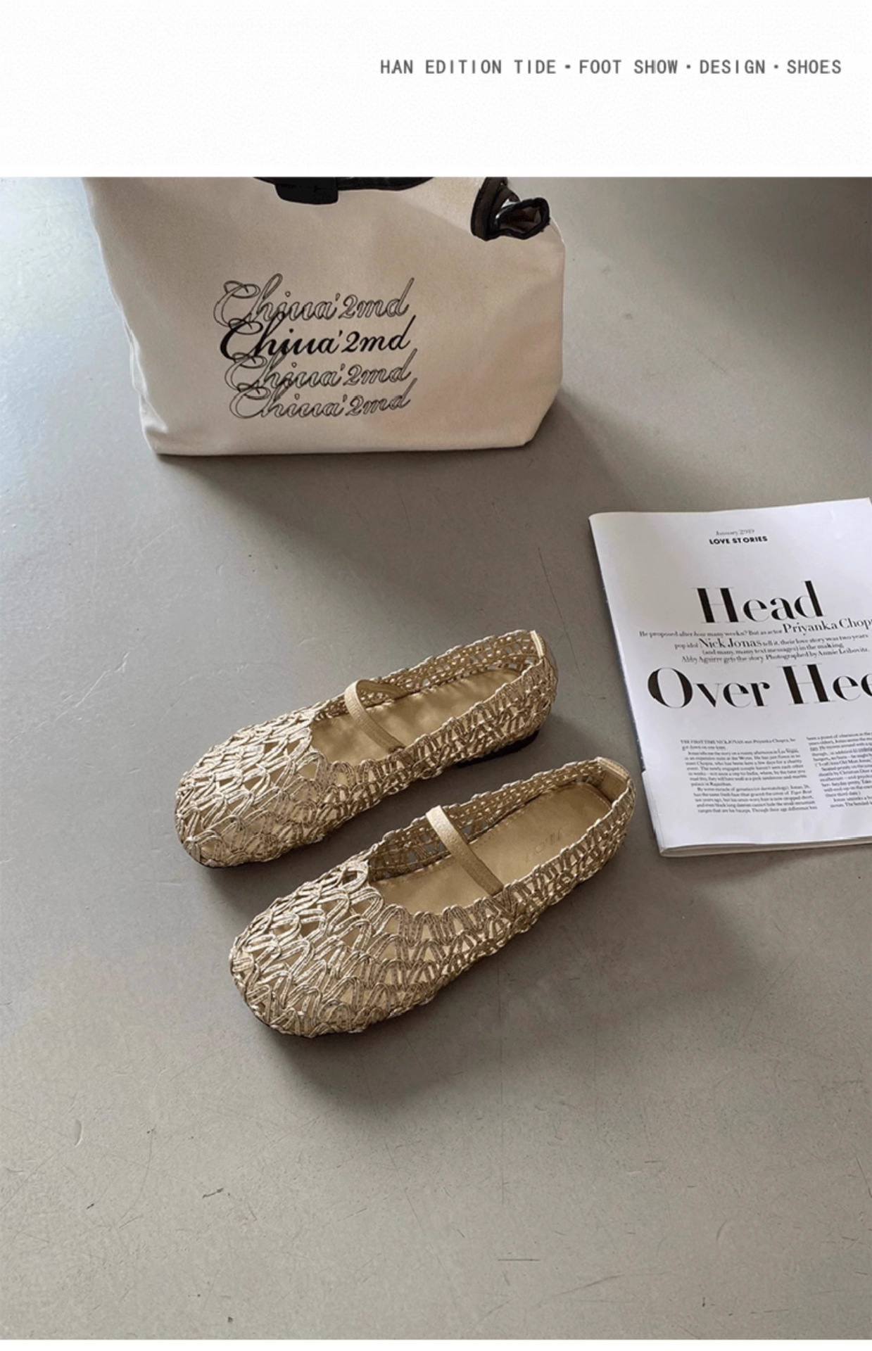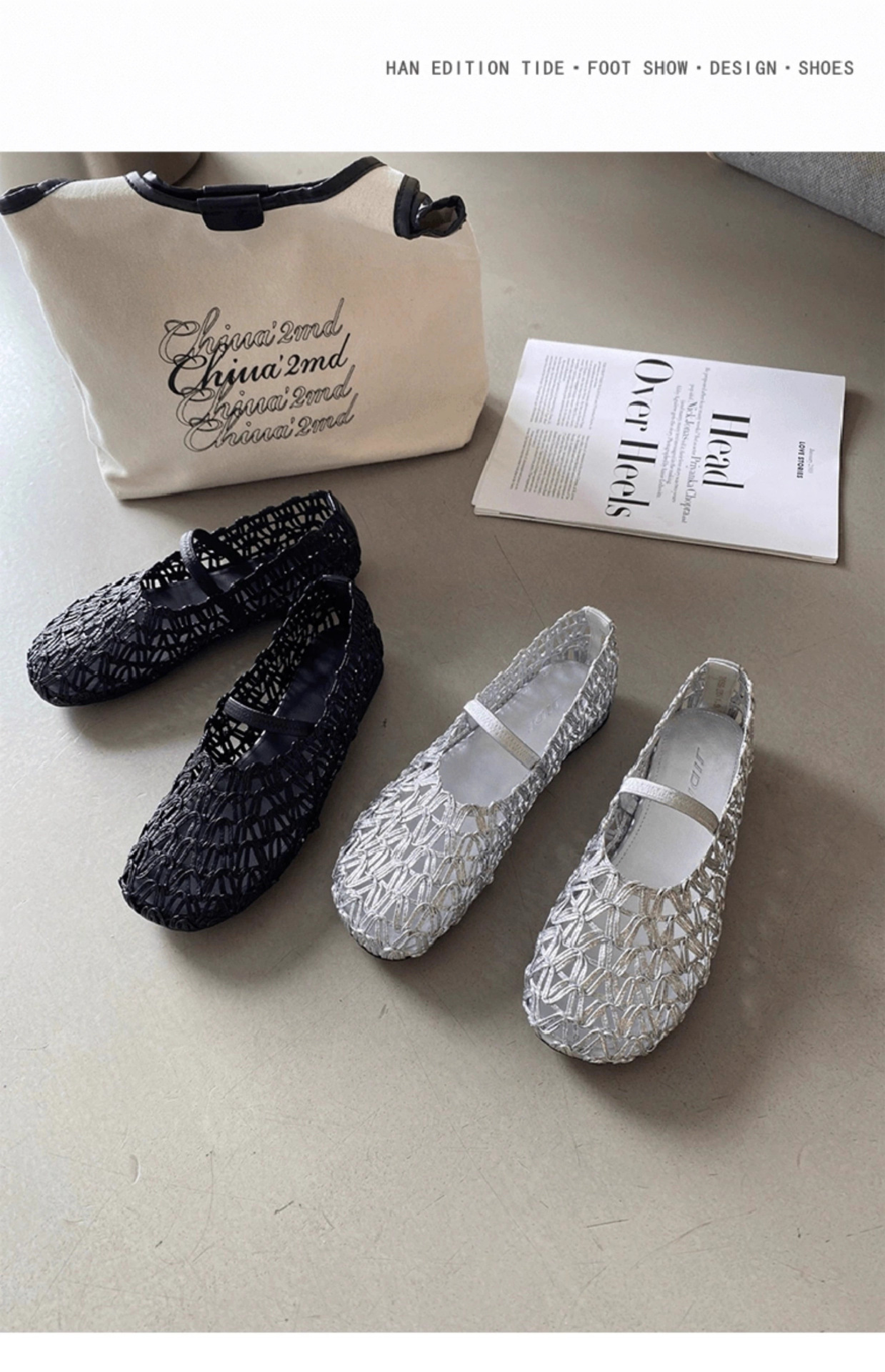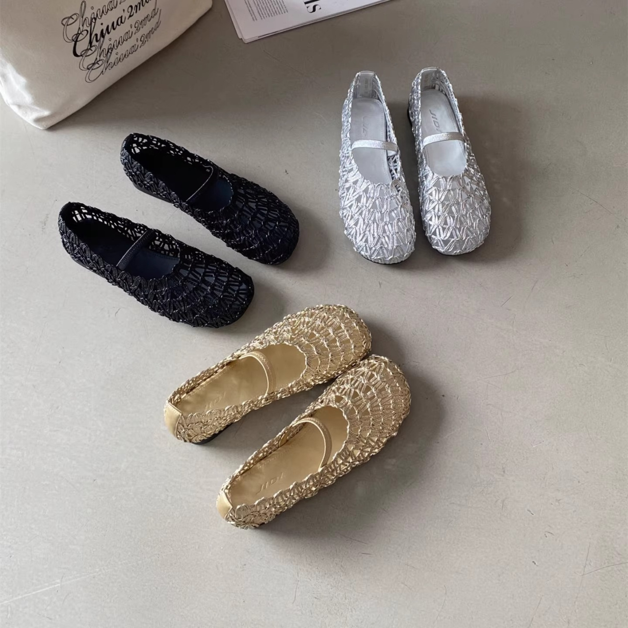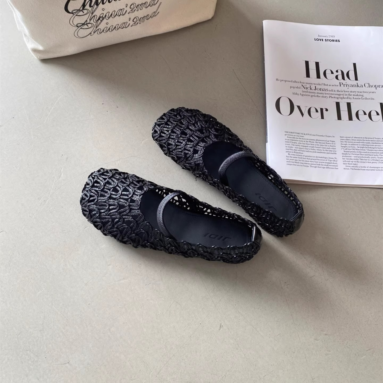 Женские туфли-лодочки в стиле ретро, французский дизайн, плетеные, полупрозрачные, на плоской подошве, с одним ремешком, модель Мэри Джейн, новинка 2025 года, универсальные, элегантные.