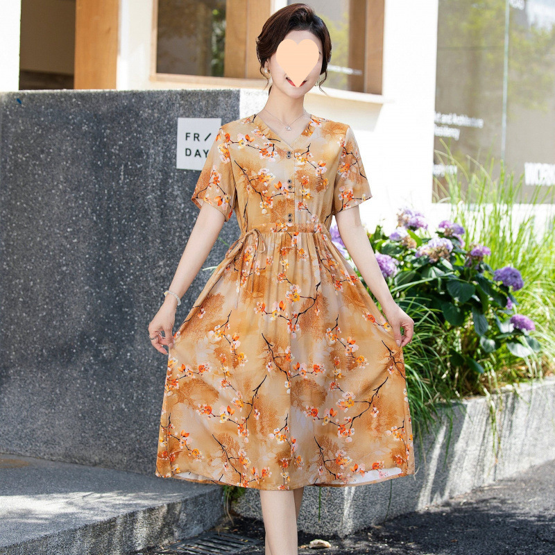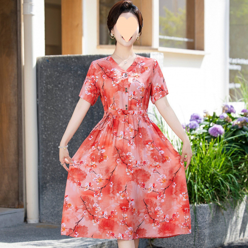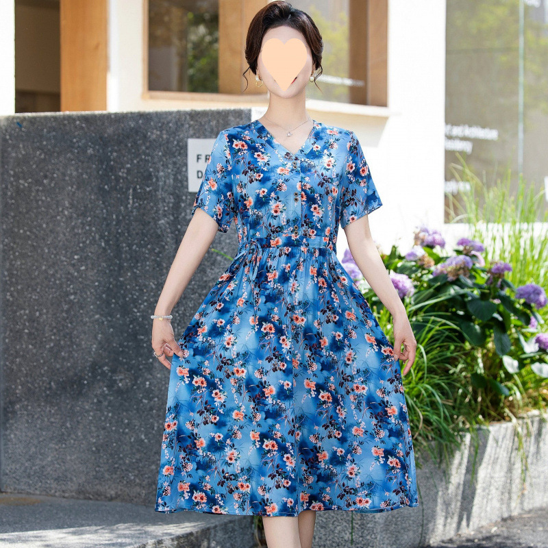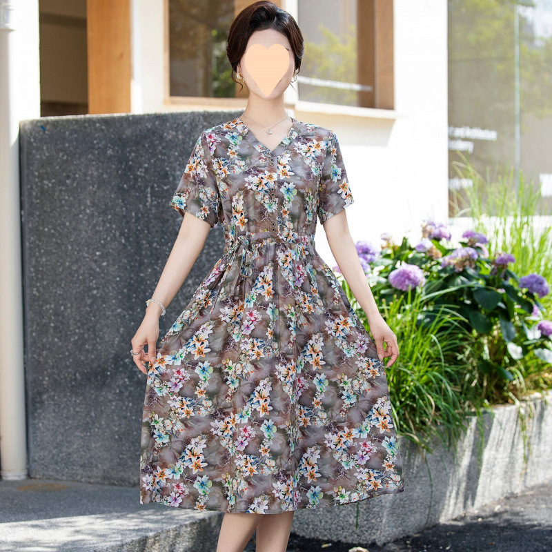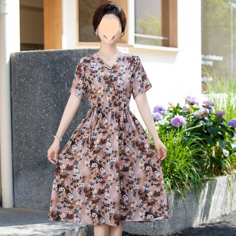 Летнее платье 2025 года с цветочным принтом, стильная и элегантная длинная узкая юбка, модная юбка для мамы с цветочным принтом