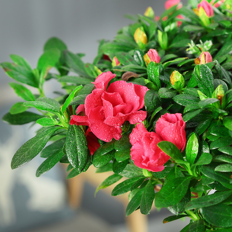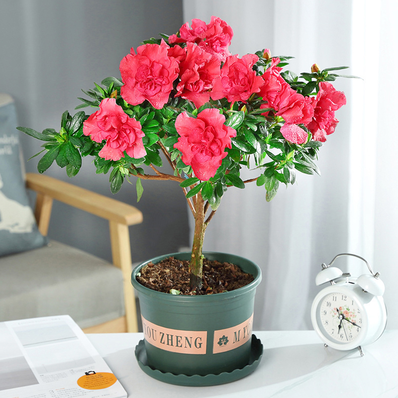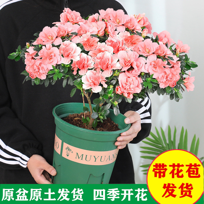 Азалия в горшке, старый сучок, большие рассады с бутонами, подходят для использования в помещении и на улице, цветут в любое время года, не требуют особого ухода, морозостойкие, праздничные зеленые цветы растений.