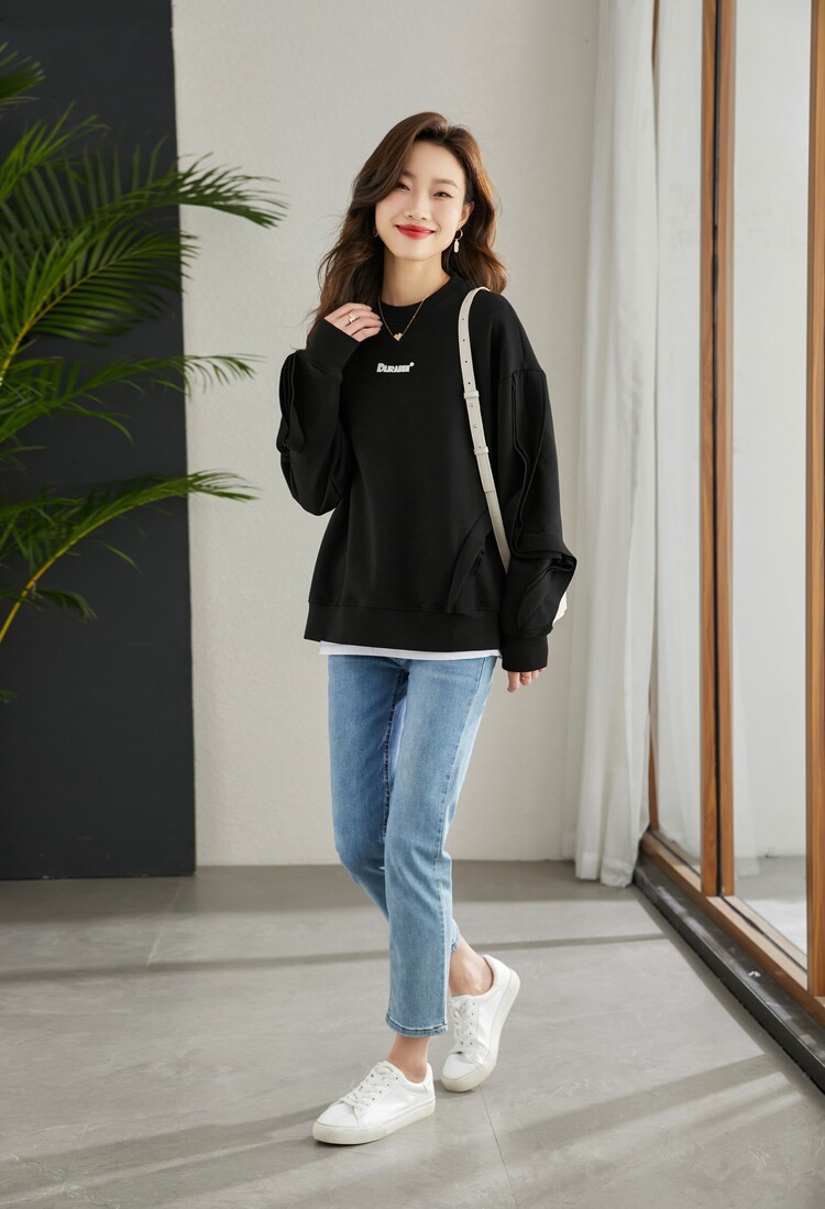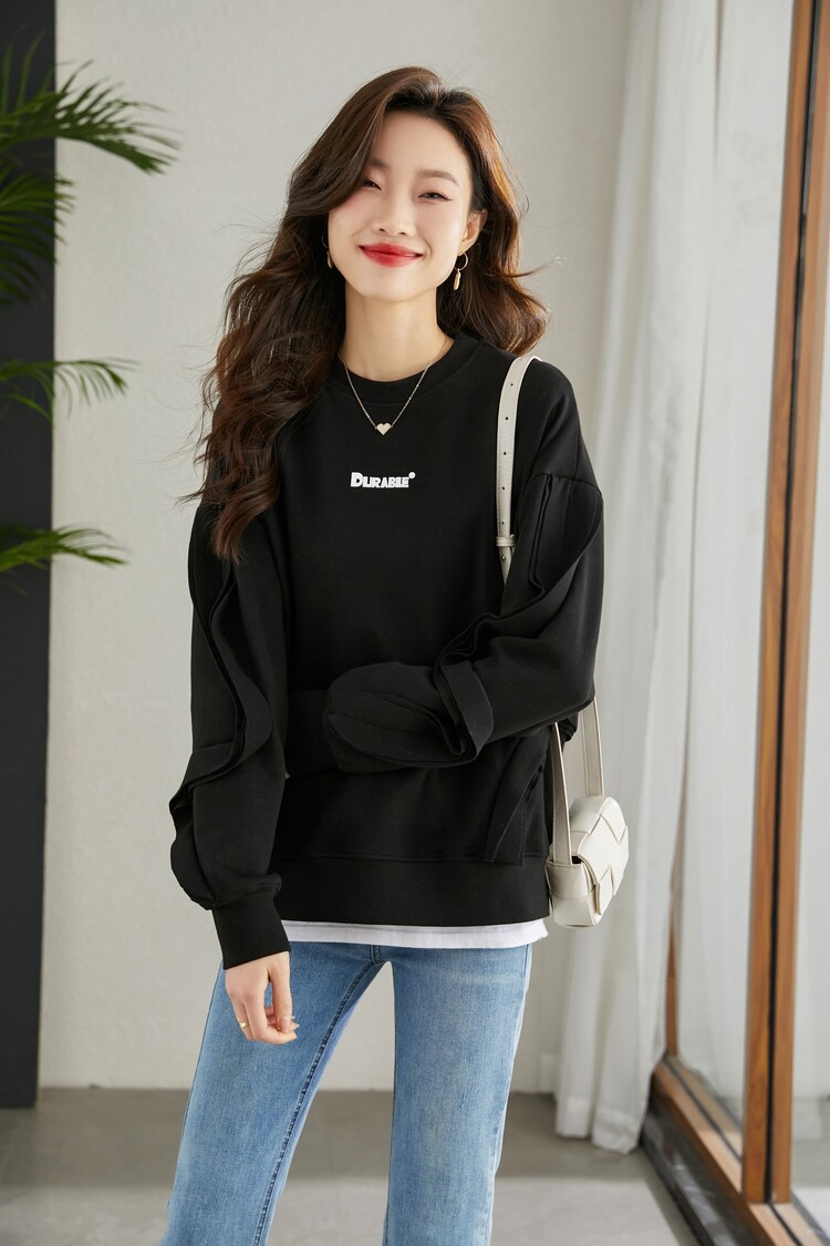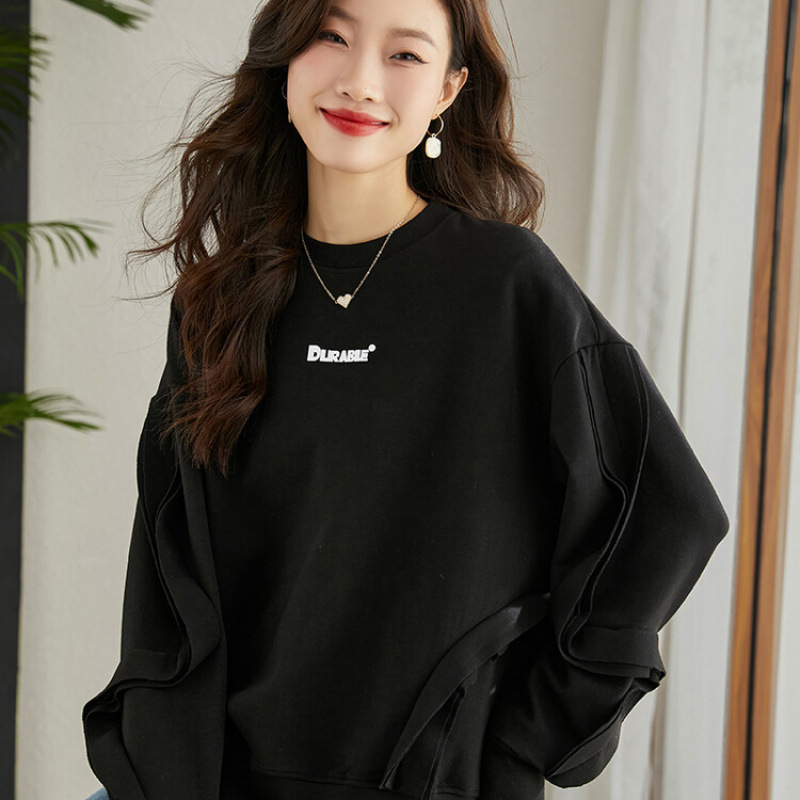 Женская новая модная толстовка с круглым вырезом, повседневный топ, весна и осень, свободный стиль средней длины, стильный стильный новый стиль 2025 года