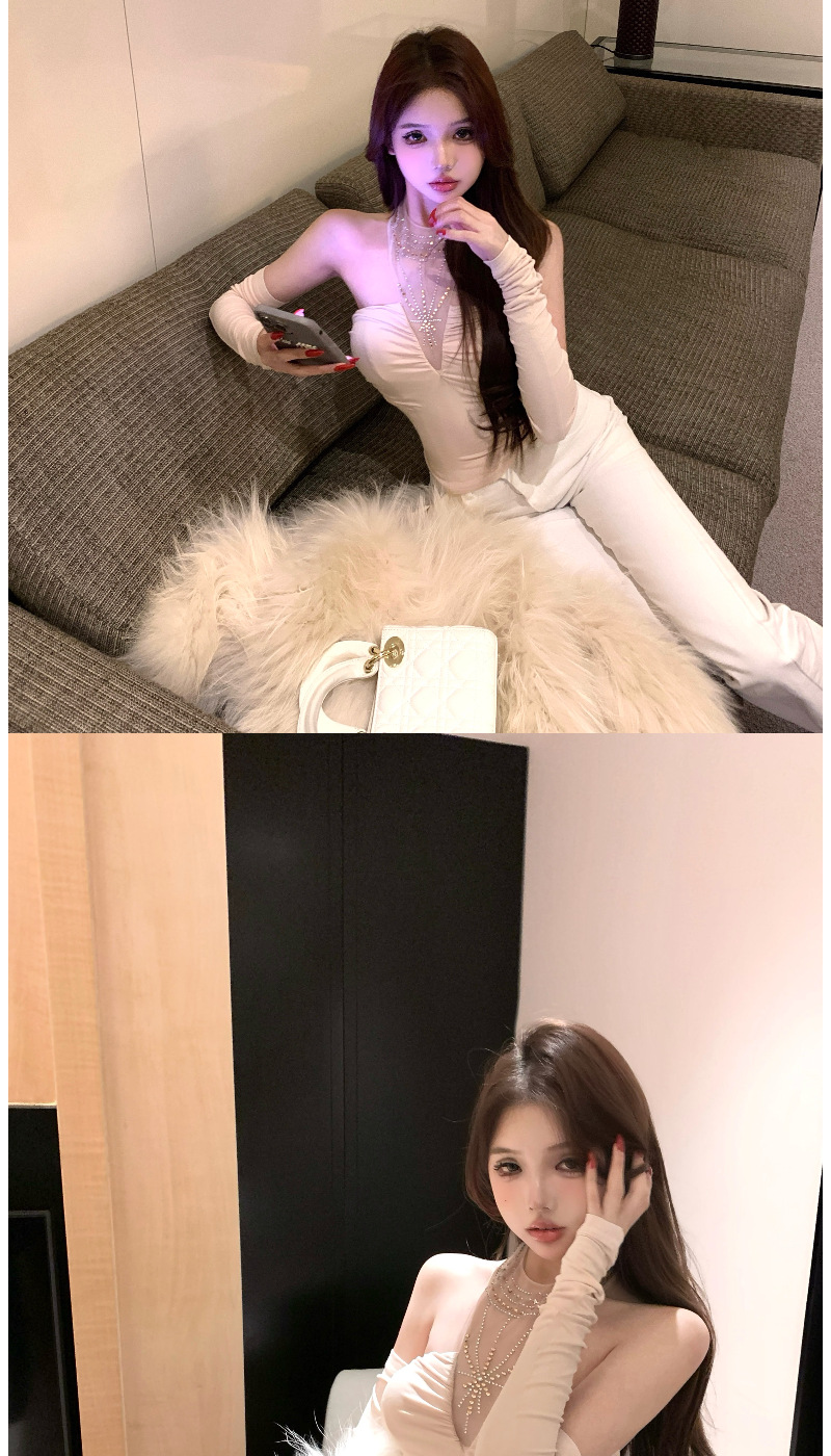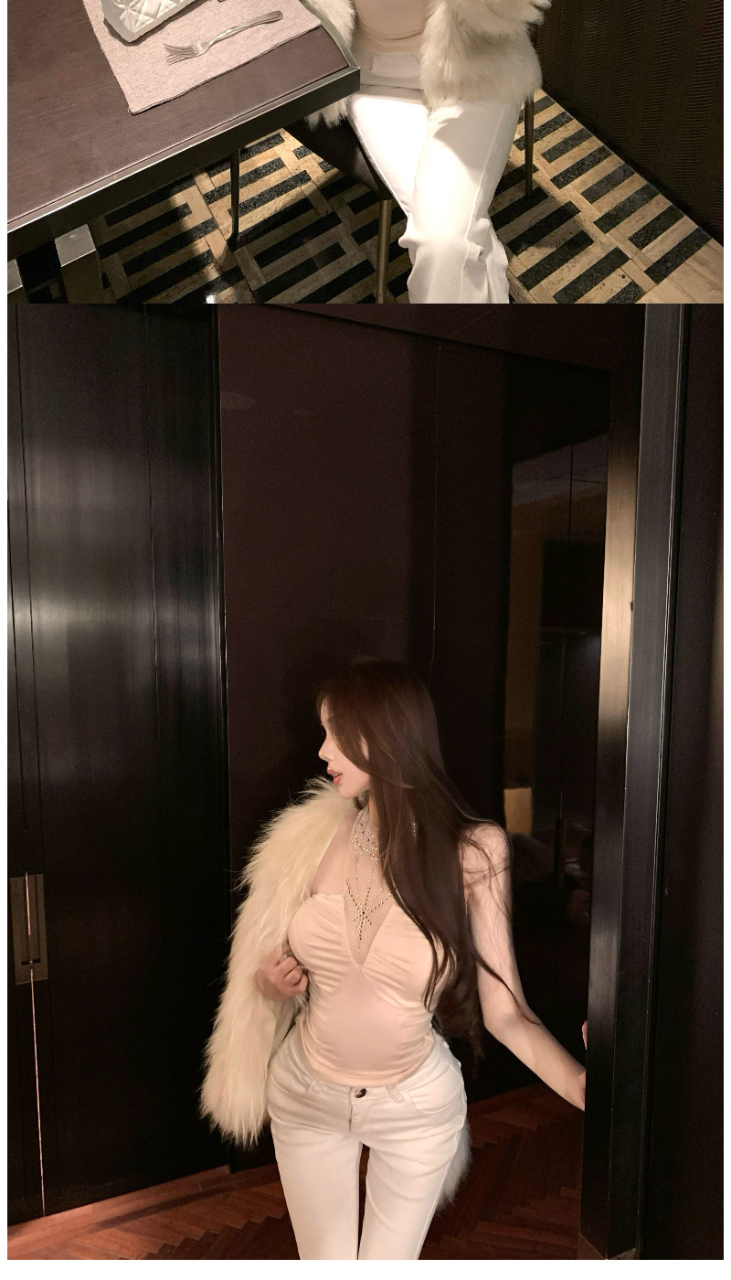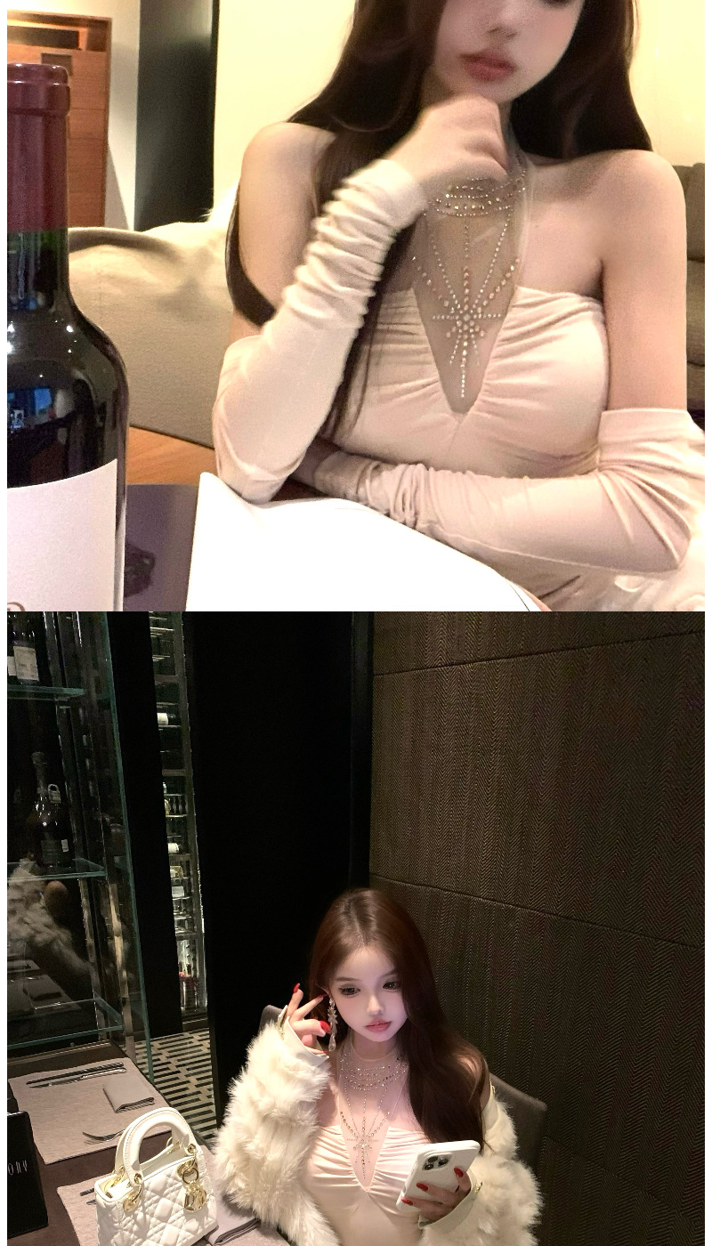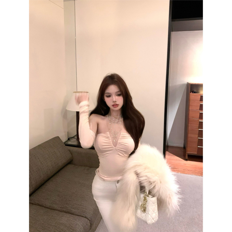Женская майка с лямкой на шее в стиле Pure Desire со стразами, зимний внутренний слой для похудения талии с розовыми рукавами, короткий базовый топ.