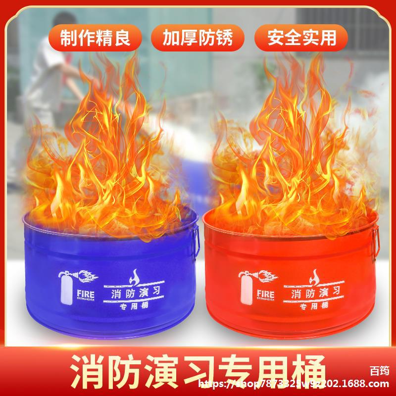 Ведро для пожарной тренировки, железное ведро, пожаротушение, пожарная подготовка, специальный пожарный бак, пожарная тренировка, горящее открытое круглое железное ведро