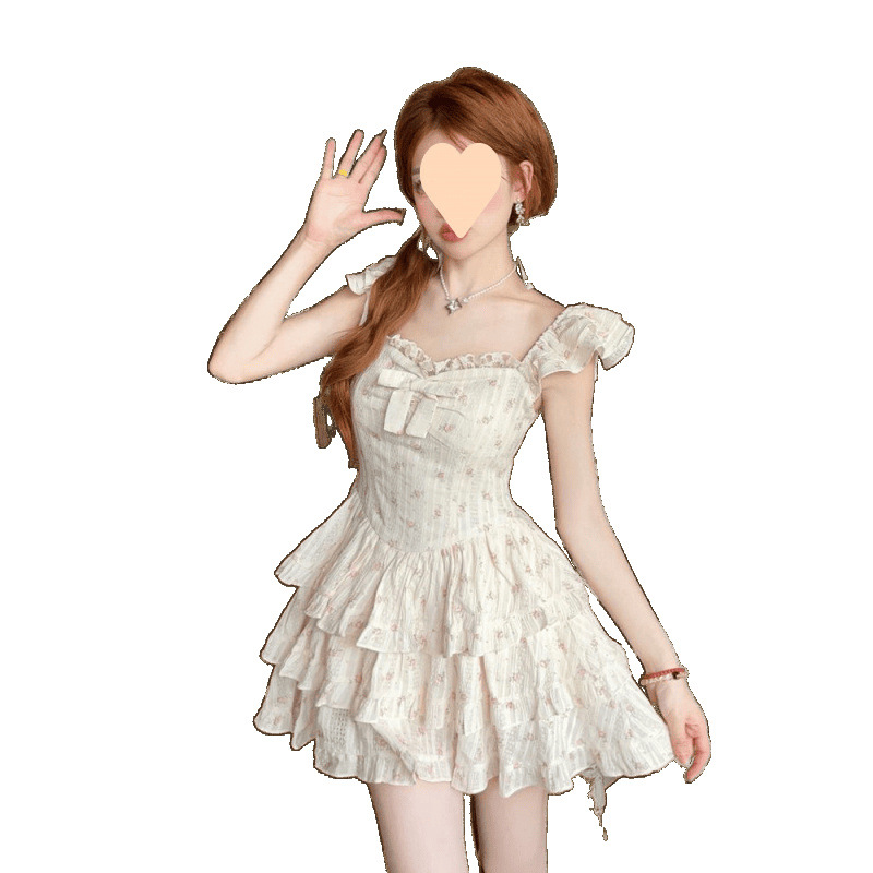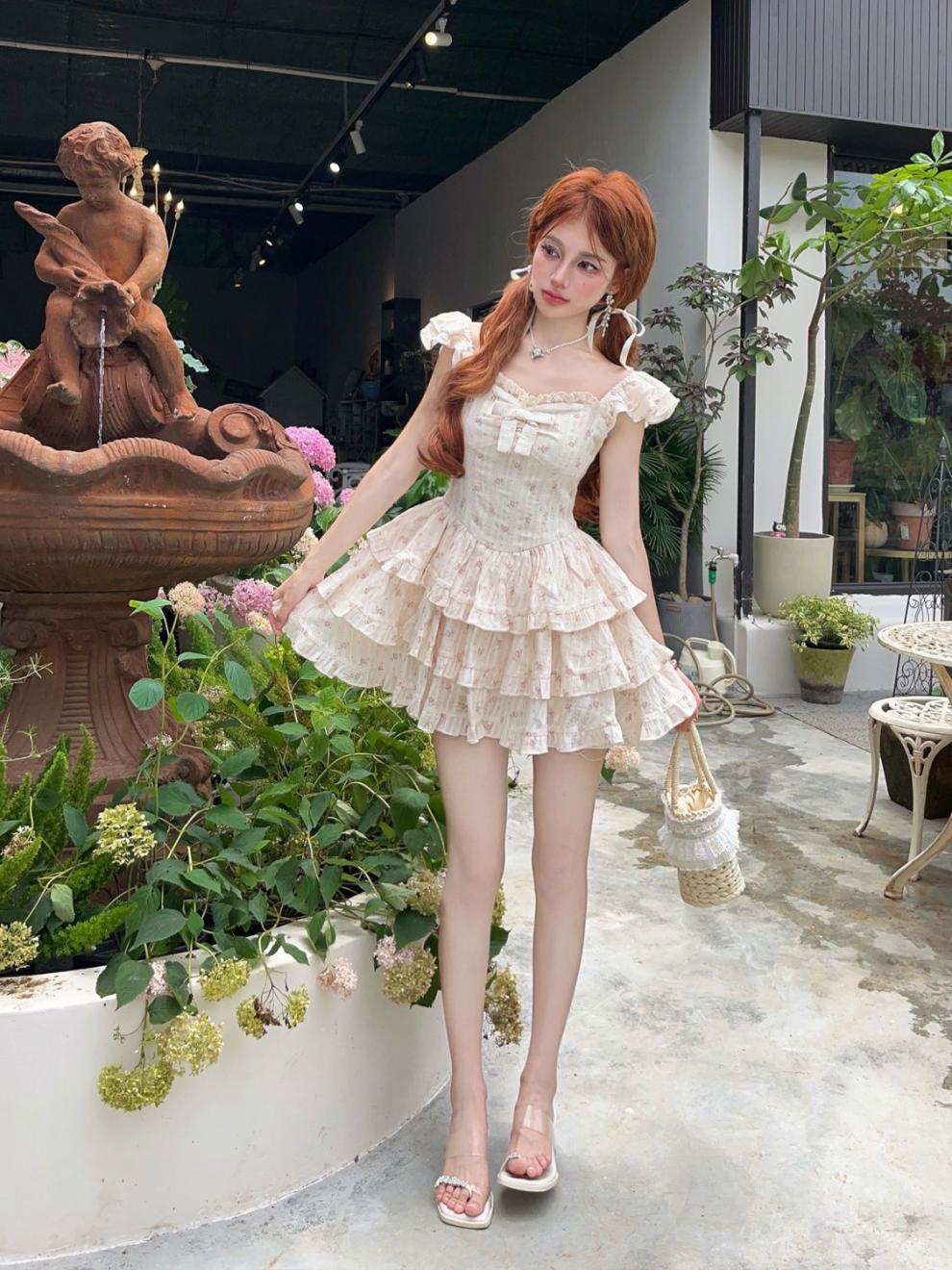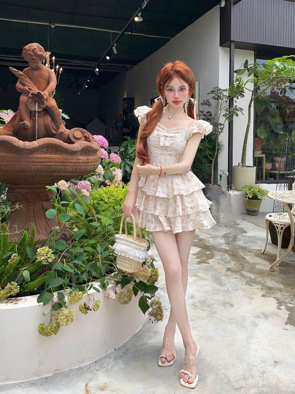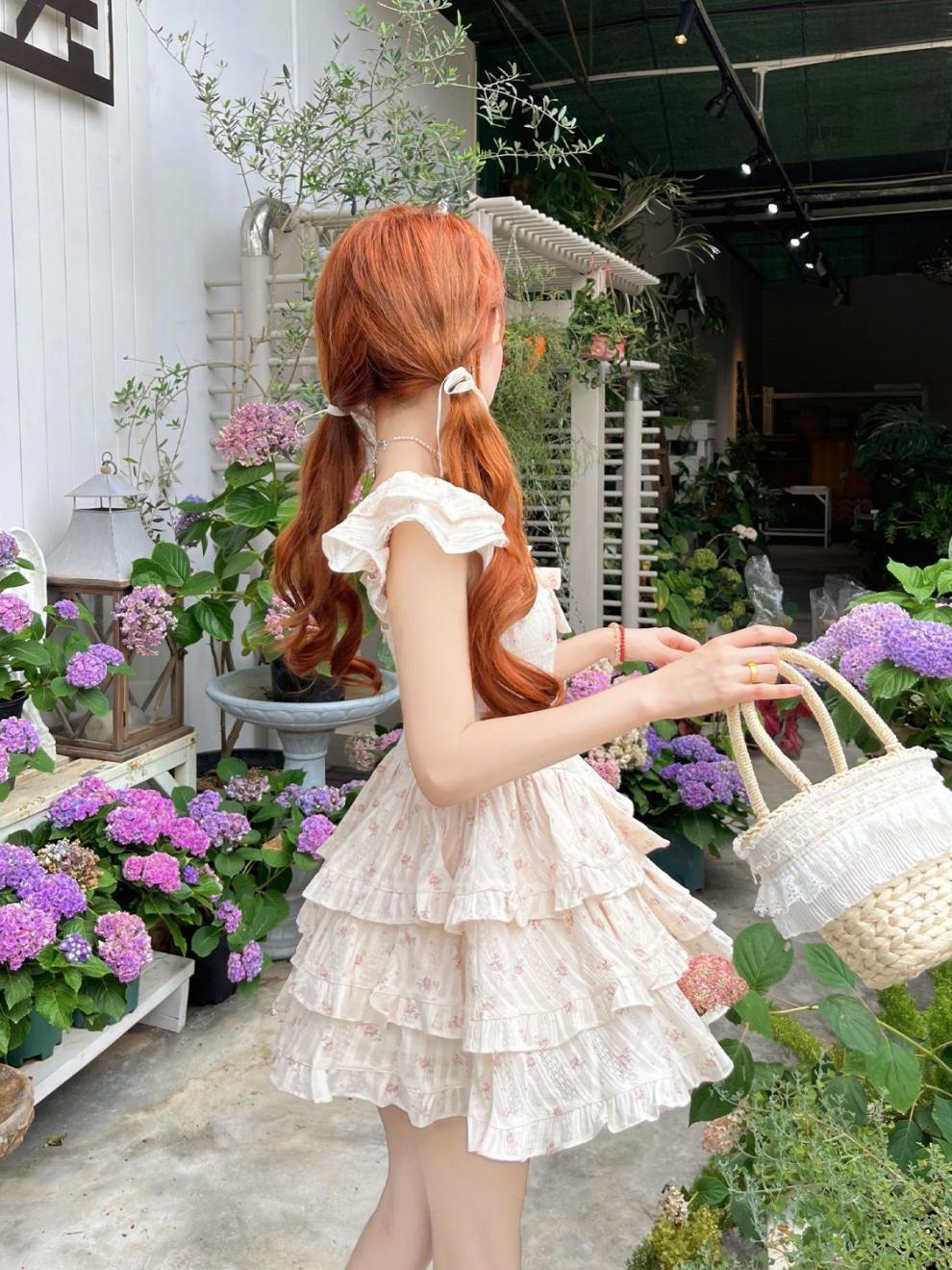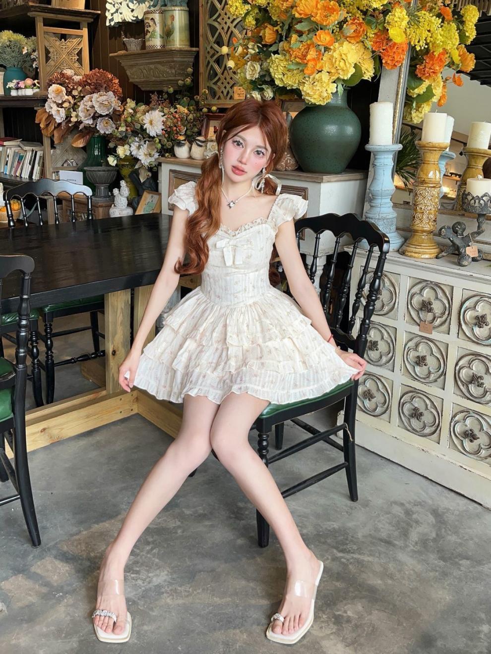 Пышная юбка принцессы с пышными рукавами для перерыва на чай, супер сказочный бант на талии, лесное платье с цветочным принтом, женское новое летнее платье