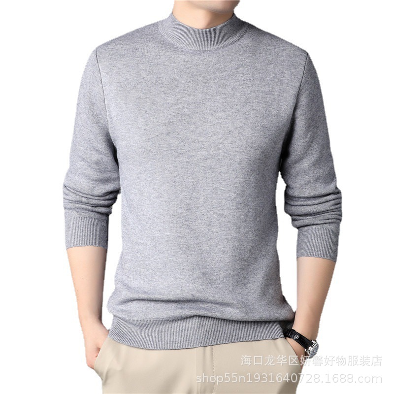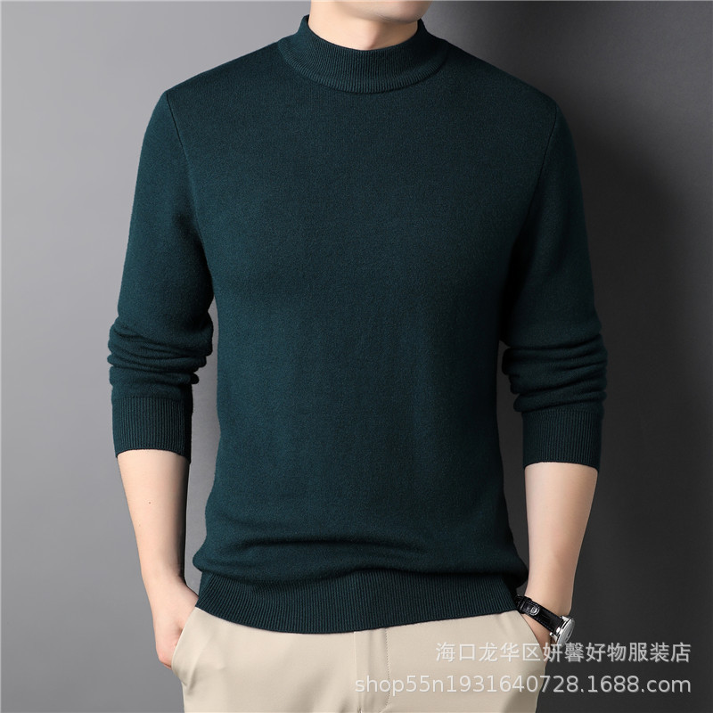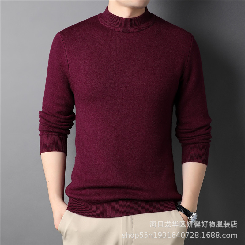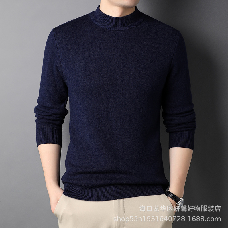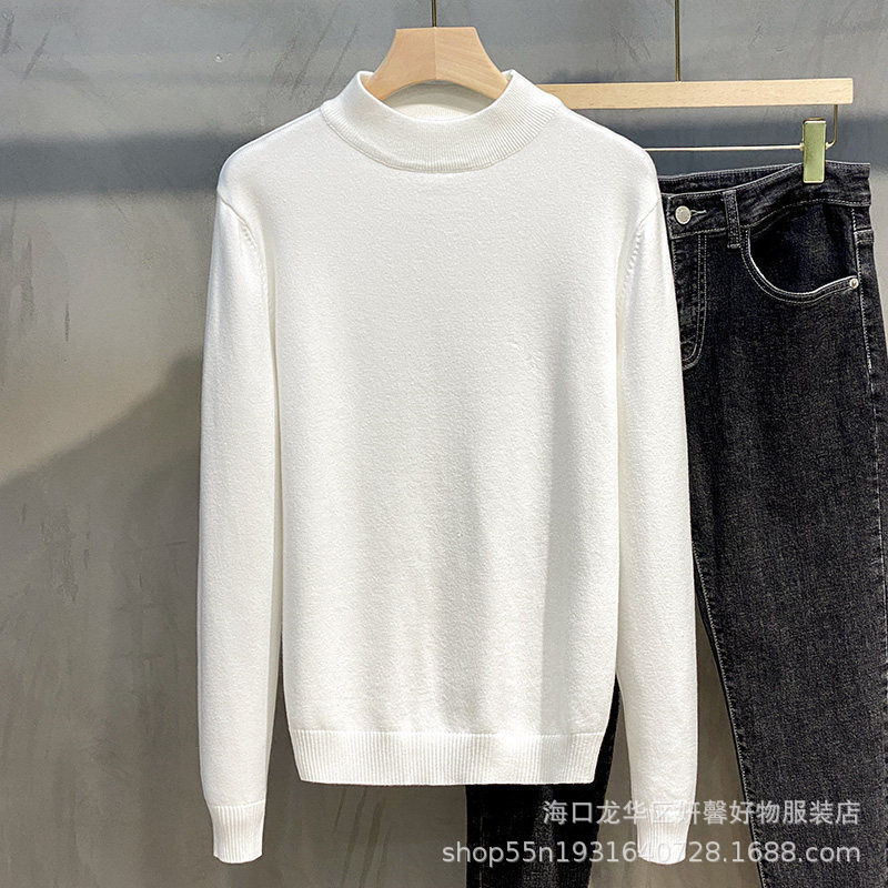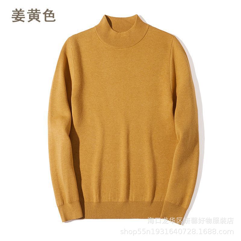 Осенне-зимний мужской свитер с полувысоким воротником, однотонный, облегающий, молодежный базовый свитер, мужская трикотажная одежда.